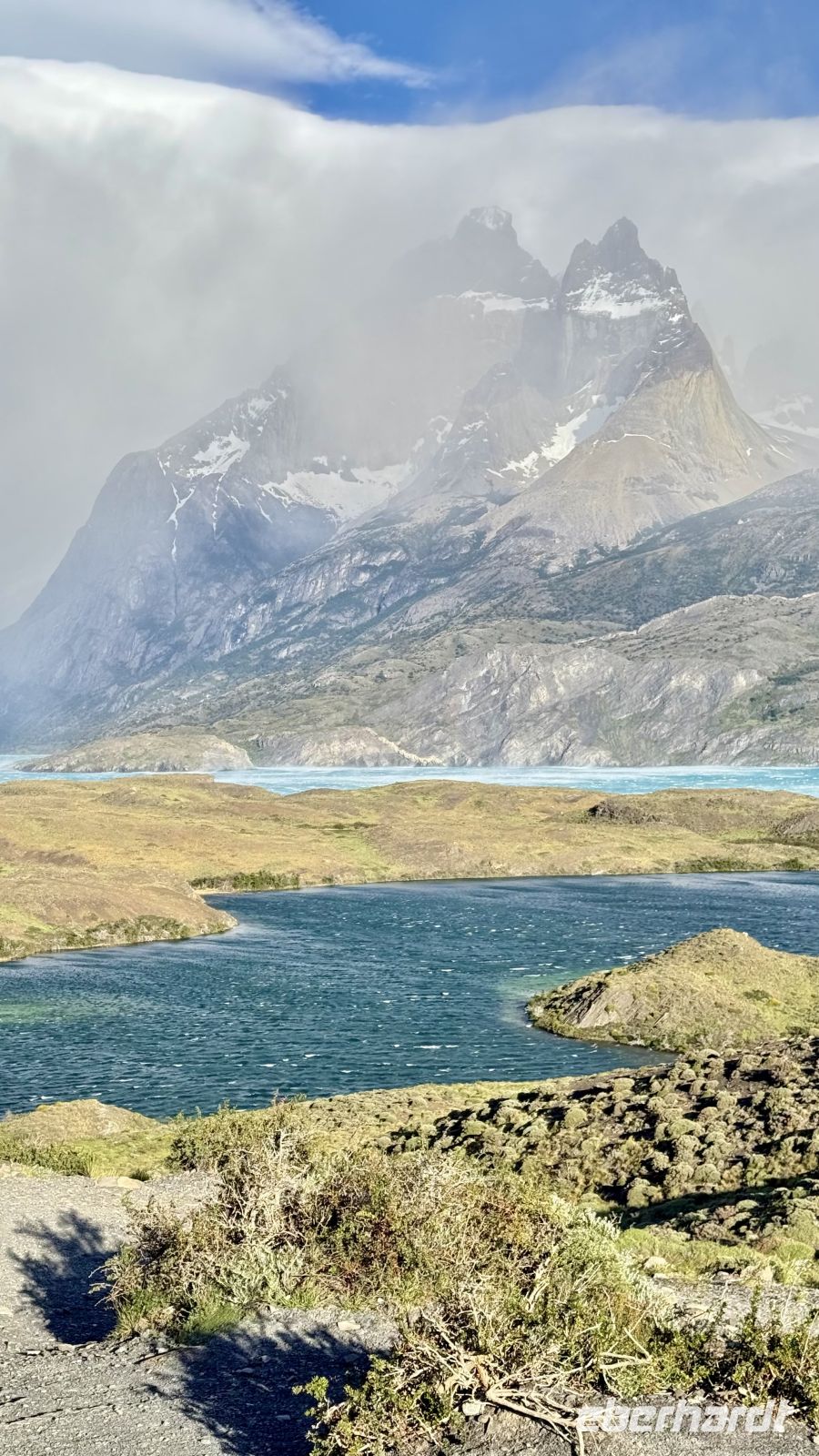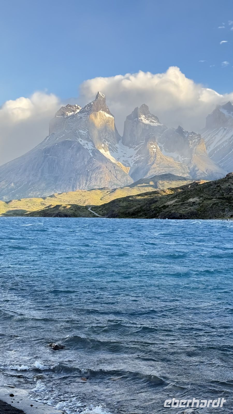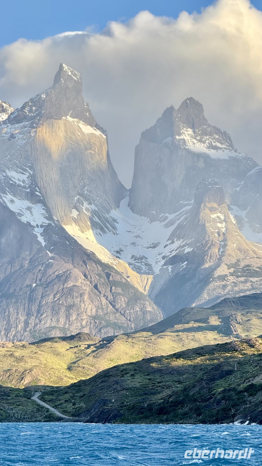 Und just in dem Moment, als wir am wenigsten damit rechneten, ging der Wunsch in Erfüllung. Da lag er vor uns: der Lago Pehoé, türkis leuchtend, mit den Torres del Paine im Hintergrund – ein Anblick, der an die Grenze des Wirklichen stieß. Plötzlich waren wir in einen Traum eingehüllt, ohne auch nur eine Spur von Schläfrigkeit. Von da an gab es nur noch eines: ganz Teil dieses Augenblicks zu sein, ihn aufzusaugen und für immer festzuhalten.