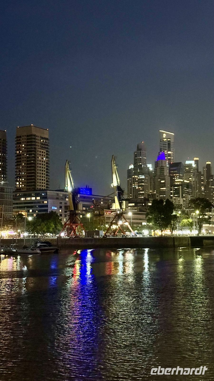 Wir krönten den Tag mit einem Abendessen im besten argentinischen Stil am Ufer des Río de la Plata, in den alten Docks des Viertels Puerto Madero, und von dort zum Ausruhen, denn es war wohlverdient.