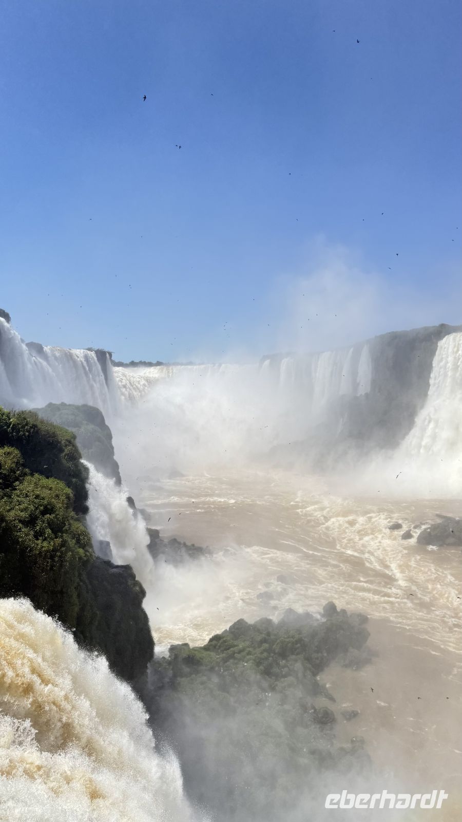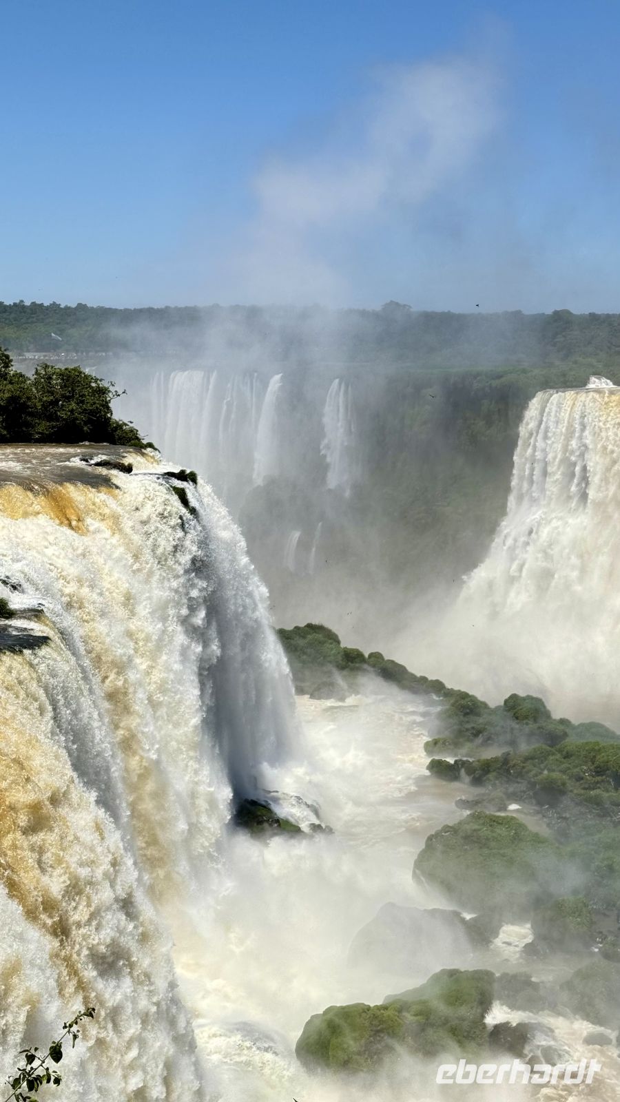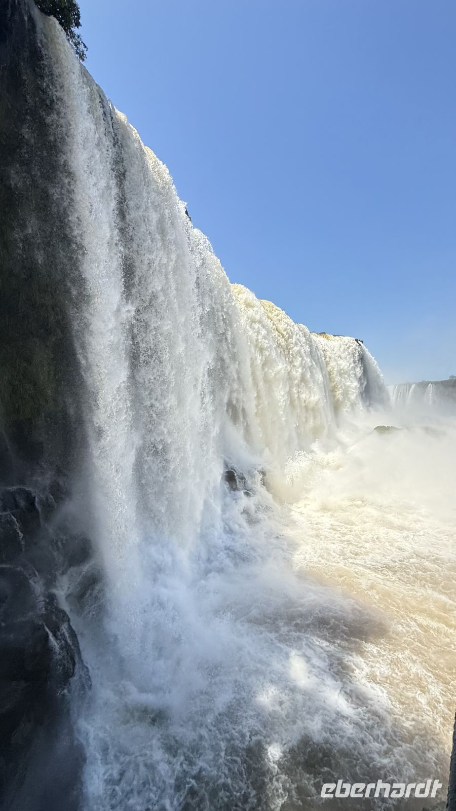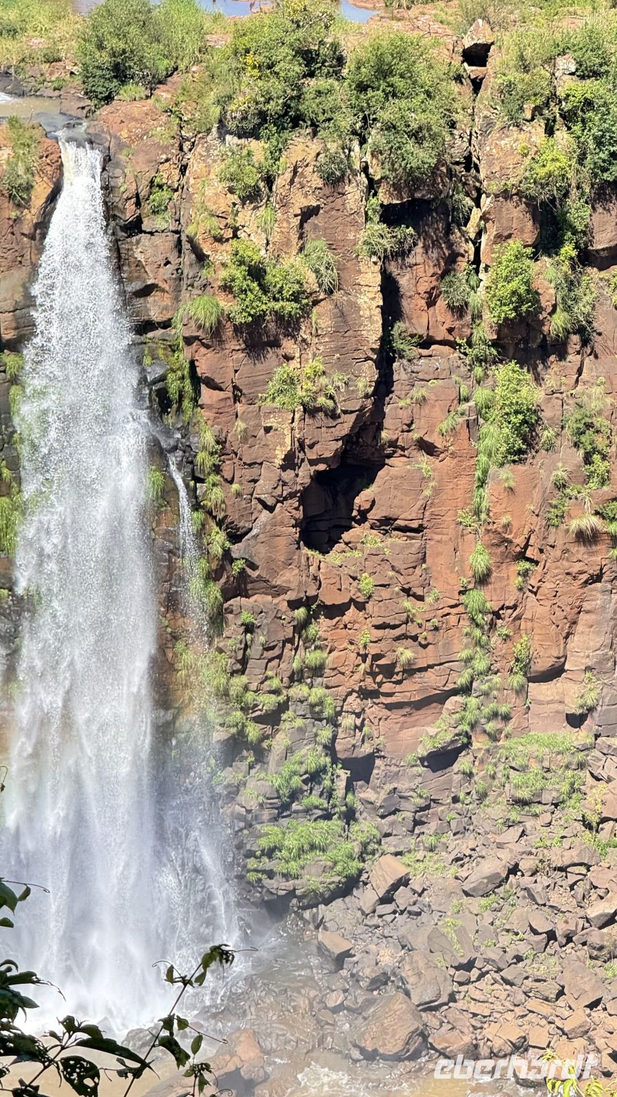 Wir hielten immer wieder auf unserer Tour an, nur um uns mehr über die wunderschöne Landschaft zu wundern, oder besser gesagt über das geschmückte Schauspiel, das sich vor uns und auch zu unseren Füßen entfaltet. Plötzlich begannen wir, ein stärkeres Rauschen wahrzunehmen, begleitet von einer feuchtigkeitsgeladenen Brise. Wir näherten uns dem großen Finale der Tour, und der letzte Akt war ein wahres Meisterwerk. Die Garganta del Diablo, der Teufelsschlund, offenbarte sich in seiner ganzen unbändigen Gewalt und bot uns von verschiedenen Winkeln aus das Schauspiel seiner unermesslichen Weite und Kraft: Millionen Liter Wasser, die sich sekundenlang in die Tiefe stürzen, als wollten sie die Erde selbst aufreißen. Das Donnern ist spektakulär. Allein die Nähe reicht aus, um nass zu werden, bei diesen Temperaturen ein angenehmes Bad.