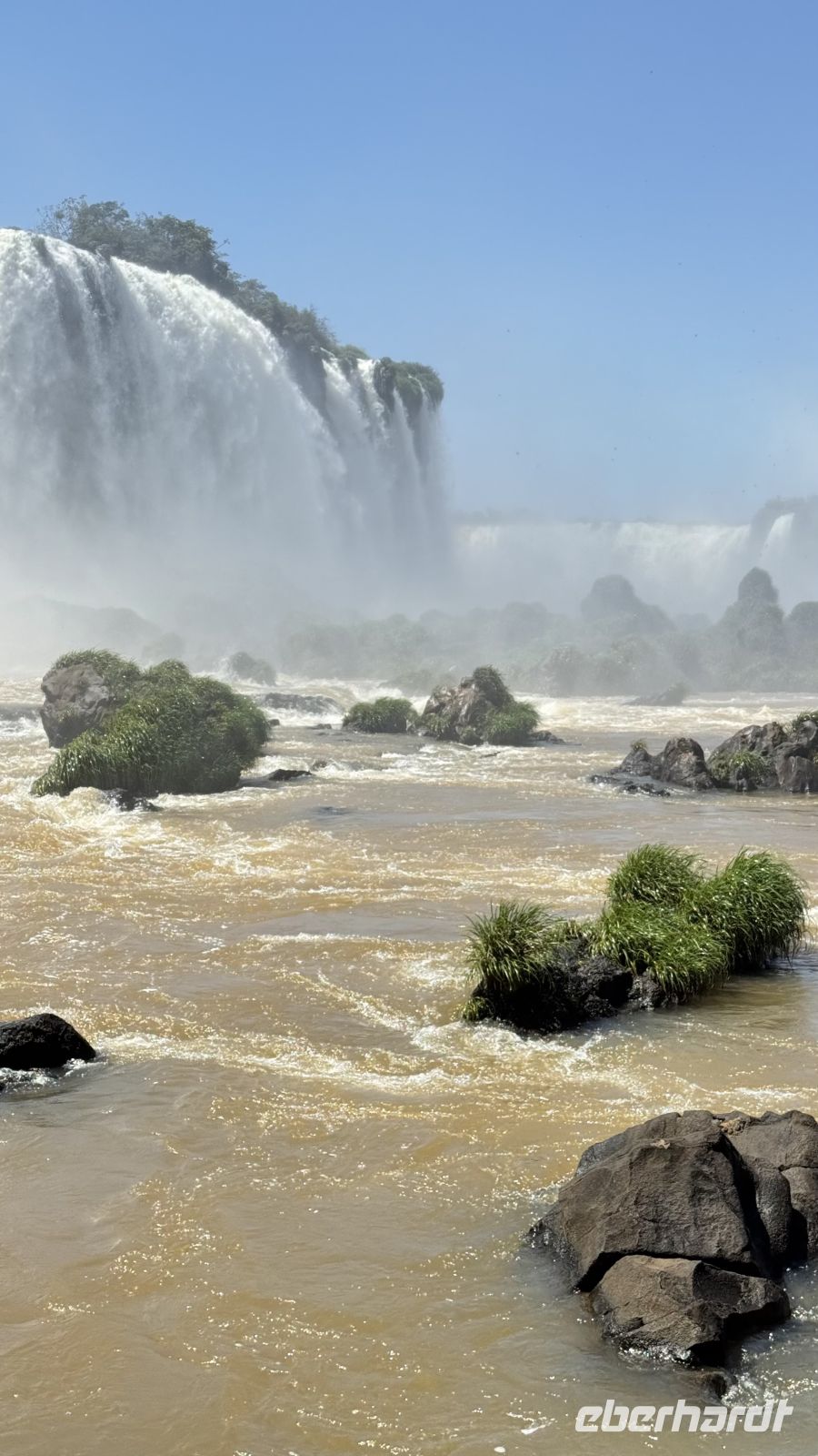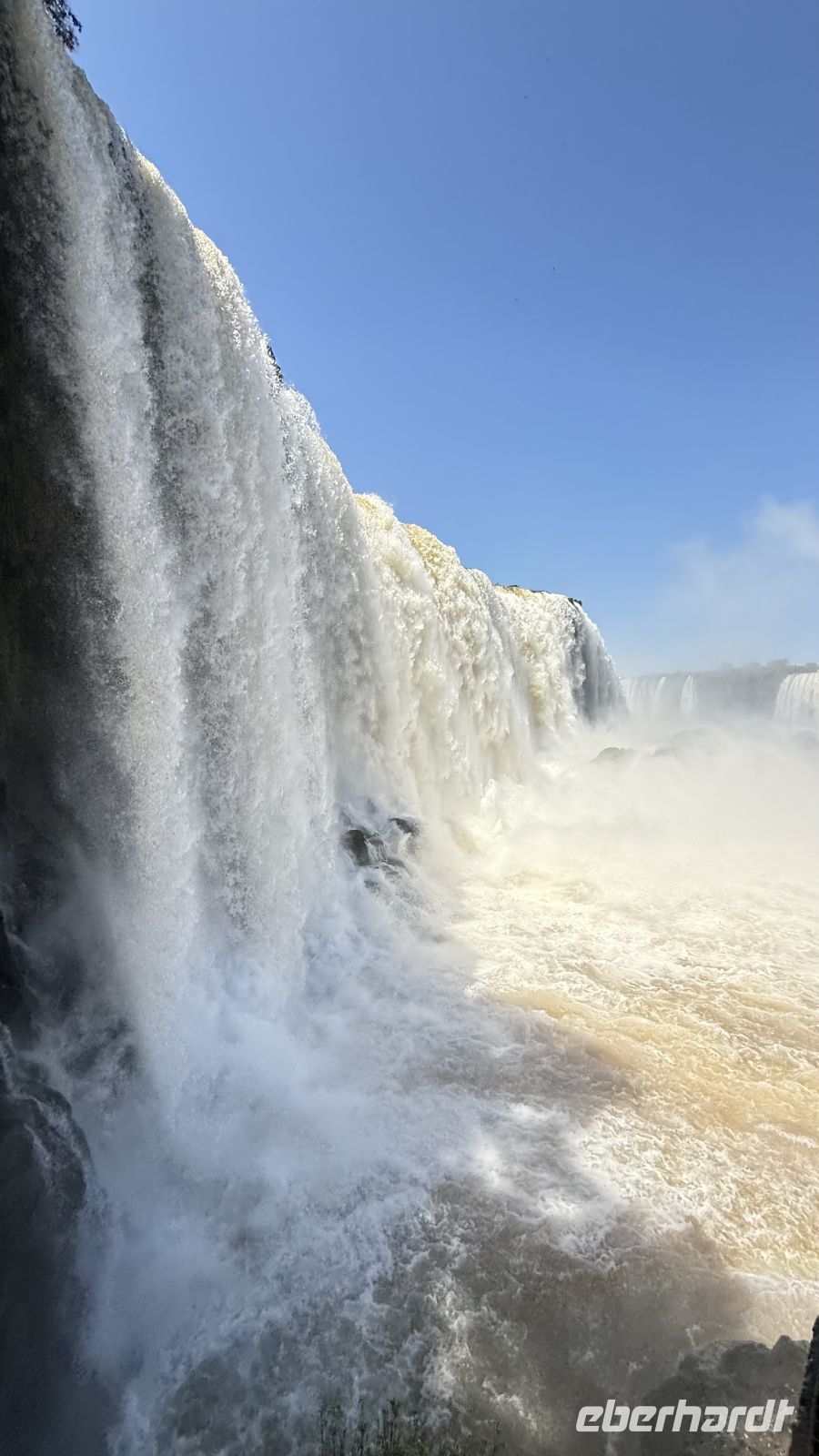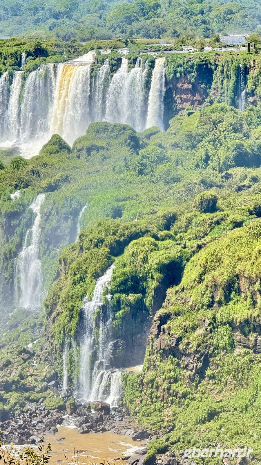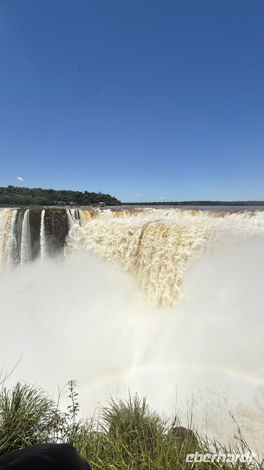 Wir hielten immer wieder auf unserer Tour an, nur um uns mehr über die wunderschöne Landschaft zu wundern, oder besser gesagt über das geschmückte Schauspiel, das sich vor uns und auch zu unseren Füßen entfaltet. Plötzlich begannen wir, ein stärkeres Rauschen wahrzunehmen, begleitet von einer feuchtigkeitsgeladenen Brise. Wir näherten uns dem großen Finale der Tour, und der letzte Akt war ein wahres Meisterwerk. Die Garganta del Diablo, der Teufelsschlund, offenbarte sich in seiner ganzen unbändigen Gewalt und bot uns von verschiedenen Winkeln aus das Schauspiel seiner unermesslichen Weite und Kraft: Millionen Liter Wasser, die sich sekundenlang in die Tiefe stürzen, als wollten sie die Erde selbst aufreißen. Das Donnern ist spektakulär. Allein die Nähe reicht aus, um nass zu werden, bei diesen Temperaturen ein angenehmes Bad.