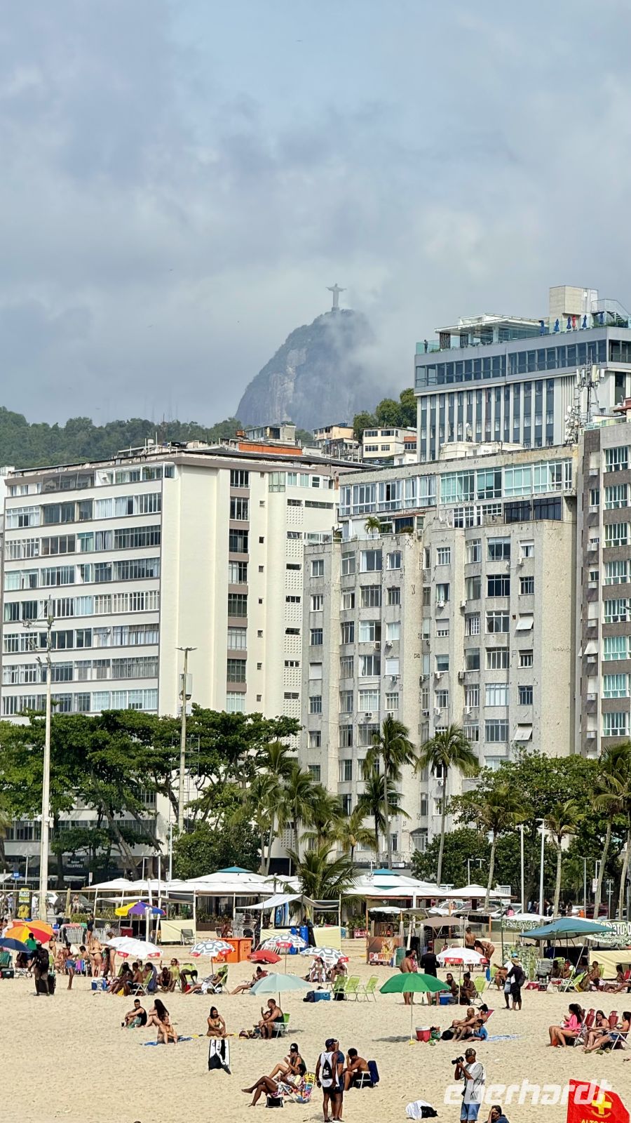 Unser erstes Ziel des Tages: der Corcovado-Berg mit seiner typischen Kamelform und dem riesigen Christus, der ihn krönt. Wir genossen wunderschöne Ausblicke auf die Stadt an einem bewölkten Tag mit angenehmer Temperatur. Von dort bewegten wir uns von hier nach dort und beobachteten an diesem Sonntag fast ohne Verkehr, alle Ecken der Stadt.