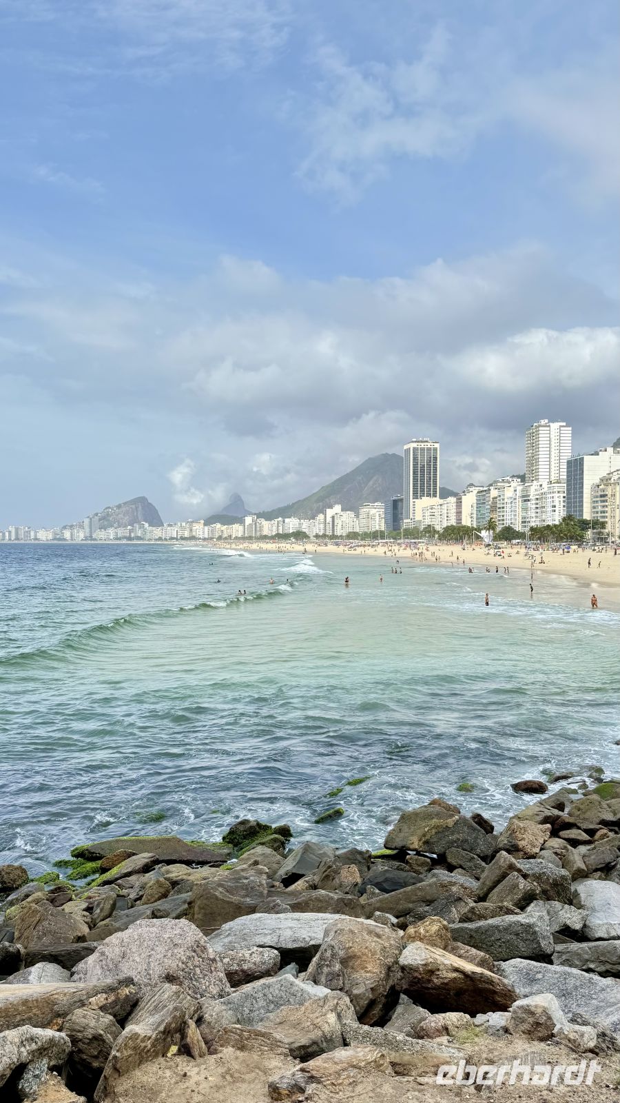 An diesem Tag begannen wir unsere Erkundung in Rio de Janeiro, einer sehr besonderen Stadt mit einer großen Anzahl alter Gebäude, ihren typischen Bürgersteigen, viele davon mit dem typischen weiß-schwarzen Kopfsteinpflaster aus Portugal, besonders beispielhaft auf der Promenade der Copacabana dargestellt. Rio ist zwar eine pulsierende Metropole, doch man atmet noch immer einen Hauch vergangener Zeiten. Seine Bewohner sind überall, ständig im Gespräch, im Lachen, im Tanz mit dem Alltag, und genau das verleiht der Stadt eine Atmosphäre, die man anderswo vergeblich sucht. Die Cariocas sind echt, leidenschaftlich verwurzelt, sie leben Rio nicht nur, sie sind Rio.