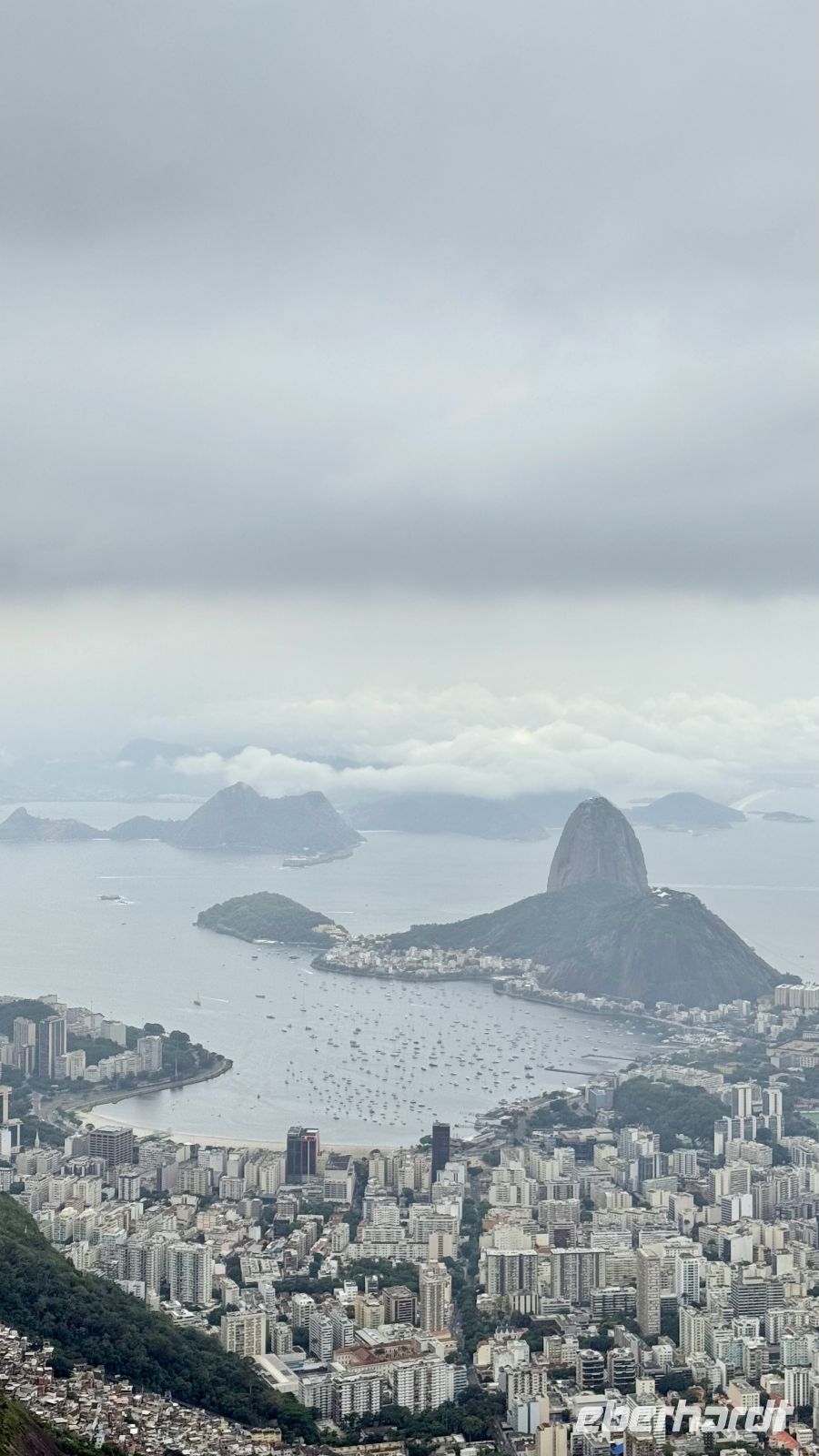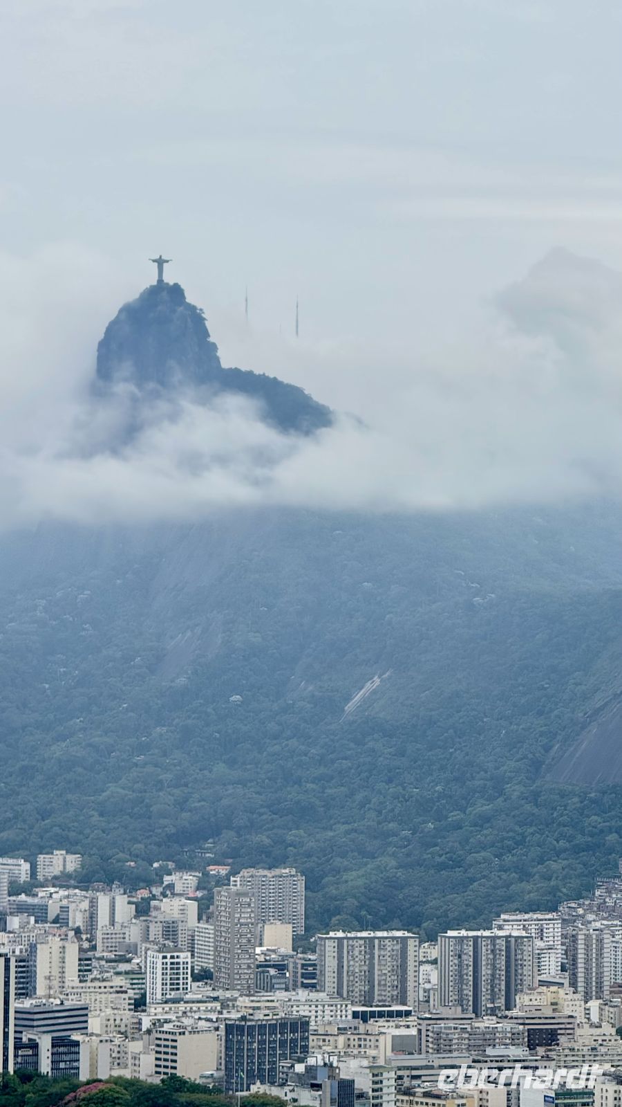Mit bewölktem Himmel und kühlem Klima begannen wir den Tag. Als wir uns anschickten auszugehen, fielen die ersten Tropfen, die einen Regen ankündigten, der glücklicherweise nie kam. Wenige Minuten nachdem wir das Hotel verlassen hatten, befanden wir uns in der Luft schwebend und rasten schnell zum ersten Gipfel des Tages in der Seilbahn des Pão de Açúcar. In der Ferne thront die Statue des Cristo Redentor auf dem Corcovado, halb in Wolken gehüllt, halb im Licht – ein stiller Wächter, der an diesem Tag voller gemischter Gefühle genau das Richtige sagt: Alles hat seine Zeit, jedes Ende ist auch ein Segen. Genau wie bei allen Abschieden: ein bisschen Wehmut, viel Dankbarkeit und das leichte Versprechen, dass man sich vielleicht irgendwann wiedersieht. Heute würden wir uns von Rio de Janeiro verabschieden, und für viele würde hier unser Abenteuer enden, das sich fast über einen Monat lang erstreckte.