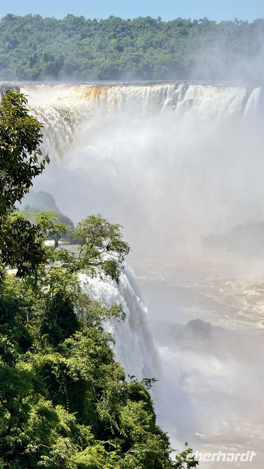 Unser Abenteuer auf den Stegen war zu Ende, nicht aber unser Tag. Hatte uns der Wasserfall von vorn schon überwältigt, so wurde er aus dem Hubschrauber zu etwas schier Unfassbarem: ein silbern schimmerndes Band, das sich wie ein lebendiger Riss durch den grünen Dschungel zog.