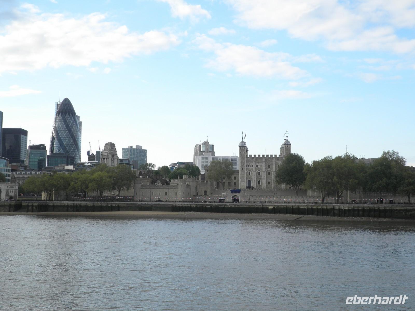 Noch an Bord der Fähre stärkten wir uns mit einem kräftigen Frühstück. Dann verließen wir das Schiff und fuhren durchs Hafengelände hinaus auf die Straßen Englands, die uns mit Linksverkehr erwarteten. Die Charles-Dickens-Stadt Rochester empfing uns am frühen Morgen. Wir machten einen Spaziergang zum Castle und der Kathedrale, im Anschluss daran wurden wir auf den Spuren von Charles Dickens durch Rochester geführt. Wir verließen Rochester gegen Mittag und nahmen nun Kurs auf London, der Hauptstadt Großbritanniens und gerade Schauplatz der Jubiläumsfeiern für Queen Elizabeths 60. Thronjubiläum. Doch zunächst fuhren wir bis Greenwich, wir spazierten durch den berühmten Park mit dem Nullmeridian und genossen einen herrlichen ersten Ausblick über die Hauptstadt mit ihrer charakteristischen Skyline. Schnell noch über den Nullmeridian gehüpft, und schon ging’s weiter. Wir wanderten hinab zum Pier von Greenwich und stiegen auf ein Themseschiff, das uns bis hinein nach Westminster brachte, begleitet von interessanten Erläuterungen des Kapitäns über die diesjährige Austragungsstadt der Olympischen Spiele. In der Nähe des Houses of Parliamtents erwartete uns Ian, unser Stadtführer für den Nachmittag. Er stieg zu uns in den Bus und machte uns während einer Stadtrundfahrt mit zahlreichen interessanten Gebäuden von London bekannt. Er erzählte Geschichten und Anekdoten, so dass der Nachmittag recht vergnüglich war.