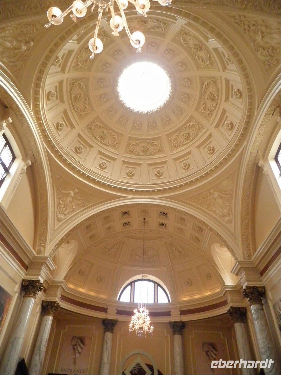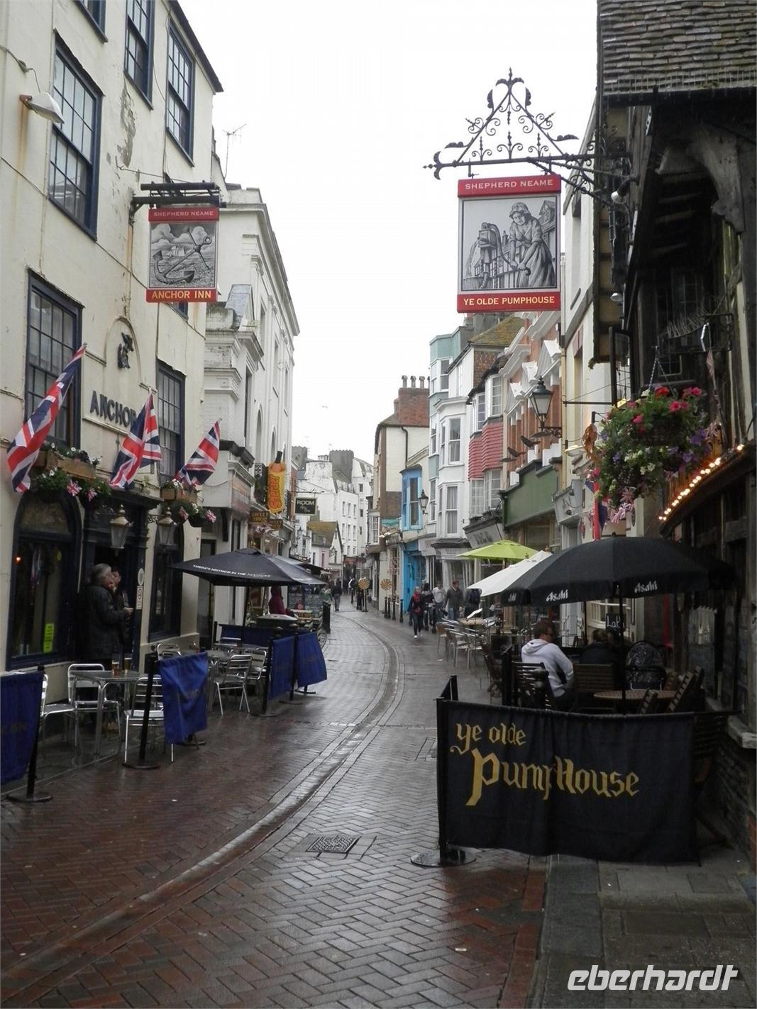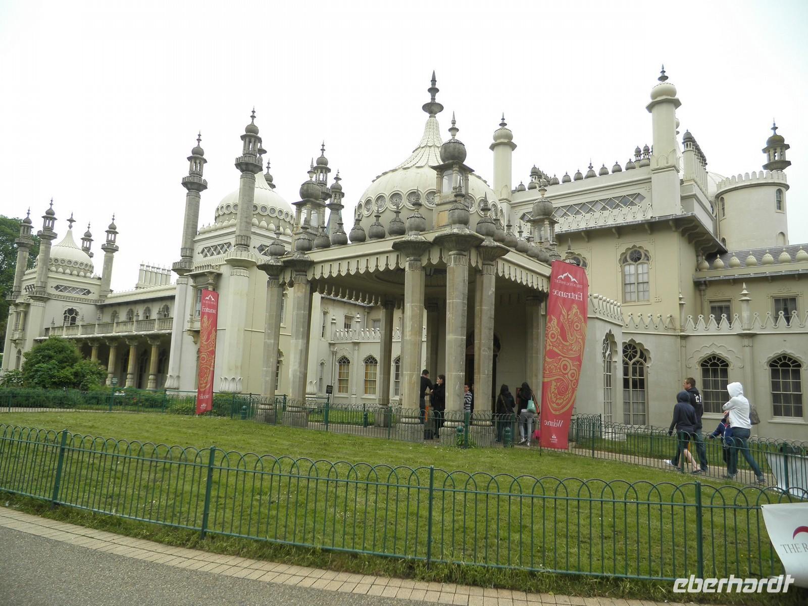 Nach einem kräftigen Frühstück machten wir einen Spaziergang durch Brighton, durchquerten das Kulturviertel The Lanes mit seinen urigen Pubs und Cafés und vielen Galerien und kleinen Geschäften, die Kunsthandwerk und Schmuck verkaufen. Wir sahen das Brighton War Memorial und verschafften uns einen ersten Eindruck von der Stadt, die zur Prinzregentenzeit ein beliebtes Vergnügungspflaster nicht nur des Königs war. Den Royal Pavillon erkundeten wir mithilfe eines Audioguides in deutscher Sprache. Der Palast ist dem eines Maharadschas würdig! Drachen, Schlangen, Lotusblüten und andere orientalisch anmutende Gegenstände verzieren den Palast, so dass man glaubt, plötzlich in Persien zu sein, obwohl man gerade noch durch das regnerische Brighton spaziert war.