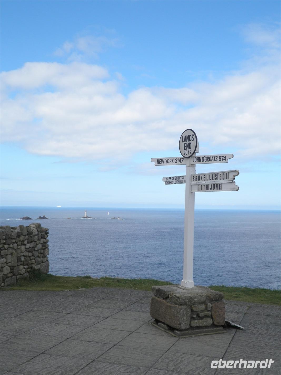 Gleich am Morgen machten wir uns auf, das Ende der Welt Cornwalls und Englands zu besuchen. Lands End erwartete uns mit ungewohnter Ruhe. Wir spazierten einen Fußpfad hinunter zum letzten Aussichtspunkt vor den Klippen, machten zahlreiche Fotos und sahen auch den Wegweiser, auf dem die Entfernung bis New York angezeigt wird. Einige erstanden Postkarten und ließen sich den begehrten Lands-End-Poststempel draufdrucken. Trengwainton Gardens war unser nächstes Ziel. Wir sahen akkurat angelegte Gemüsebeete und allerhand liebevoll gepflegte Gärten.