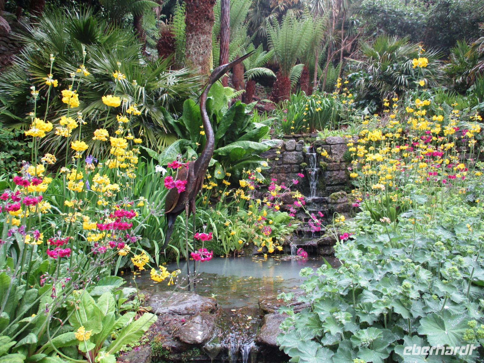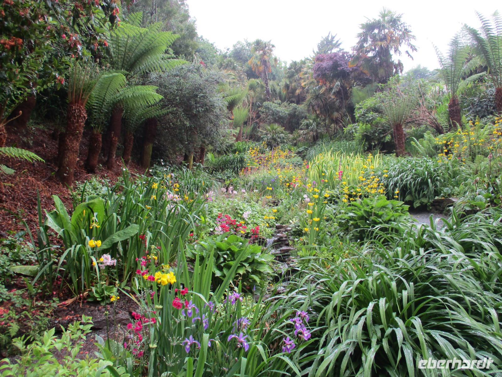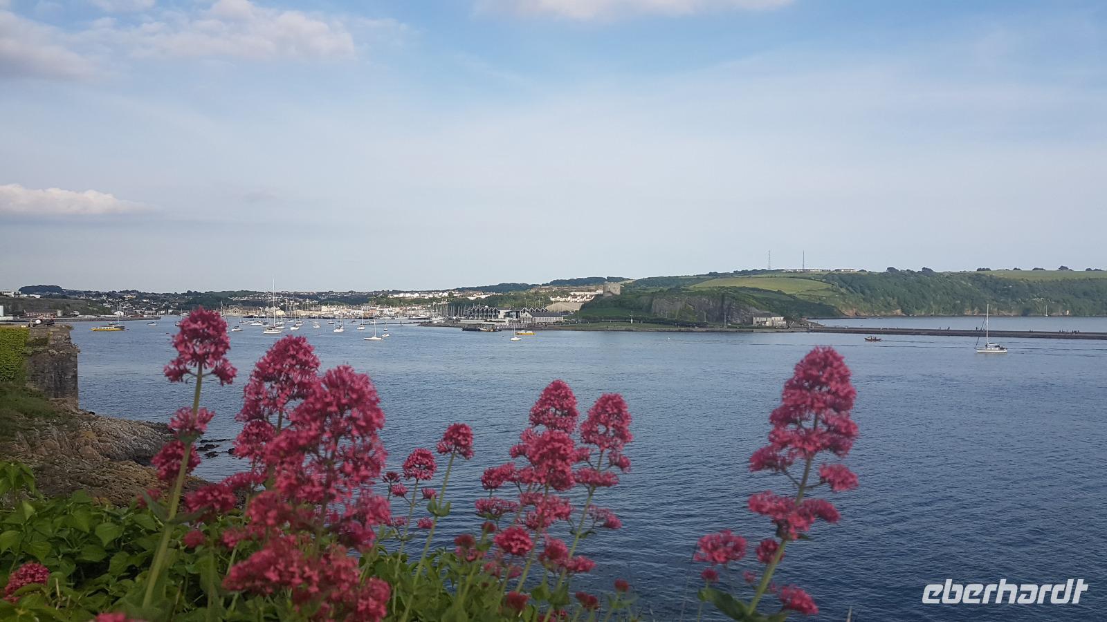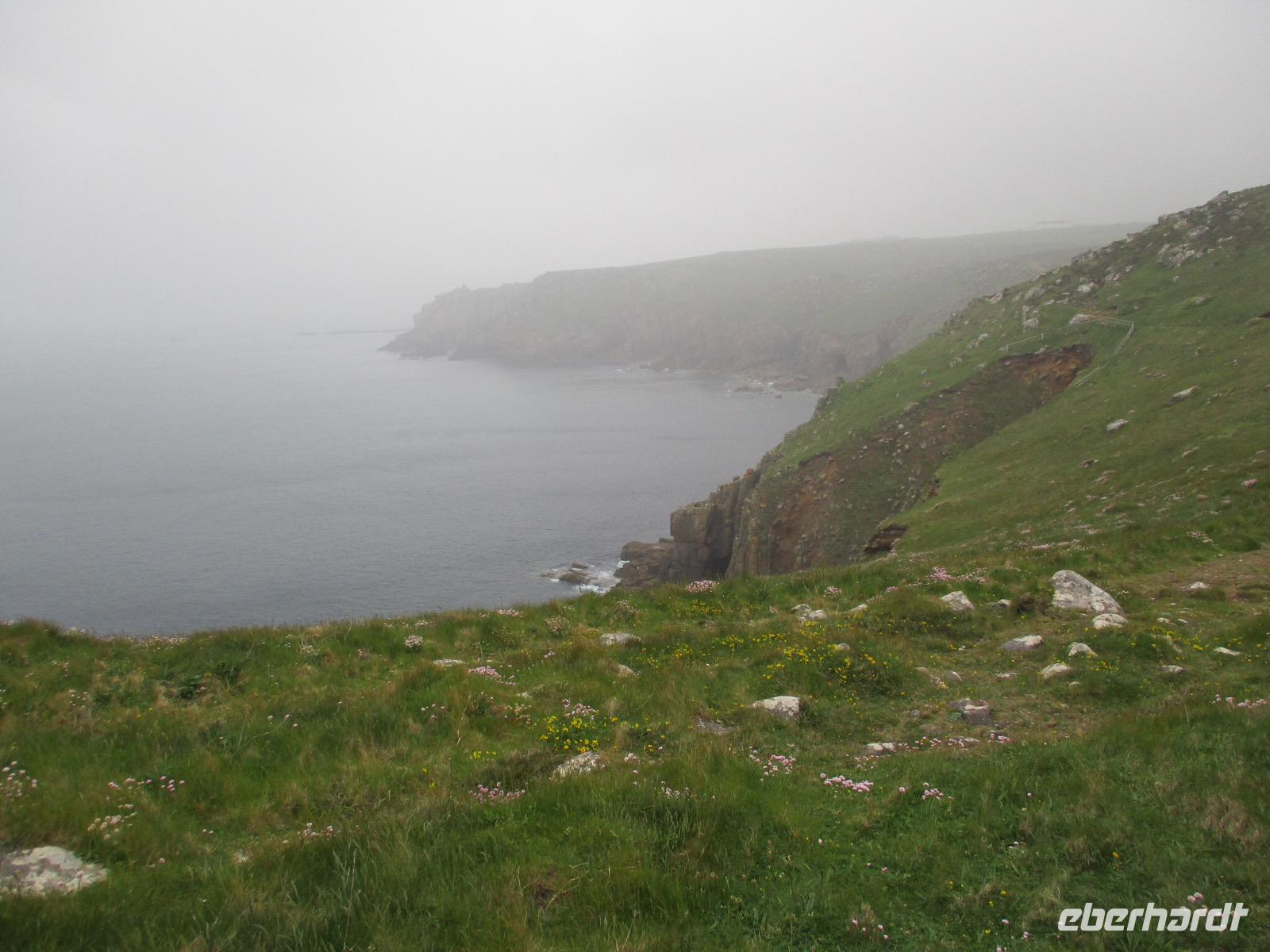 Gleich am Morgen machten wir uns auf und fuhren in Richtung Südwesten. Zunächst erreichten wir das Ende der Welt Cornwalls und Englands. Land's End erwartete uns mit einigen Regenschauern. Wir spazierten einen Weg hinunter zum letzten Aussichtspunkt vor den Klippen, machten zahlreiche Fotos und sahen auch den Wegweiser, auf dem die Entfernung bis New York angezeigt wird. Einige erstanden Postkarten und ließen sich den begehrten Lands-End-Poststempel darauf drucken. In Marazion, unserem nächsten Halt, kann man hinüber blicken zum St. Michael's Mount, einer Gezeiteninsel. Weil Ebbe war, konnten wir auf dem Causeway zu Fuß spazieren, um das Castle auf dem Hügel oder die herrlichen Felsengärten zu besichtigen. Leider kamen während unseres Aufenthaltes auch hier immer wieder Regenschauer, so dass der Schirm unser ständiger Begleiter war. Danach fuhren wir in die Nähe von Falmouth und besuchten Trebah Garden, einen Schluchtengarten mit unzähligen verschiedenfarbig blühenden Rhododendronpflanzen, mit Baumfarnen, farbenfrohen Etagenprimeln und einem idyllischen Bächlein. Auch hier mussten wir immer wieder Regenschauer hinnehmen. Dennoch genossen wir diesen aussergewöhnlichen Garten, zu dem sogar ein Stück Strand gehört.