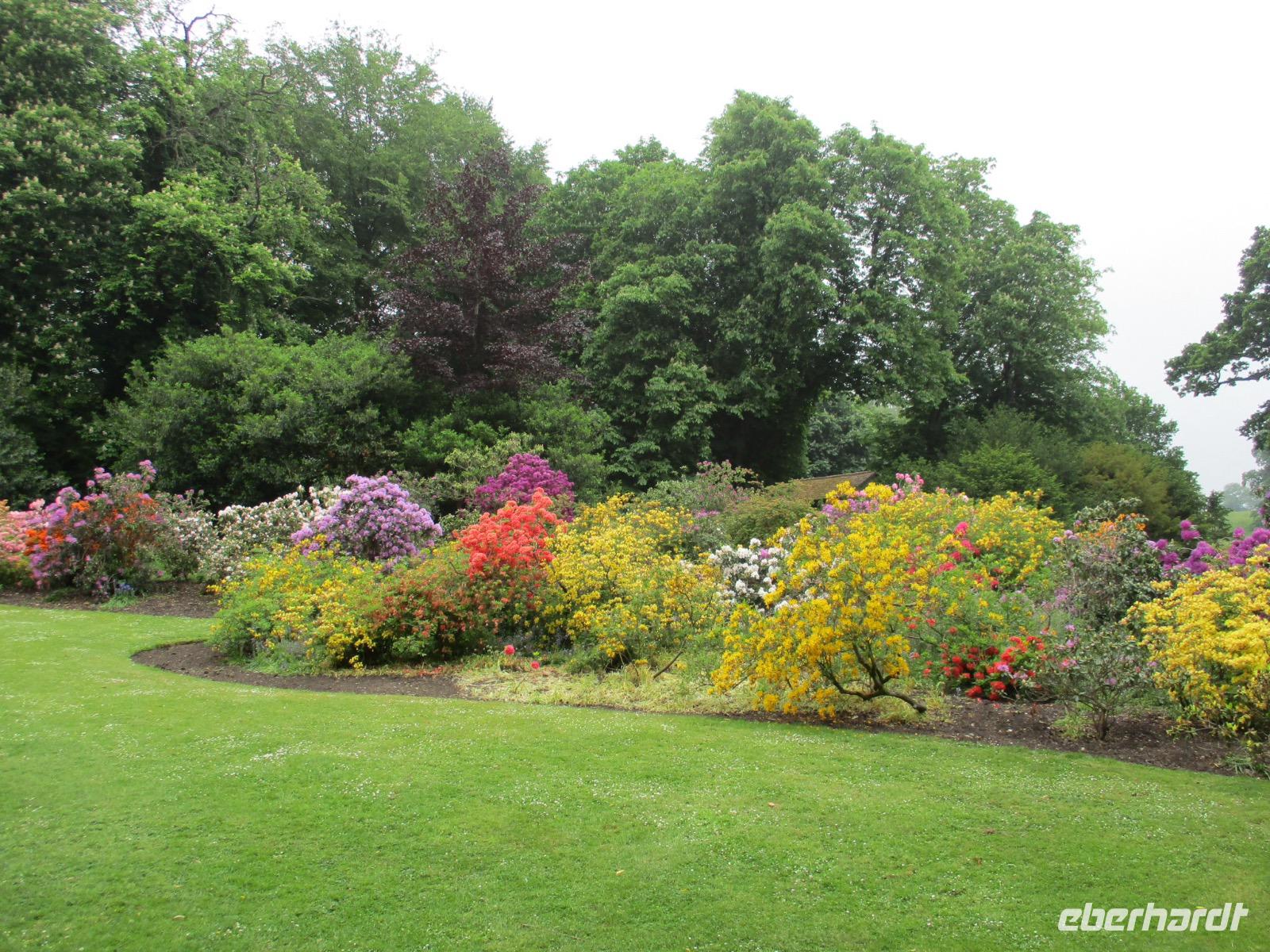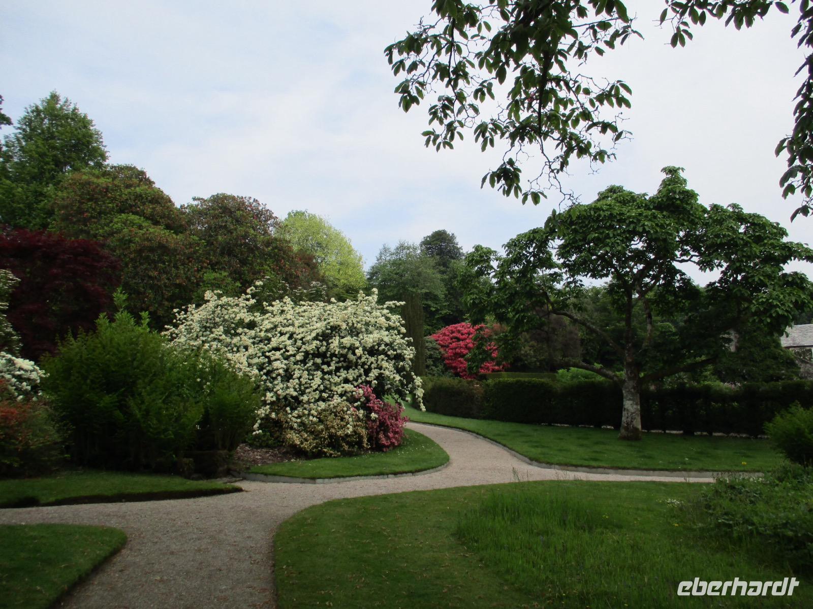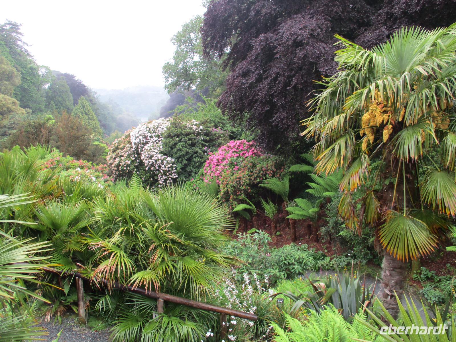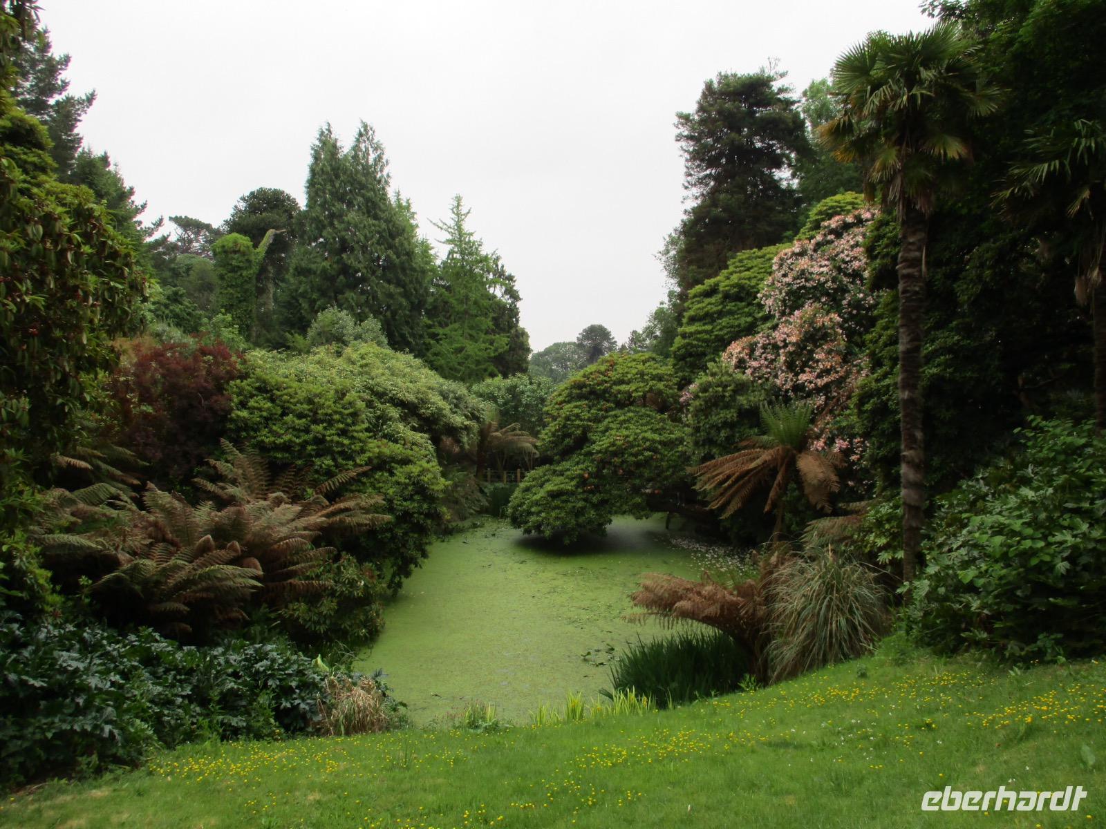 Gleich am Morgen machten wir uns auf und fuhren in Richtung Südwesten. Zunächst erreichten wir das Ende der Welt Cornwalls und Englands. Land's End erwartete uns mit einigen Regenschauern. Wir spazierten einen Weg hinunter zum letzten Aussichtspunkt vor den Klippen, machten zahlreiche Fotos und sahen auch den Wegweiser, auf dem die Entfernung bis New York angezeigt wird. Einige erstanden Postkarten und ließen sich den begehrten Lands-End-Poststempel darauf drucken. In Marazion, unserem nächsten Halt, kann man hinüber blicken zum St. Michael's Mount, einer Gezeiteninsel. Weil Ebbe war, konnten wir auf dem Causeway zu Fuß spazieren, um das Castle auf dem Hügel oder die herrlichen Felsengärten zu besichtigen. Leider kamen während unseres Aufenthaltes auch hier immer wieder Regenschauer, so dass der Schirm unser ständiger Begleiter war. Danach fuhren wir in die Nähe von Falmouth und besuchten Trebah Garden, einen Schluchtengarten mit unzähligen verschiedenfarbig blühenden Rhododendronpflanzen, mit Baumfarnen, farbenfrohen Etagenprimeln und einem idyllischen Bächlein. Auch hier mussten wir immer wieder Regenschauer hinnehmen. Dennoch genossen wir diesen aussergewöhnlichen Garten, zu dem sogar ein Stück Strand gehört.