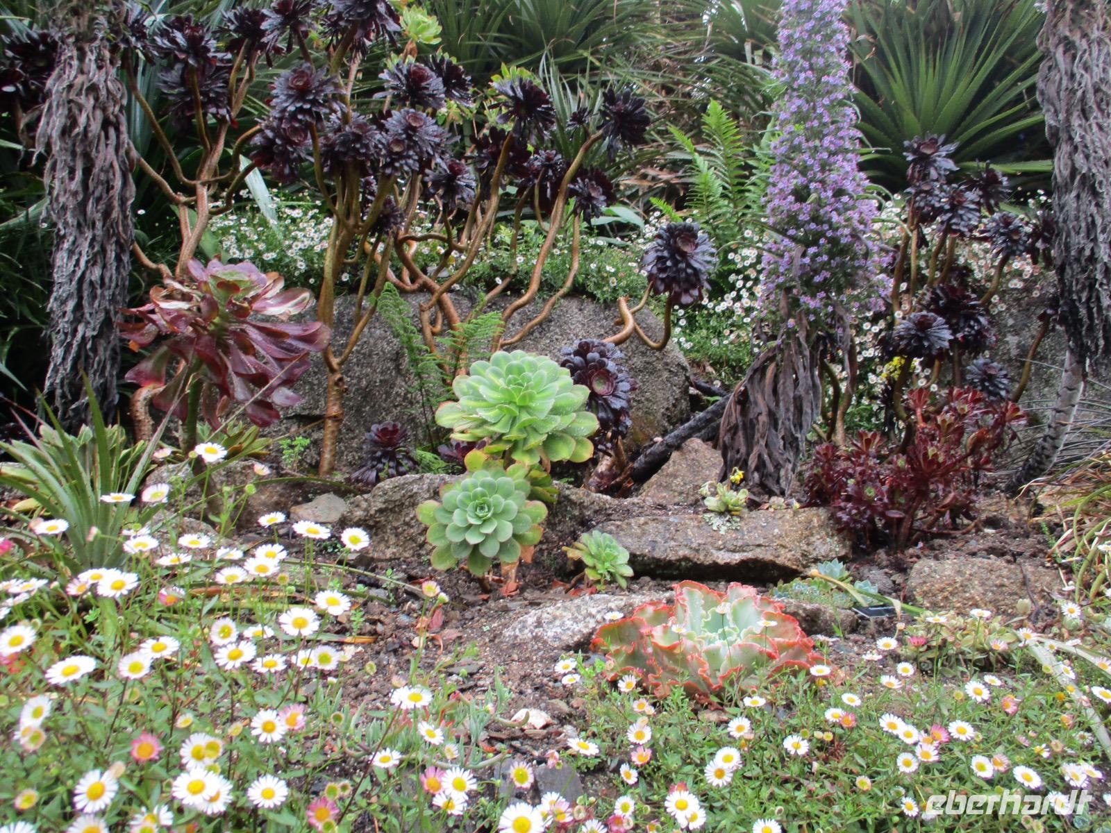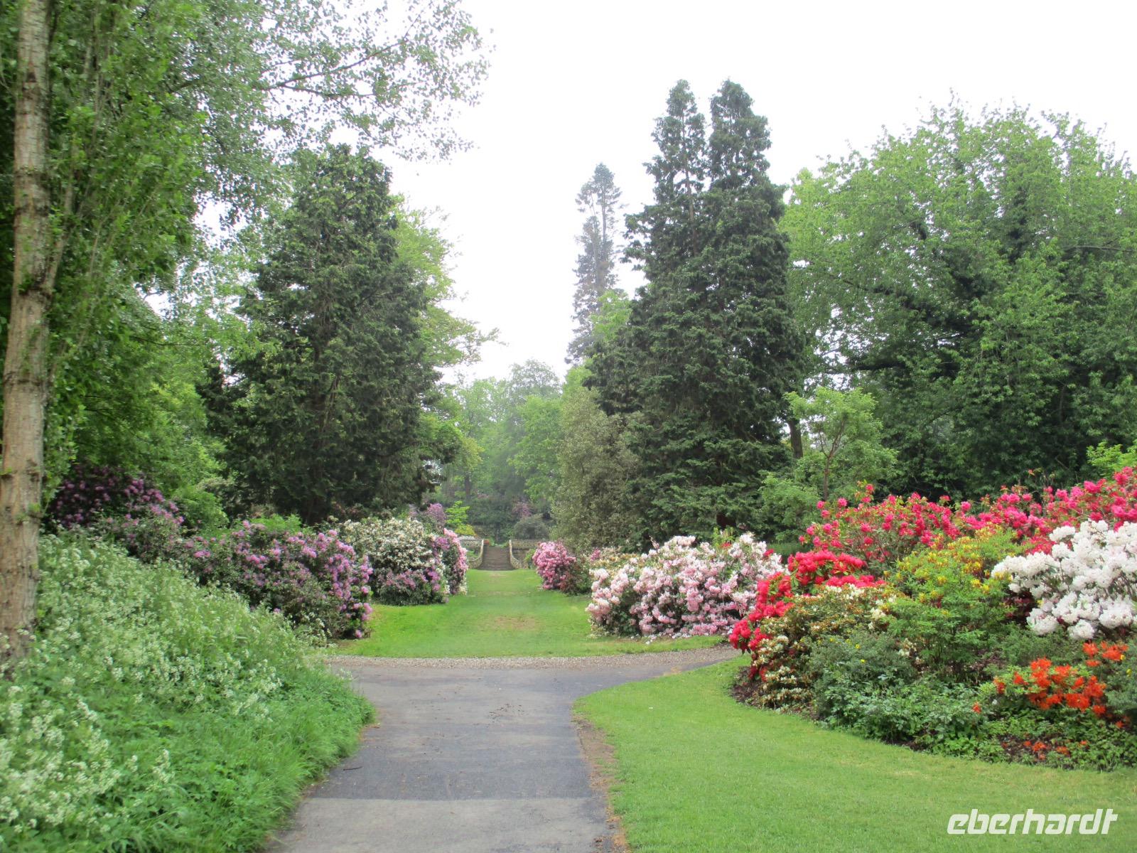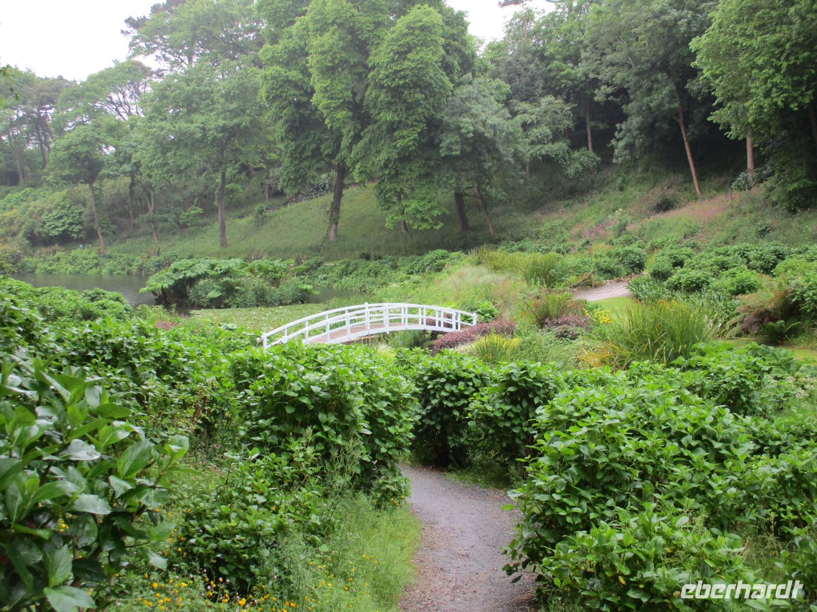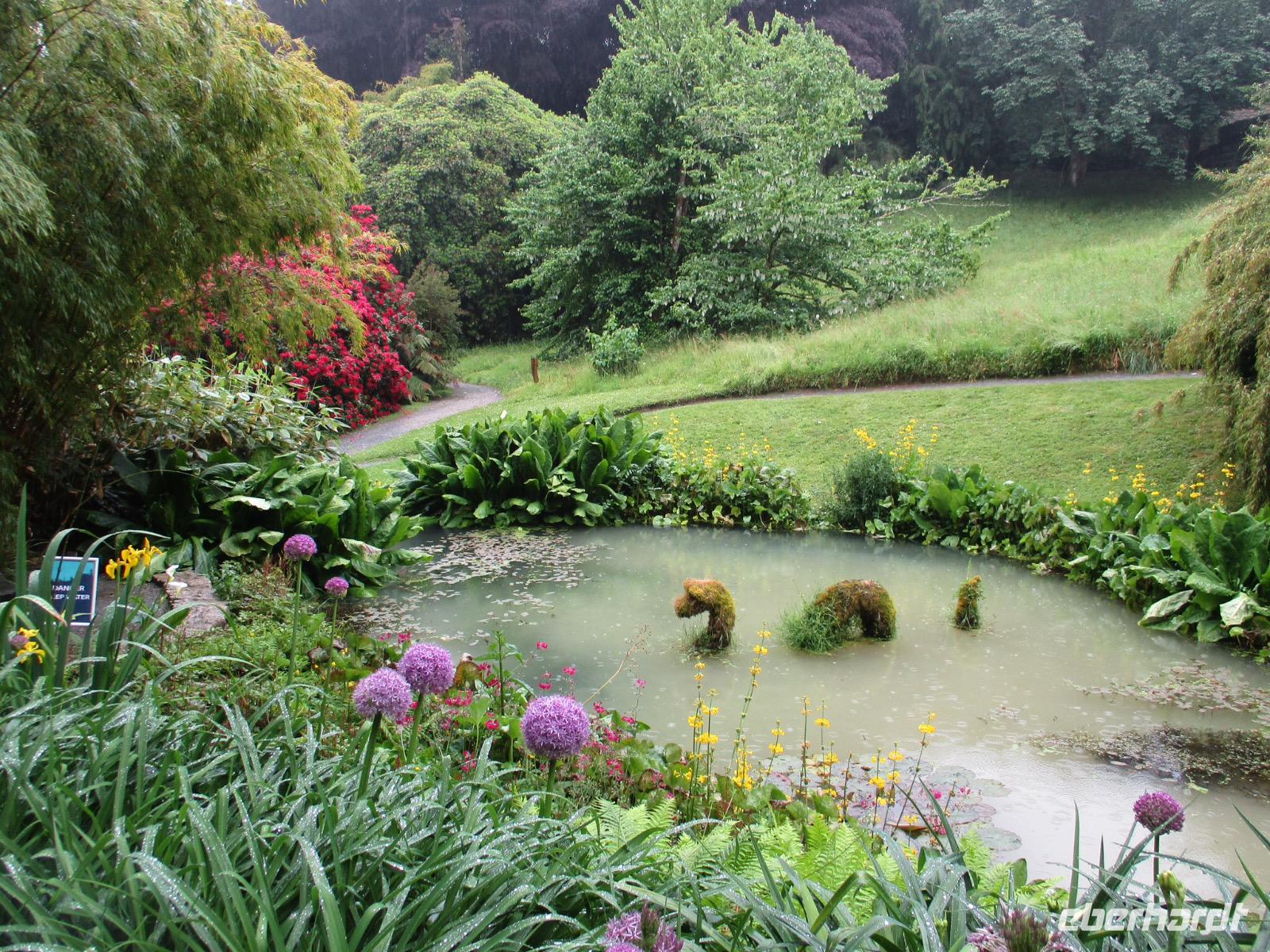 Gleich am Morgen machten wir uns auf und fuhren in Richtung Südwesten. Zunächst erreichten wir das Ende der Welt Cornwalls und Englands. Land's End erwartete uns mit einigen Regenschauern. Wir spazierten einen Weg hinunter zum letzten Aussichtspunkt vor den Klippen, machten zahlreiche Fotos und sahen auch den Wegweiser, auf dem die Entfernung bis New York angezeigt wird. Einige erstanden Postkarten und ließen sich den begehrten Lands-End-Poststempel darauf drucken. In Marazion, unserem nächsten Halt, kann man hinüber blicken zum St. Michael's Mount, einer Gezeiteninsel. Weil Ebbe war, konnten wir auf dem Causeway zu Fuß spazieren, um das Castle auf dem Hügel oder die herrlichen Felsengärten zu besichtigen. Leider kamen während unseres Aufenthaltes auch hier immer wieder Regenschauer, so dass der Schirm unser ständiger Begleiter war. Danach fuhren wir in die Nähe von Falmouth und besuchten Trebah Garden, einen Schluchtengarten mit unzähligen verschiedenfarbig blühenden Rhododendronpflanzen, mit Baumfarnen, farbenfrohen Etagenprimeln und einem idyllischen Bächlein. Auch hier mussten wir immer wieder Regenschauer hinnehmen. Dennoch genossen wir diesen aussergewöhnlichen Garten, zu dem sogar ein Stück Strand gehört.