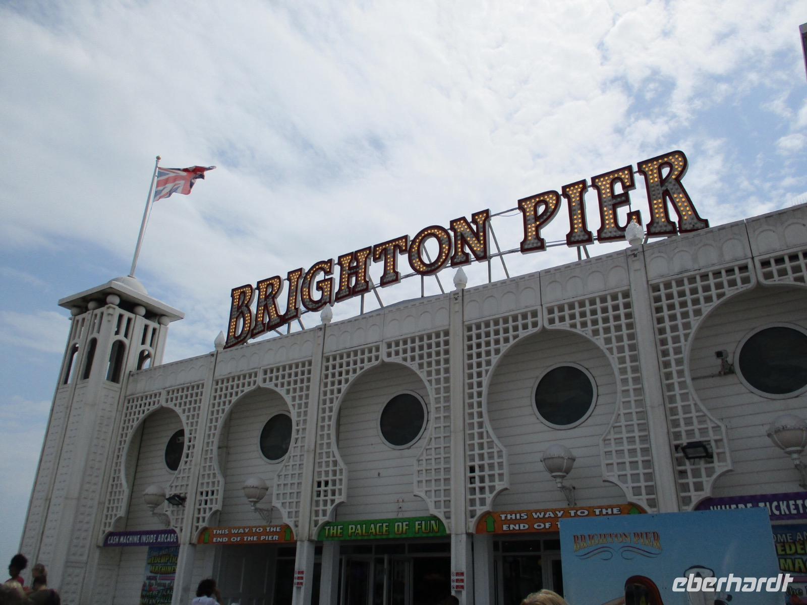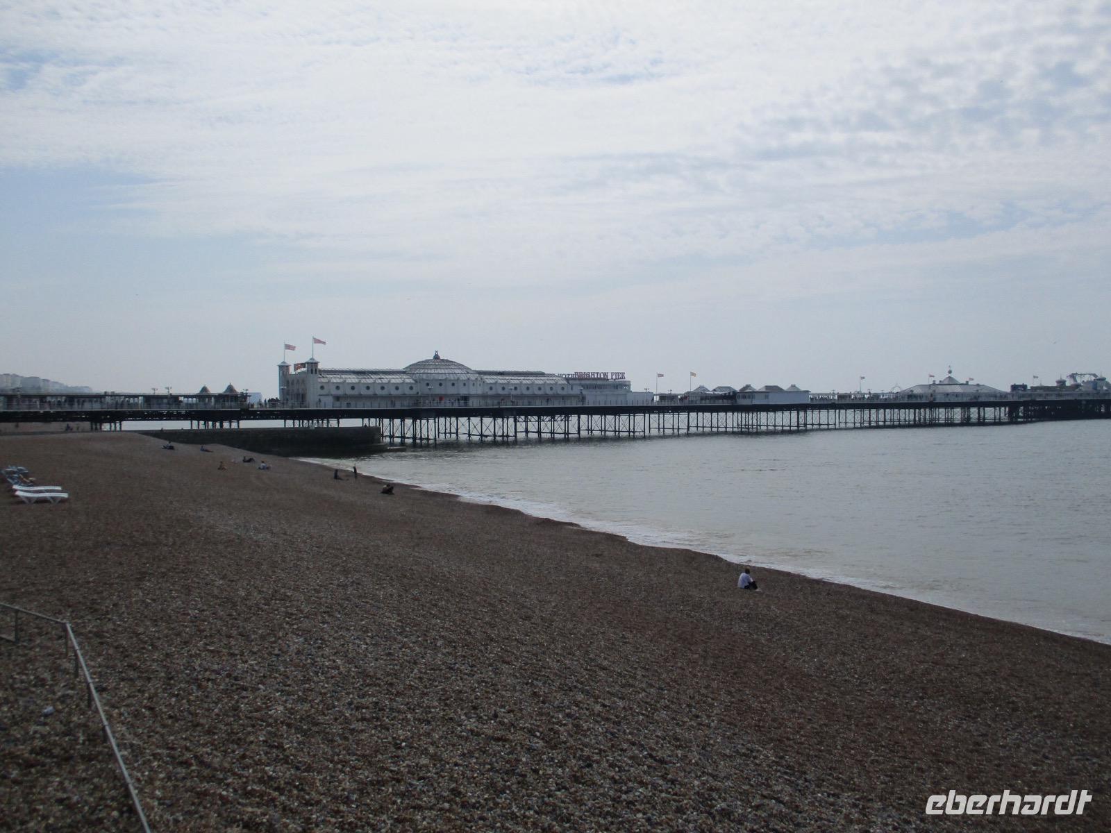 Vorbei am Long Man of Wilmington, einer alten weissen Ritzzeichnung in einem grünen Hang, fuhren wir nach Brighton, das zur Prinzregentenzeit ein beliebtes Vergnügungspflaster, nicht nur des Prinzen war. Zunächst besichtigten wir den Royal Pavillon. Der Palast ist dem eines Maharadschas würdig! Drachen, Schlangen, Lotusblüten und andere orientalisch anmutende Gegenstände verzieren das Innere des Pavillons, so dass man glaubt, in Persien zu sein, obwohl man gerade noch durch Brighton spaziert war. Nach dem Besuch des Palastes und Freizeit in der Stadt fuhren wir entlang der südenglischen Kreideküste nach Beachy Head. Bei herrlichem Sonnenschein - aber kräftigem Wind - unternahmen wir eine Wanderung entlang der Küste mit imposanten Ausblicken auf das Meer, zwei Leuchttürme und die Kreidefelsen. Der Nachmittag stand uns zur freien Verfügung, und so nutzten wir diese Zeit, um uns Eastbourne auf eigene Faust etwas näher anzusehen. Am Abend trafen wir uns wieder und genossen ein gemeinsames Abendessen in unserem Hotel.