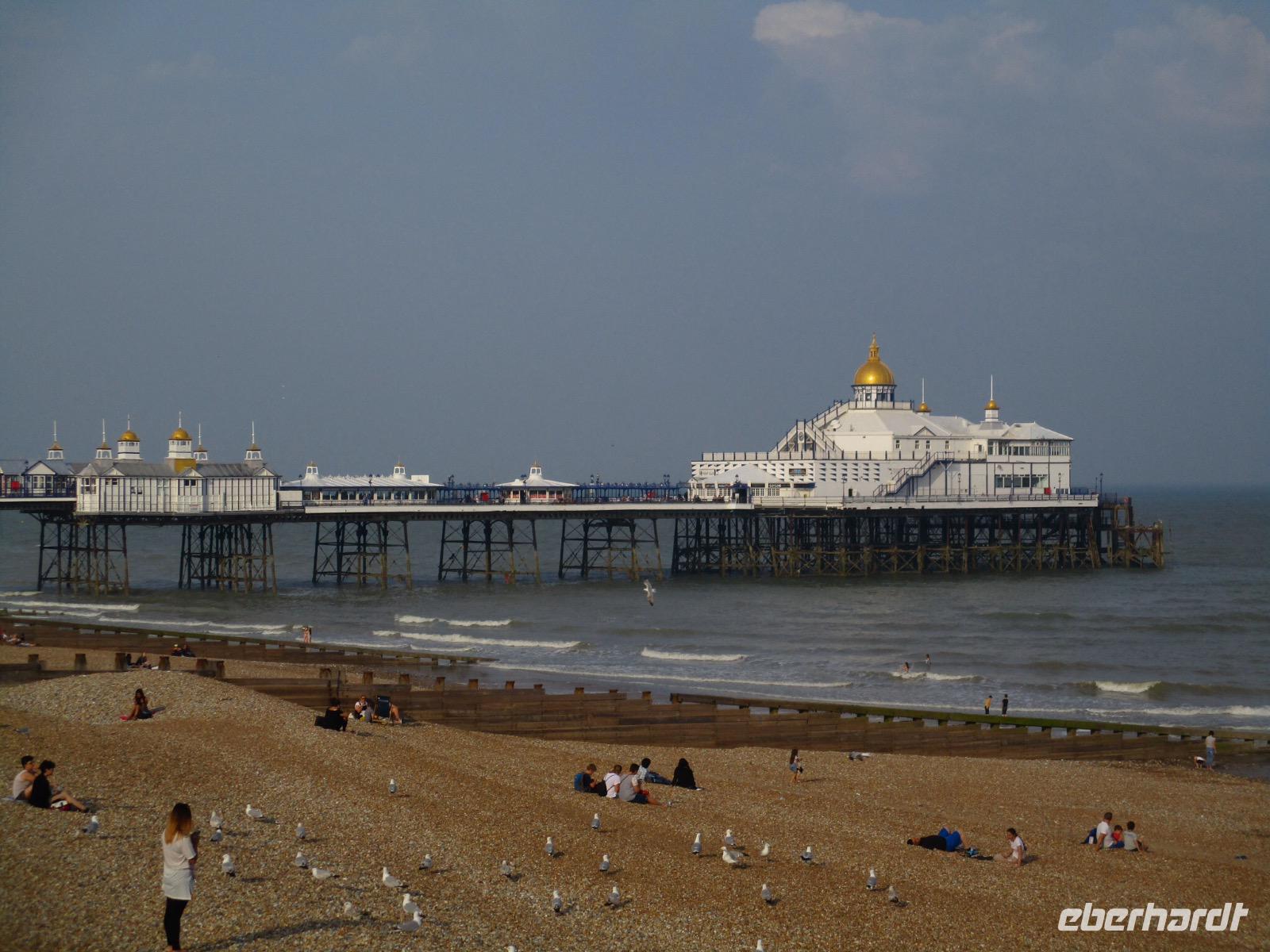 Ein hoher Doppelturm in Ziegelbauweise steht über verschiedenen Themengärten, die vor vielen Jahren von der Autorin Vita Sackville-West und ihrem Ehemann angelegt worden waren. Wir genossen den sonnigen Nachmittag zwischen duftenden Rosen und bunt blühenden Beeten oder verschafften uns einen Überblick über die Anlage vom Aussichtspunkt des Castles aus. Auf dem Weg zu unserem Hotel in Eastbourne fuhren wir vorbei an Battle, wo 1066 die folgenreiche Schlacht zwischen Engländern und Normannen stattfand. Die Normannen waren siegreich unter Wilhelm dem Eroberer und besetzten in Folge dessen England. Berühmt wurde dadurch auch Hastings, die Hafenstadt in der Nähe, denn die Schlacht ging als Schlacht bei Hastings in die Geschichte ein. Wir fuhren ein Stück entlang der Uferpromenade von Hastings, bevor wir schließlich unser Hotel Imperial in Eastbourne an der schönen Promenade erreichten. Wir bezogen unsere Zimmer und aßen gemeinsam zu Abend.