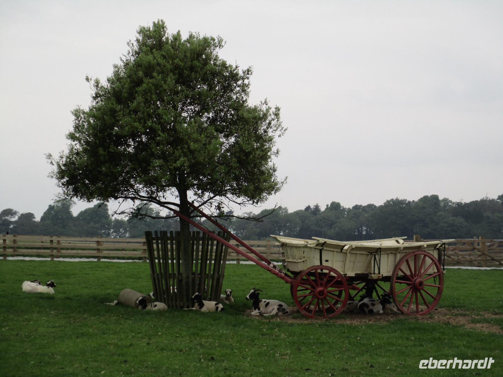 An diesem Morgen verließen wir Bristol, um nach Avebury zu fahren. Unterwegs bestaunten wir in Cherhill eines der „White Horses", die in dieser Gegend an zahlreichen Hängen vor vielen Jahren eingeritzt worden sind. Dann erreichten wir Avebury. Das ist ein kleines englisches Dorf, wie es viele gibt. Eine kleine Kirche ragt zwischen romantischen Cottages und Farmhäusern hervor. Und dennoch gibt es in Avebury etwas ganz Besonderes: Steinkreise und Galerien aus Menhiren und Megaliten. Wir wanderten über die Wiesen und besichtigten diese Monumente einer längst vergangenen Kultur. Vermutlich errichtete man die Steinkreise und Galerien vor ca. 4500 Jahren. Ein kleines Museum im Dorf informiert über die Geschichte der Steine.
