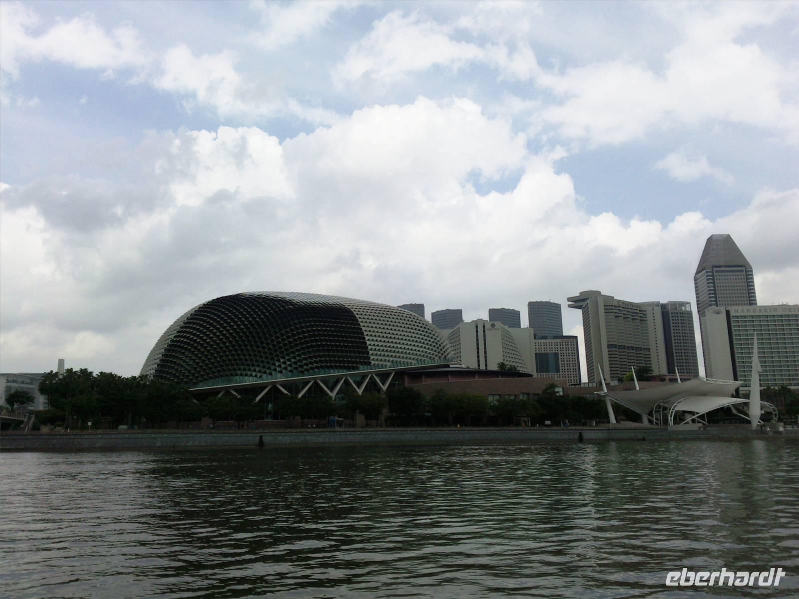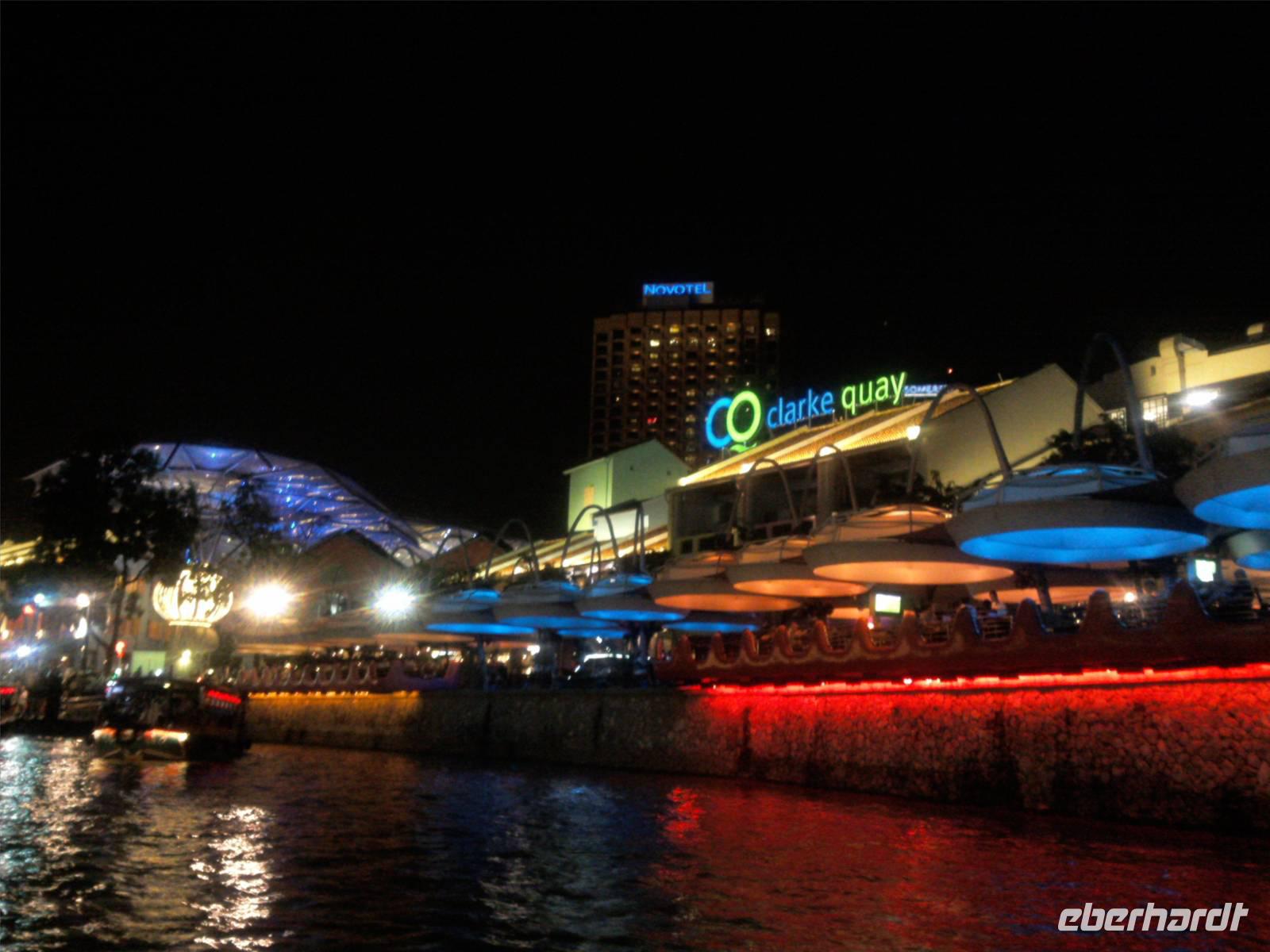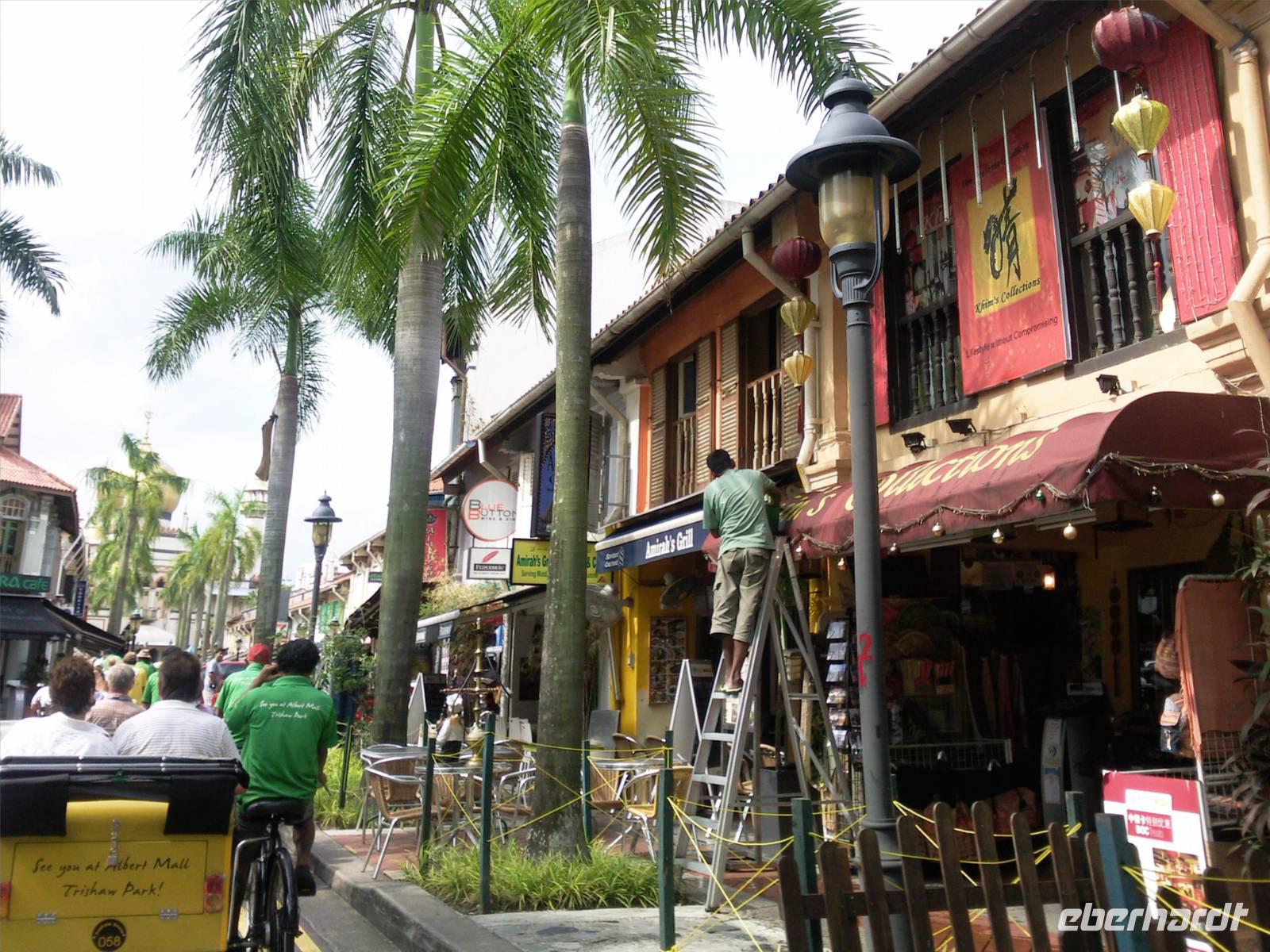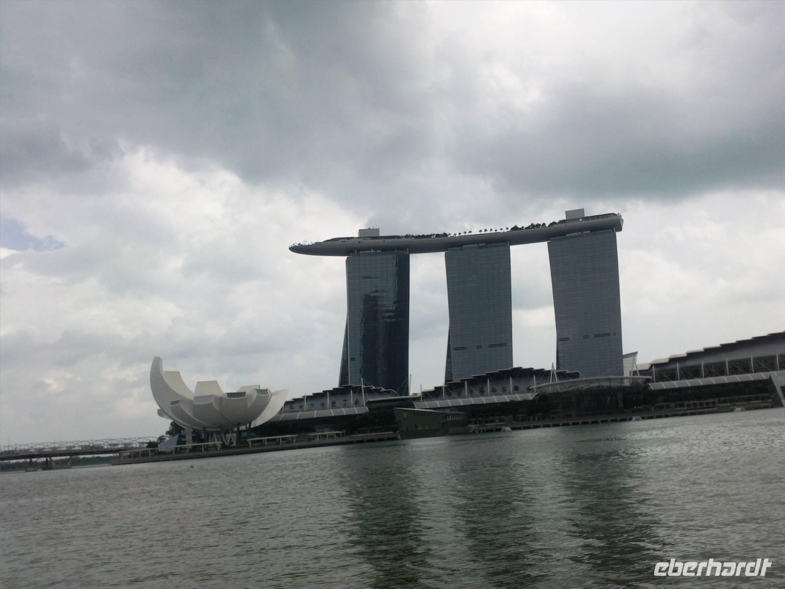 Einer der Höhepunkte unserer Reise ist unbestritten der Stadtstaat Singapur. Tag und Nacht lockt die Löwenstadt mit interessanten Entdeckungen. Schön ausgeschlafen und gestärkt starten wir am Vormittag unseren Ausflug. Auf dem Programm stehen heute der chinesische Viertel mit dem neu gebauten Buddha Sri Mariamman-Tempel, in dem sogar zwei Fahrstühle und Klimaanlage eingebaut sind. Danach geht es durch das indische Viertel und schließlich zum Clark Quay. Mit einem Bum-Boat schippern wir auf dem Singapur-Fluss und genießen die tolle Aussicht auf die moderne Megametropole. Fotos vom Meerlöwen, dem Marina Bay Sands-Hotel und der Konzerthalle in Form einer Durianfrucht dürfen nicht fehlen. Im berüchtigten Raffles Hotel kühlen wir uns mit einem leckeren Singapore Sling ab. Hier dürfen/müssen sogar die Erdnussschalen auf den Boden geworfen werden. Eine Tri-Shaw holt uns ab und fährt und gemütlich in das arabische Viertel zur Arab Square. Unsere Reiseleiterin gibt uns etwas Freizeit, um kleine Souvenirs für daheim mitzunehmen. Empfehlenswert sind die natürlichen Öldüfte, die bei arabischen Mädchen und Frauen äußerst beliebt sind. Am Nachmittag kehren wir auf das Schiff zurück und ruhen uns ein wenig aus, bevor es mit der Abendbesichtigung weitergeht. Am Abend holt uns ein neuer Reiseleiter ab, der ebenfalls sehr gut Englisch spricht. Ich dolmetsche wie gewohnt für unsere Gruppe. Nun sehen wir die Gebäude vom Morgen bei Nacht. Fantastisch, wie alles funkelt und leuchtet!