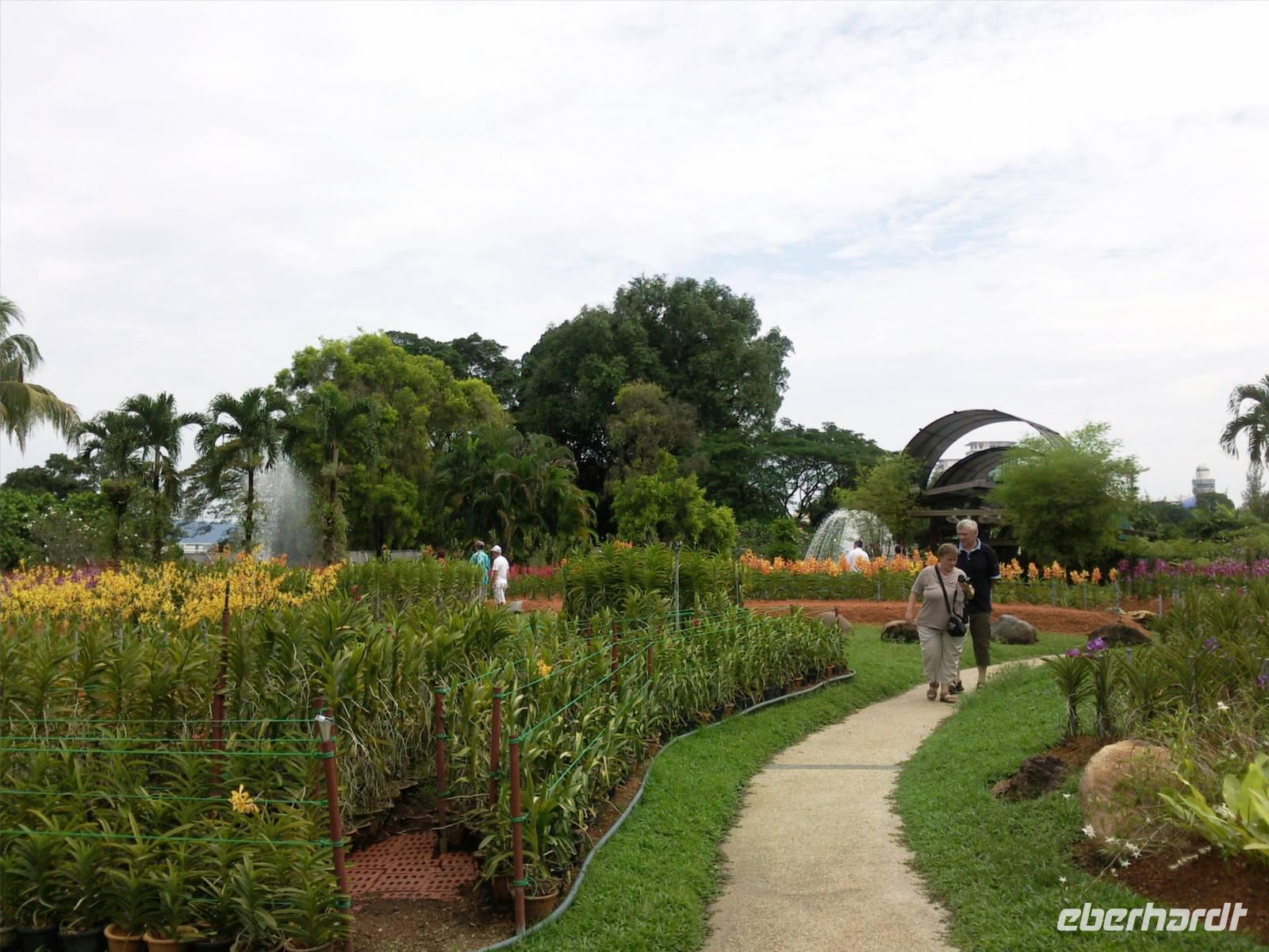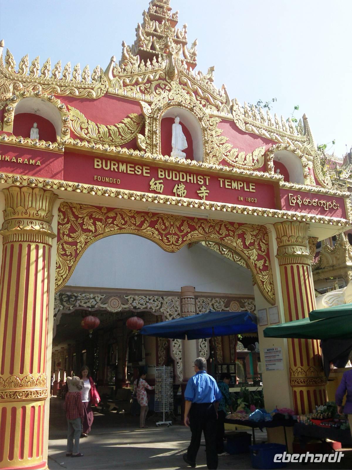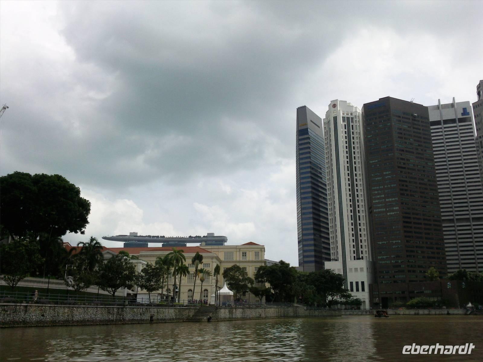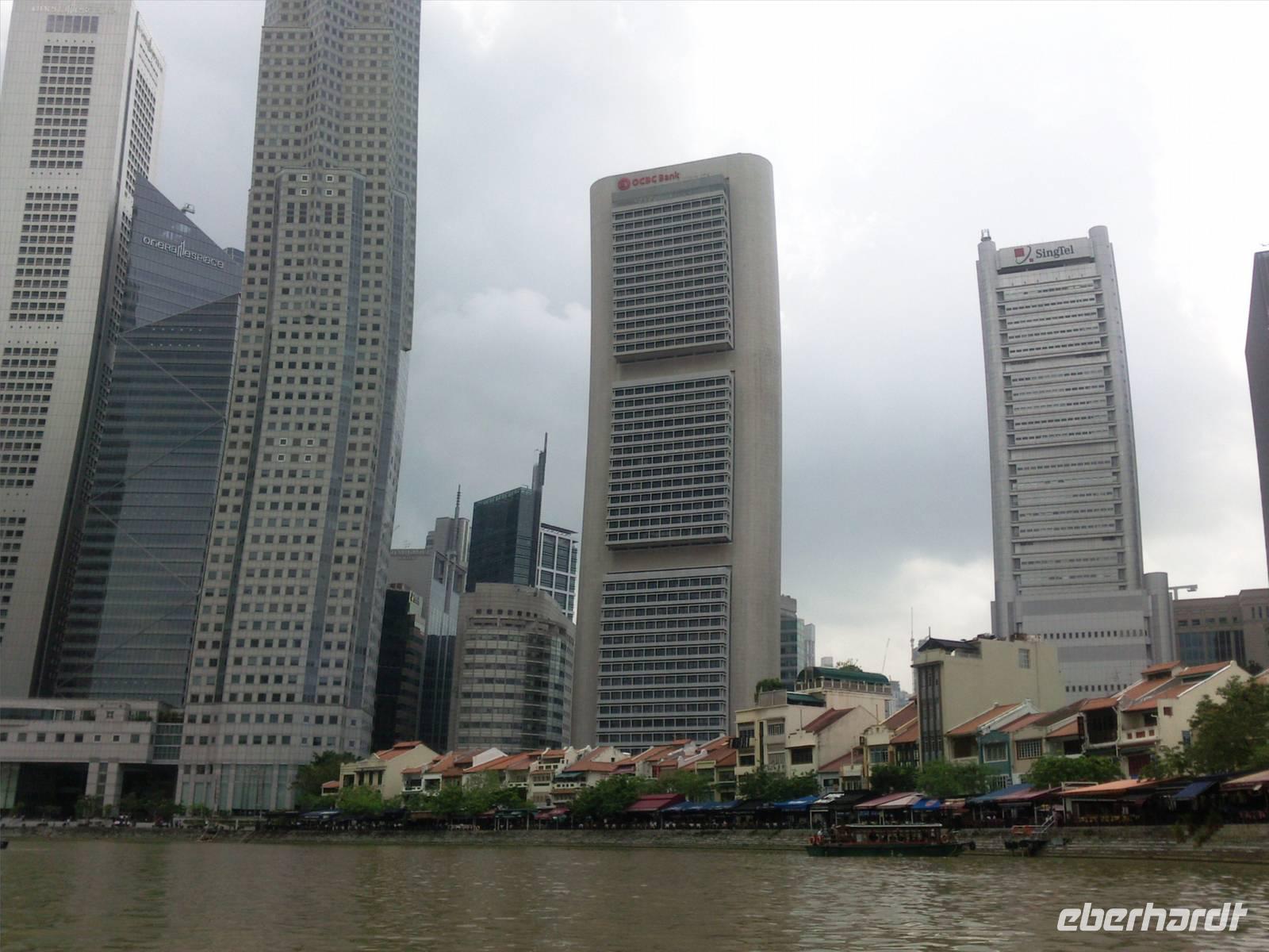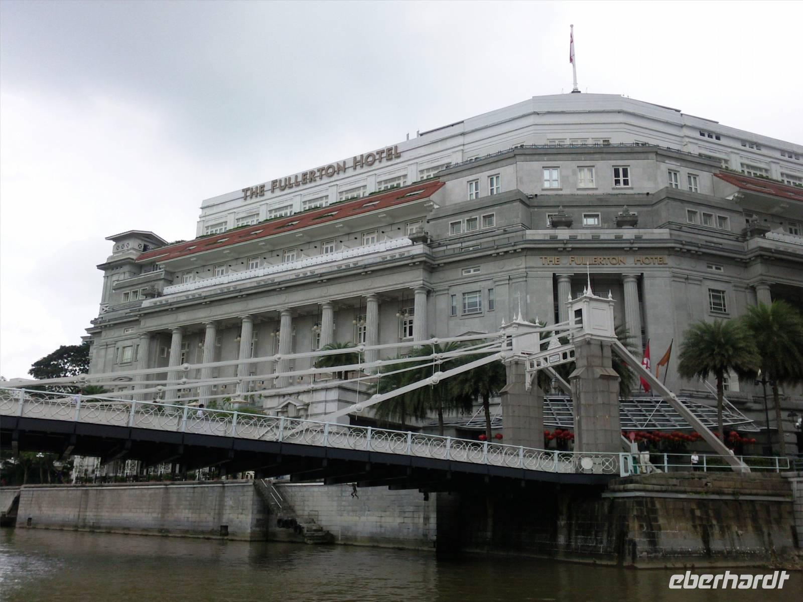 Einer der Höhepunkte unserer Reise ist unbestritten der Stadtstaat Singapur. Tag und Nacht lockt die Löwenstadt mit interessanten Entdeckungen. Schön ausgeschlafen und gestärkt starten wir am Vormittag unseren Ausflug. Auf dem Programm stehen heute der chinesische Viertel mit dem neu gebauten Buddha Sri Mariamman-Tempel, in dem sogar zwei Fahrstühle und Klimaanlage eingebaut sind. Danach geht es durch das indische Viertel und schließlich zum Clark Quay. Mit einem Bum-Boat schippern wir auf dem Singapur-Fluss und genießen die tolle Aussicht auf die moderne Megametropole. Fotos vom Meerlöwen, dem Marina Bay Sands-Hotel und der Konzerthalle in Form einer Durianfrucht dürfen nicht fehlen. Im berüchtigten Raffles Hotel kühlen wir uns mit einem leckeren Singapore Sling ab. Hier dürfen/müssen sogar die Erdnussschalen auf den Boden geworfen werden. Eine Tri-Shaw holt uns ab und fährt und gemütlich in das arabische Viertel zur Arab Square. Unsere Reiseleiterin gibt uns etwas Freizeit, um kleine Souvenirs für daheim mitzunehmen. Empfehlenswert sind die natürlichen Öldüfte, die bei arabischen Mädchen und Frauen äußerst beliebt sind. Am Nachmittag kehren wir auf das Schiff zurück und ruhen uns ein wenig aus, bevor es mit der Abendbesichtigung weitergeht. Am Abend holt uns ein neuer Reiseleiter ab, der ebenfalls sehr gut Englisch spricht. Ich dolmetsche wie gewohnt für unsere Gruppe. Nun sehen wir die Gebäude vom Morgen bei Nacht. Fantastisch, wie alles funkelt und leuchtet!