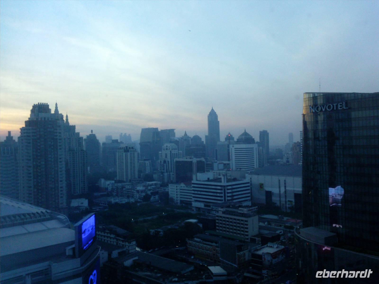 Endlich ist es soweit - unsere langersehnte Reise in die schönsten Länder Asiens kann beginnen. Bequem bringt Sie der Haustür-Transfer-Service zum Flughafen. Bevor es richtig los geht, stärken wir uns mit einem Snack im Restaurant Chilli in Dresden bzw. im Marché in Leipzig. Nach einem kurzen Flug erreichen wir Frankfurt, wo sie die gesamte Reisegruppe kennenlernt. Ein weiterer bequemer Flug mit Thai Airways und wir erreichen Bangkok. Wow, hier begrüßen uns Sonne, Wärme und unser Reiseleiter On. In unserem 5-Sterne-Hotel „Amari Watergate" machen wir uns frisch, bevor es zum Abendessen geht. Das Essen ist nicht in irgendeinem Restaurant, sondern in der 84. Etage des Bayoke Sky Hotels, auf dem wir wunderbar auf die beeindruckende Metropole hinunterblicken können. Beim internationalen Buffet findet jeder etwas nach seinem Geschmack und bei der schönen Aussicht von Bangkok bei Nacht essen die Augen sogar mit.