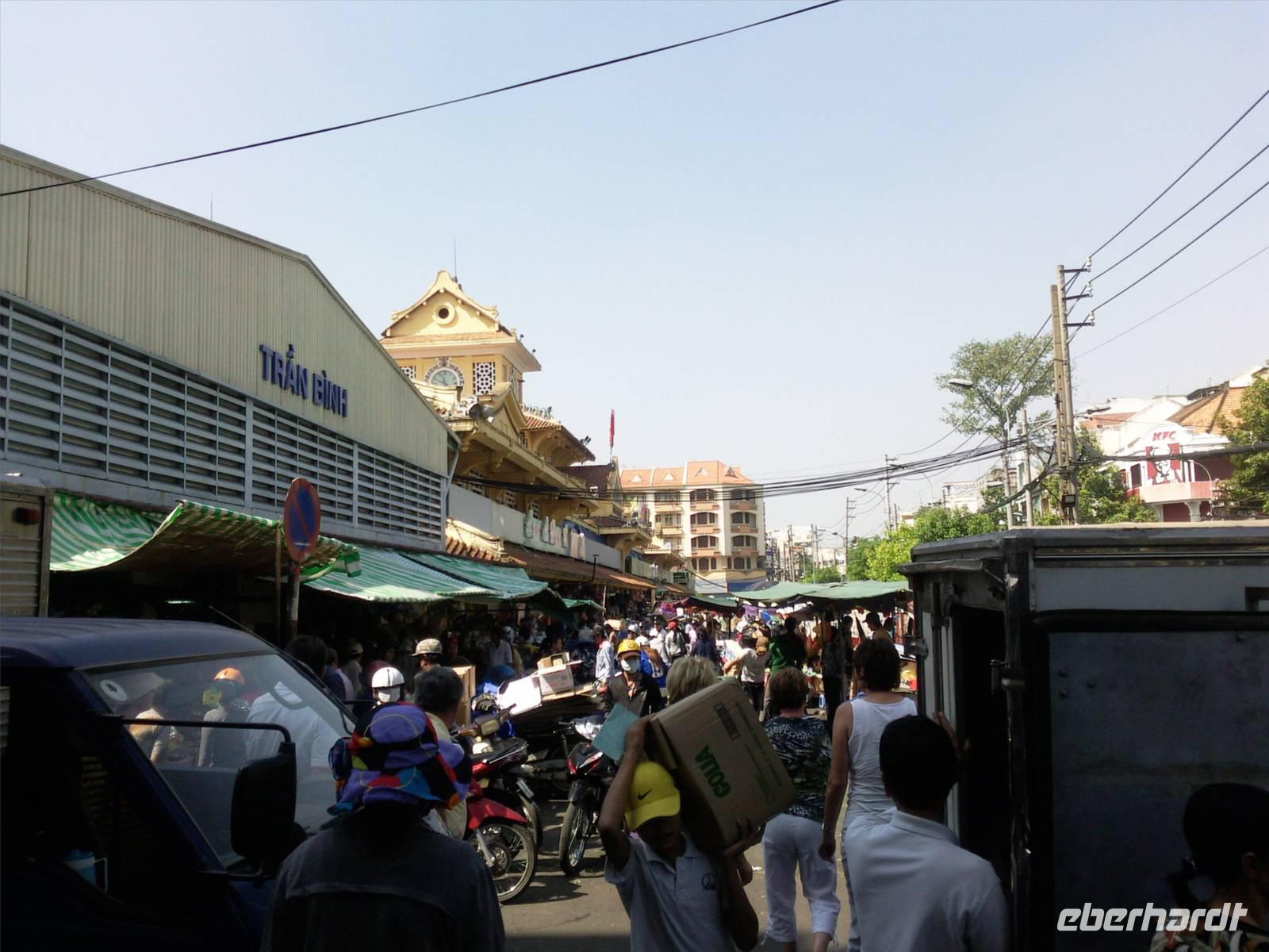 Im Anschluss spazieren wir noch eine kleine Runde durch den Textil-Nachtmarkt und bewundern den Tumult.