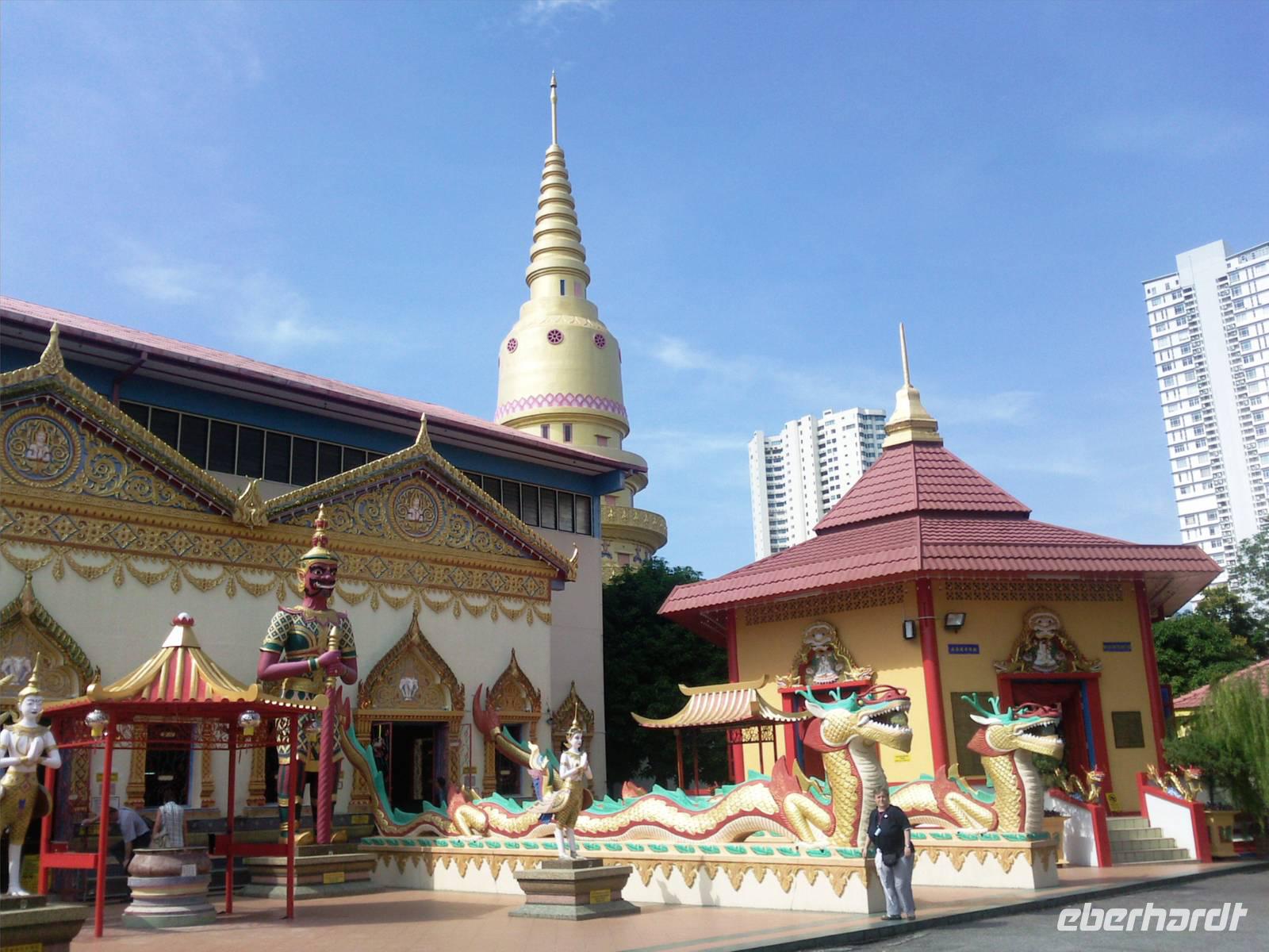 Unser nächstes Ziel ist die malaysische Insel Penang. Rund um die Insel gibt es viel zu entdecken. Im Ort Air Itam erstreckt sich auf dem Penang Hill der Kek Lok Si-Tempel. Dieser Punkt liegt fast zentral auf der Insel. Der Aufgang zum Tempel geht vorbei an zahlreichen Souvenirständen, die für wenig Geld T-Shirts, Hüte und kleine Andenken verkaufen. Danach erreicht man einen Teich, in dem man auf dem Markt freigekaufte Schildkröten freisetzt. Sobald man den Innenhof der schönen Anlage betritt, wirkt es wie als würde man in einer andern Welt stehen. Zahlreiche Lampions schmücken die in einer Grünanlage eingebetteten Tempeln und Buddha Statuen. Der Höhepunkt des Tempelkomplexes ist die sieben stöckige Pagode, in der sich 10.000 Buddhas befinden. Die Architektur ist eine Kombination aus chinesischen, thailändischen und malaysischen Elementen. Wir setzen unseren Ausflug fort zur Schmetterlingsfarm. Im kleinen tropischen Garten flattern Tausende Schmetterlinge und erfreuen uns mit Ihrer Farbenpracht. Schließlich sehen wir noch den Tempel mit dem größten liegenden Buddha Asiens. In ihm sind auch die zwölf Buddhas der chinesischen Tierkreiszeichen sowie zahlreiche Urnen von Verstorbenen untergebracht. Gleich gegenüber befindet sich der burmesische Tempel mit einem riesigen goldenen stehenden Buddha und einer schönen Gartenanlage. Zurück an Bord erholen wir uns auf unseren Kabinen. Nach dem Abendessen an Bord begeistert und das AIDAdiva Showensemble mit der ABBA-Show "Dancing Queen" im Theatrium.