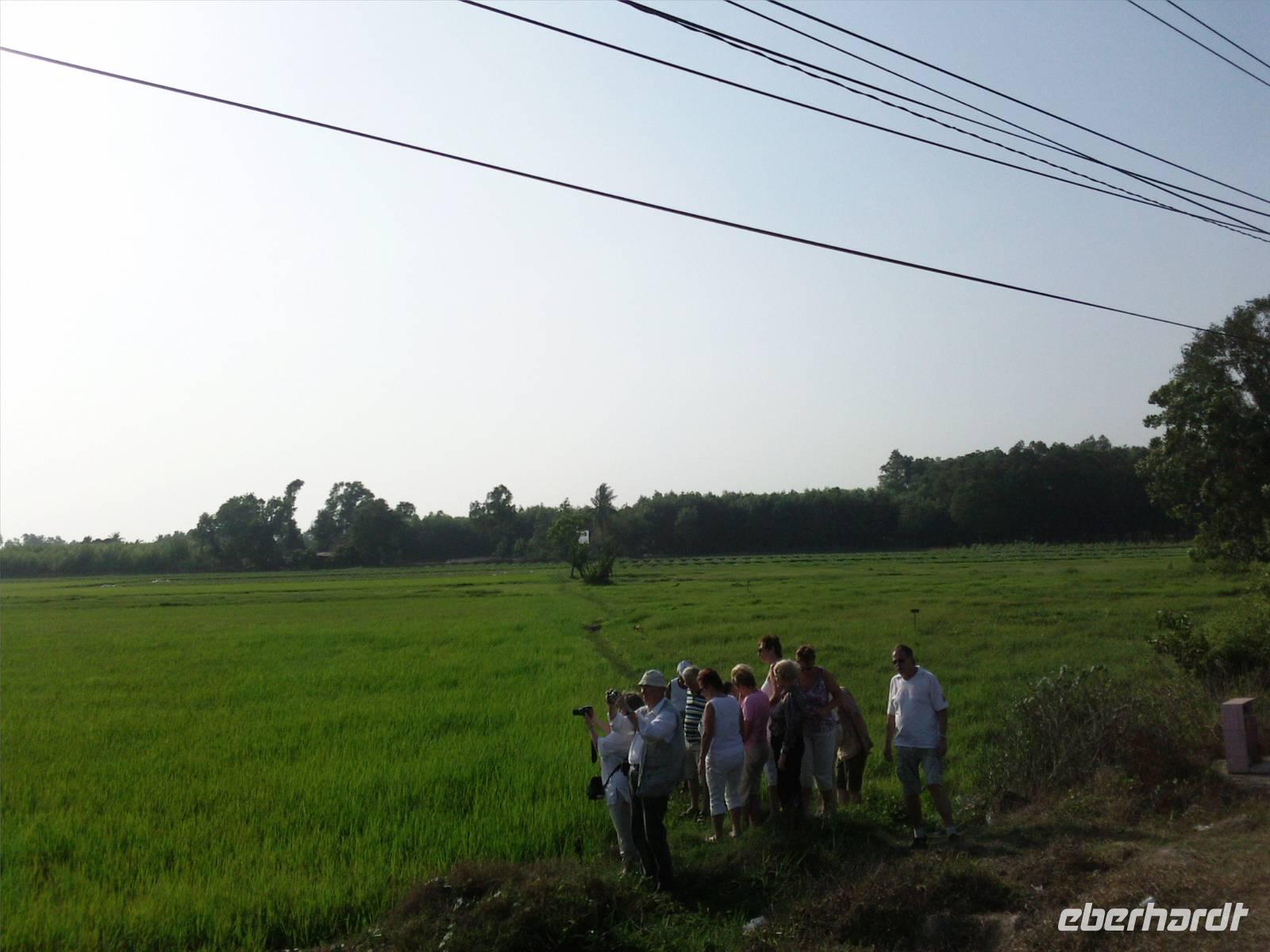 Xin chao und willkommen im Land der Kegelhüte. Die knapp zweistündige Fahrt vom Hafen in Vung Tau nach Saigon, offiziell Ho-Chi-Minh-Stadt, gibt uns einen ersten Einblick in das Leben der Vietnamesen: überall fahren Mopeds kreuz und quer und aus allen Richtungen, Einzelhändler stehen an den Straßenrändern, Garküchen und Teestände reihen sich aneinander. Wir halten kurz vor Saigon in einer Lackfabrik und bewundern das Handwerk sowie den Fleiß der Mitarbeiter. Im chinesischen Viertel der Stadt angekommen wird der Verkehr noch dichter. Und wir bringen uns mitten ins Geschehen ein, indem wir uns auf einer Rikscha durch die lebendigen Straßen und Gassen fahren lassen. Im Zentrum der vietnamesisch Metropole sehen wir die Einflüsse Frankreichs und Amerika: die Notre Dame-Kathedrale im neoromanischen Stil und das Hauptpostamt, dessen Eisengerüst von Gustav Eiffel entworfen wurde, stehen neben modernen Banken und Hotels. Vorbei am berühmten REX-Hotel spazieren wir zum Rathaus, vor dem eine eiserne Statue von Ho Chi Minh, dem einstigen Revolutionär und legendären Politiker, steht. Bevor wir zum Mittagessen fahren sind sich alle einig, noch eine Runde im Ben Thanh-Zentralmarkt, einem Wahrzeichen von Saigon, zu shoppen. Hier wird alles Mögliche und Unmögliche angeboten, was man sich vorstellen kann. Zum Mittag stärken wir uns mit einer Pho-Nudelsuppe, die inzwischen zum Nationalgericht Vietnams avanciert ist. Den letzten Halt machten wir am Wiedervereinigungspalast.