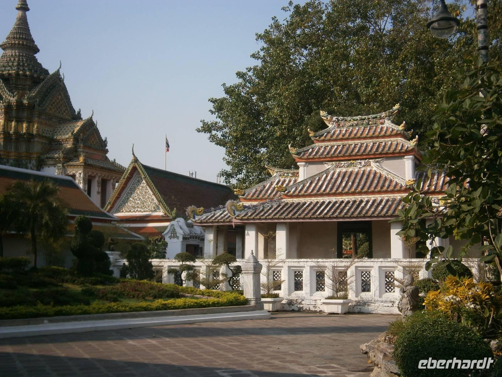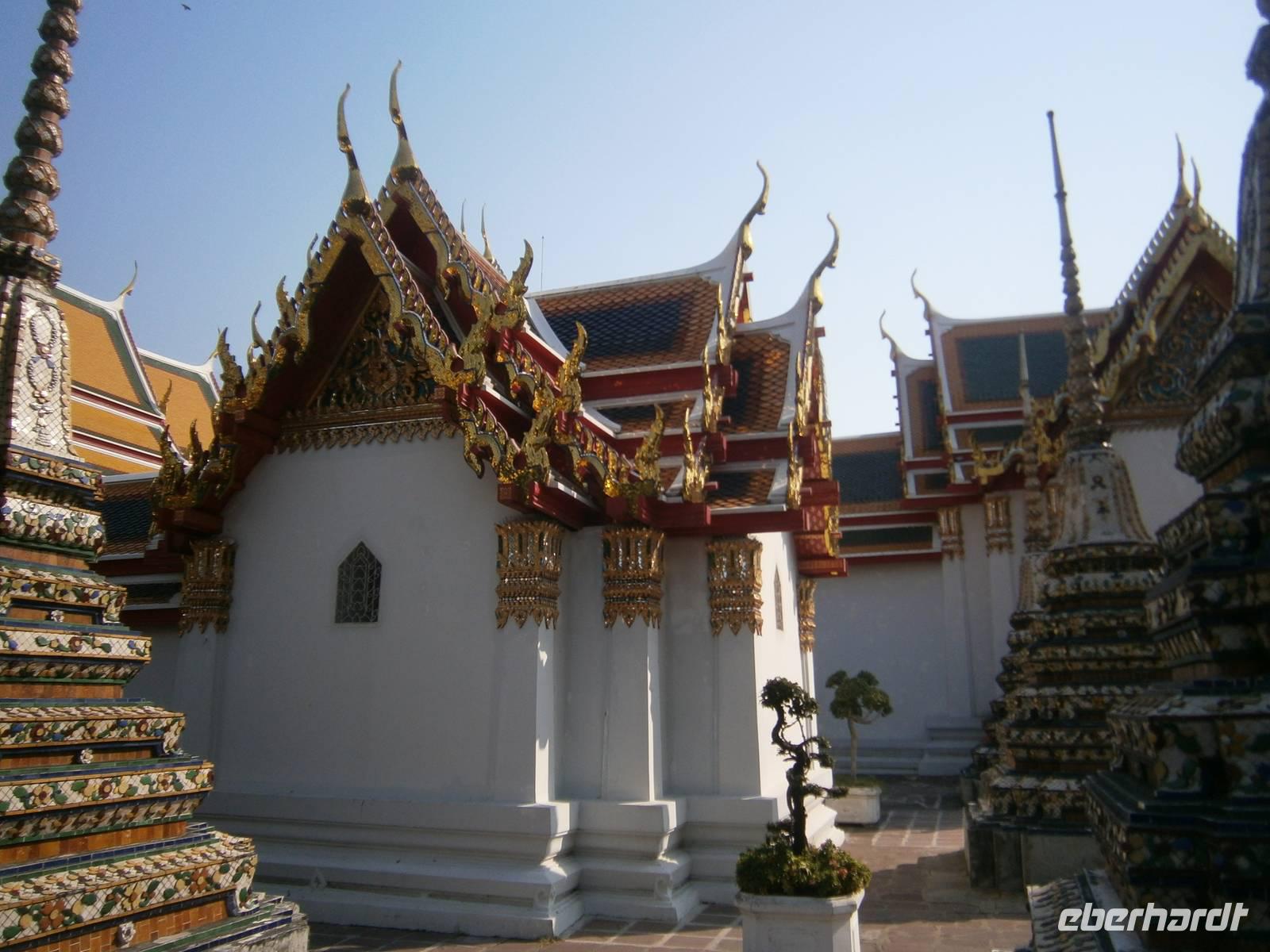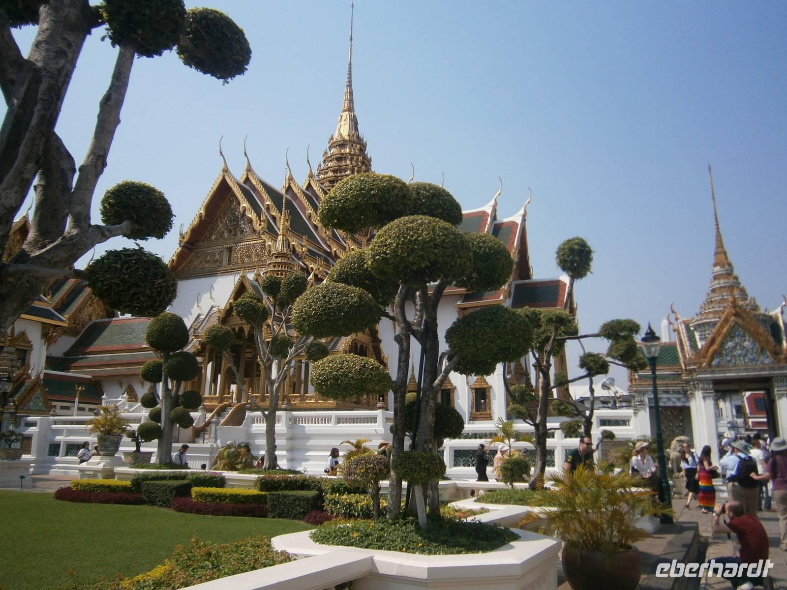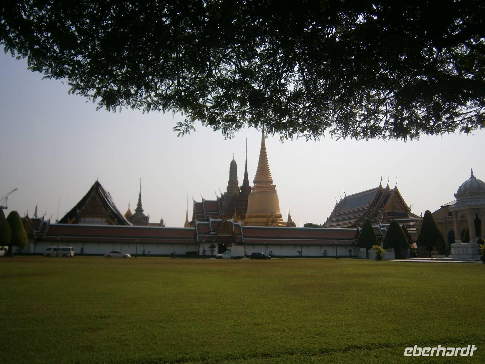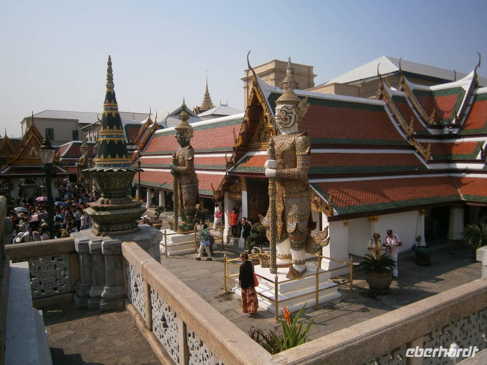 Nur wenige Minuten von hier entfernt befindet sich der Königspalast. Es ist ein Muß für jeden Thailand-Besucher, denn solch eine ungeheure und märchenhafte Pracht gibt es im ganzen Land nicht noch einmal. Die Palastanlage besteht aus zwei Bereichen, dem Wat Phra Kaeo Tempel mit dem Smaragdbuddha, Thailands Nationalheiligtum, und dem eigentlichen Königspalast, der früher von der königlichen Familie bewohnt wurde.