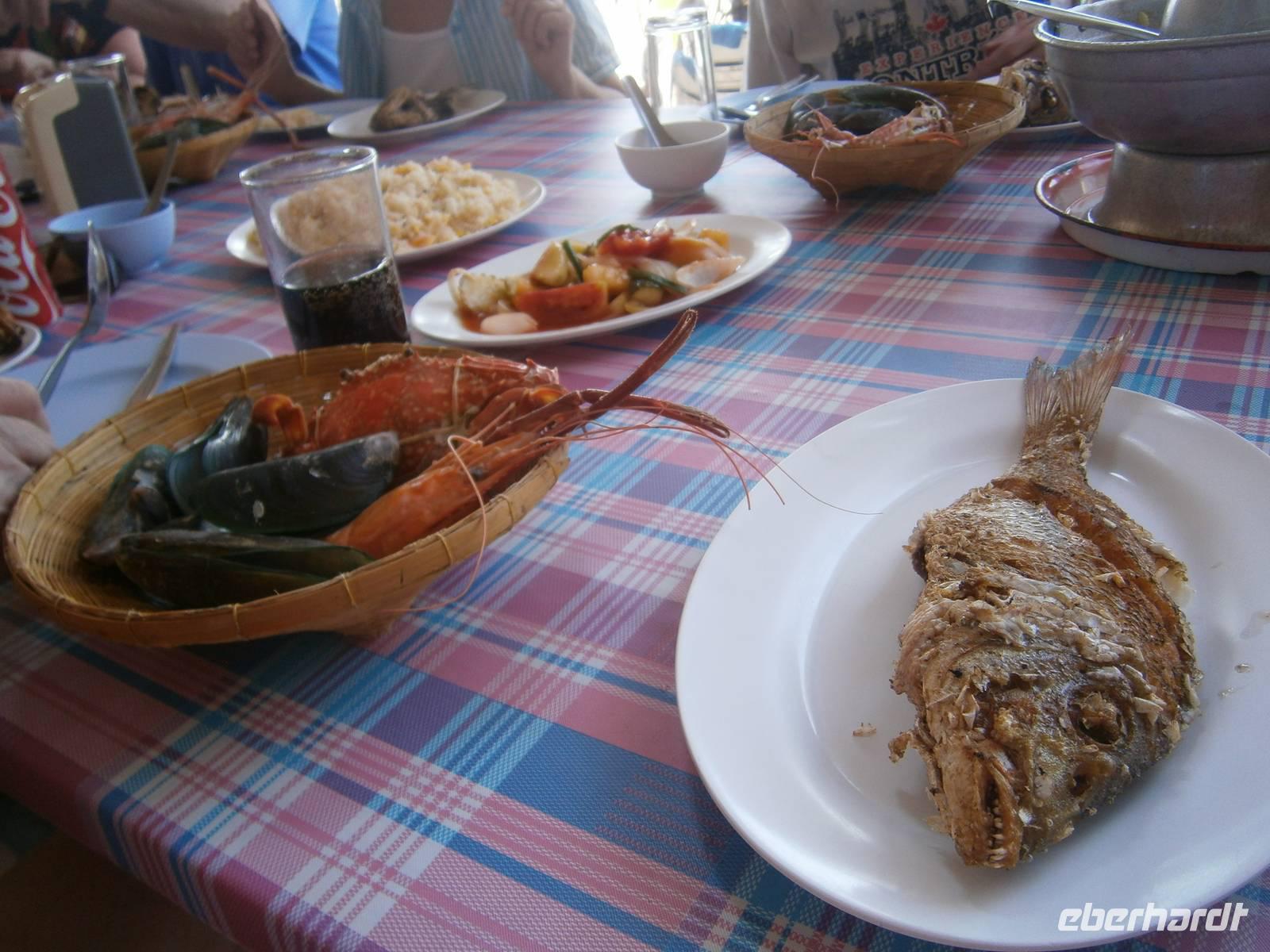 Die Mittagspause legten wir in einer der wunderschönen Hotelanlagen an den zahlreichen Sandstränden der Insel ein und bedienten uns am leckeren Buffet.