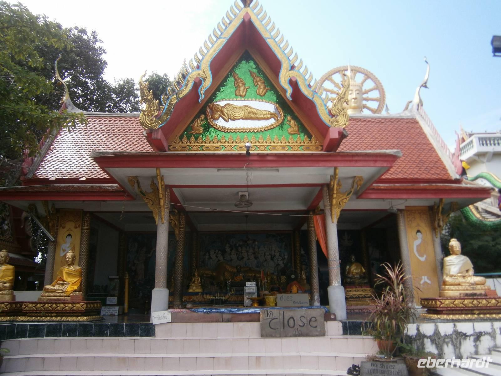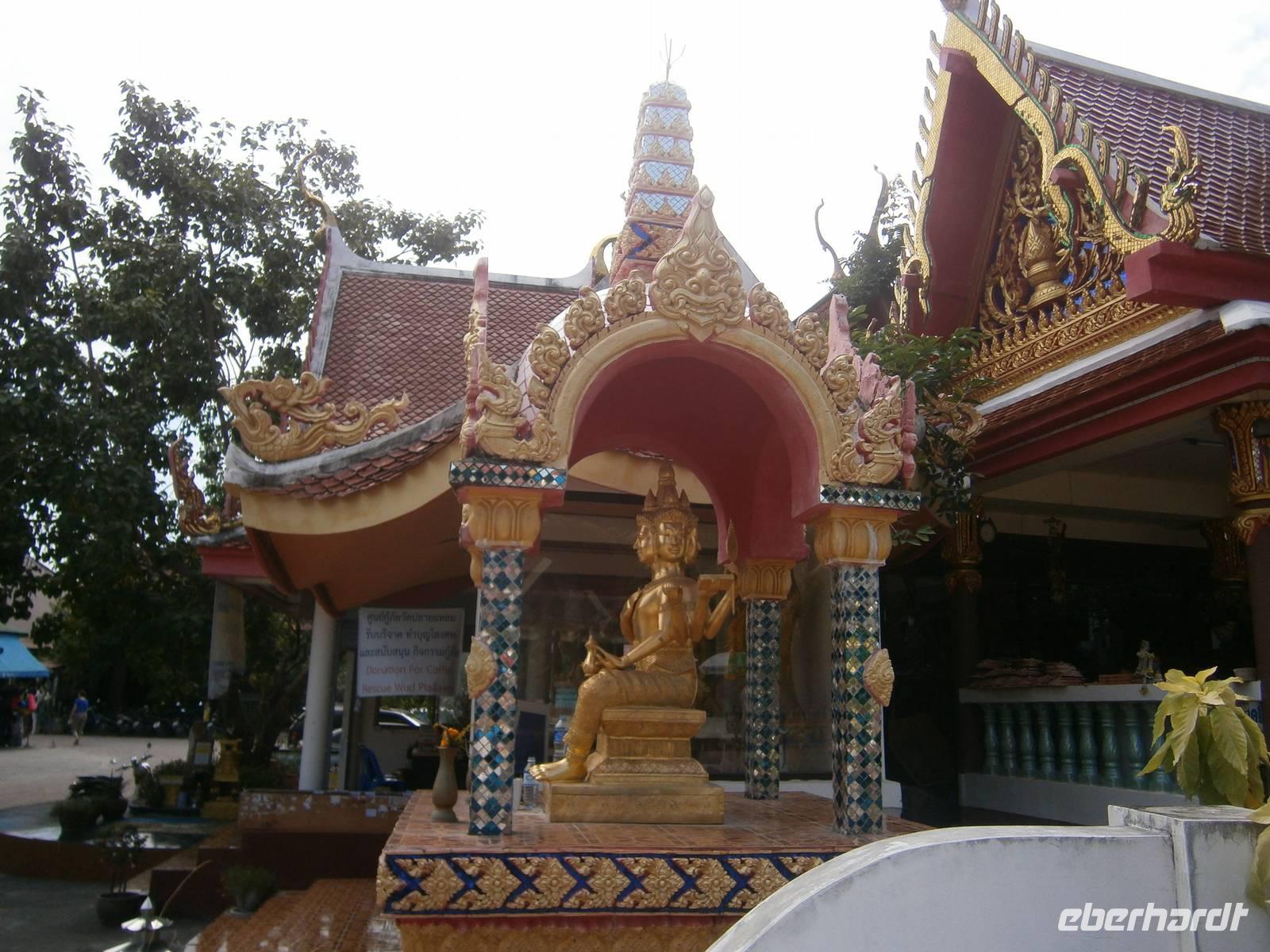 Als erstes besuchten wir den Tempel Phra Yai. Er ist die Heimat des Wahrzeichens von Koh Samui - dem Big Buddha. Die bemerkenswerte 12 Meter hohe goldene Statue trohnt majestätisch hoch oben.