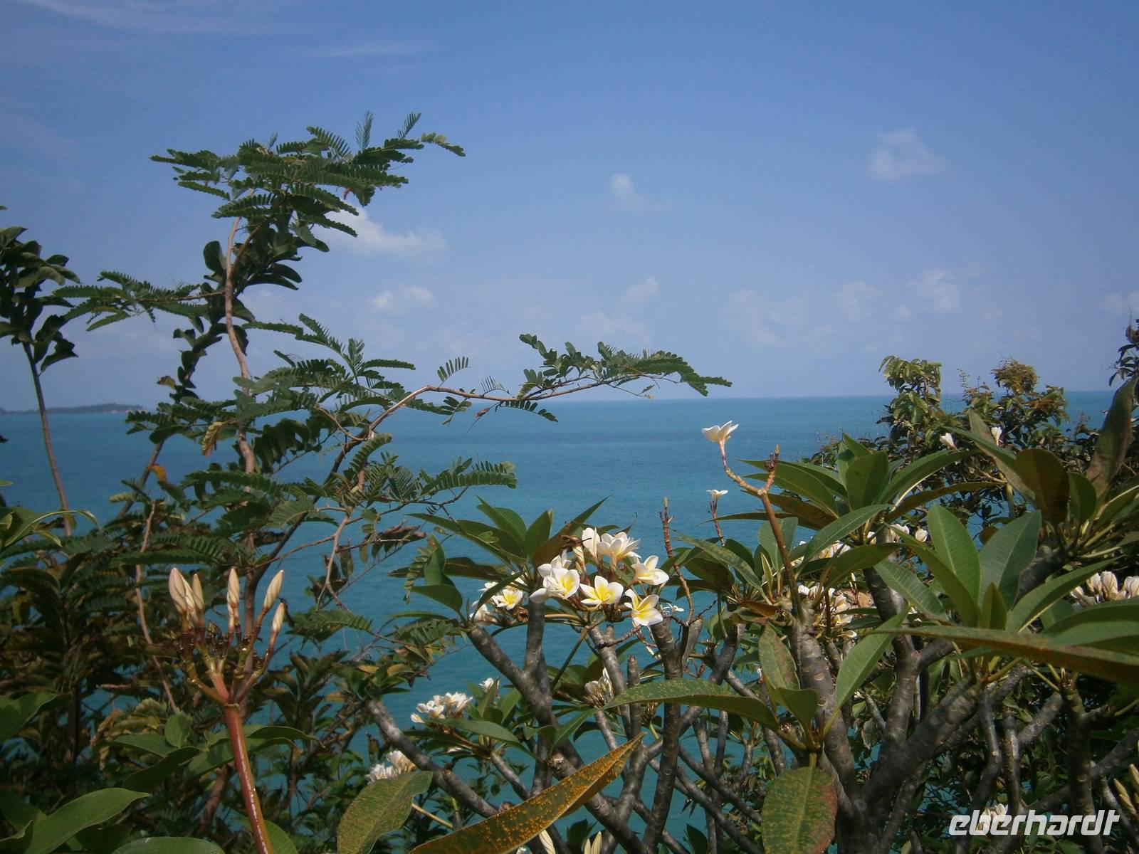 Als riesige Kokospalmenplantage, gekrönt von einem Dschungelberg, präsentierte sich Thailands drittgrößte Insel Koh Samui. Am Morgen wurde vor der Insel der Anker geworfen und das Schiff blieb dann den ganzen Tag auf Reede. Mit dem Tenderboot erreichten wir die Pier in Nathon, ein friedliches kleines Provinzstädtchen und einzige Stadt der Insel. Einen guten Eindruck von der Vielfalt der 247 Quadratkilometer großen Insel erhielten wir während unseres Ausfluges auf der rund 50 Kilometer langen Panoramastraße, die einmal rund um die Insel führt.