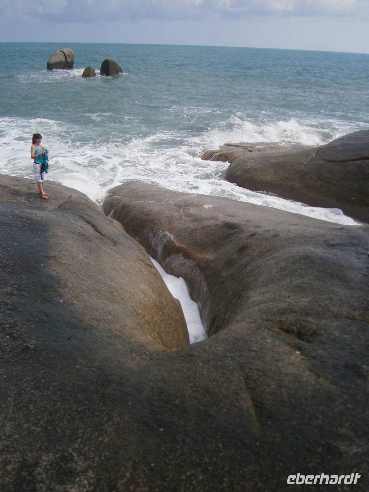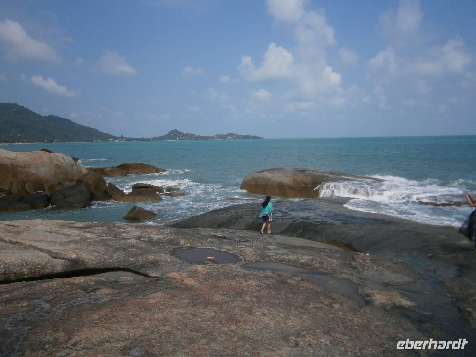 Nach einem kurzen Stopp auf einem Aussichtspunkt über dem berühmten Chaweng-Strand fuhren wir zu der Felsformationen „Hin Ta" und „Hin Yai", die im Volksmund auch „Großvater- und Großmutterfelsen" genannt werden.