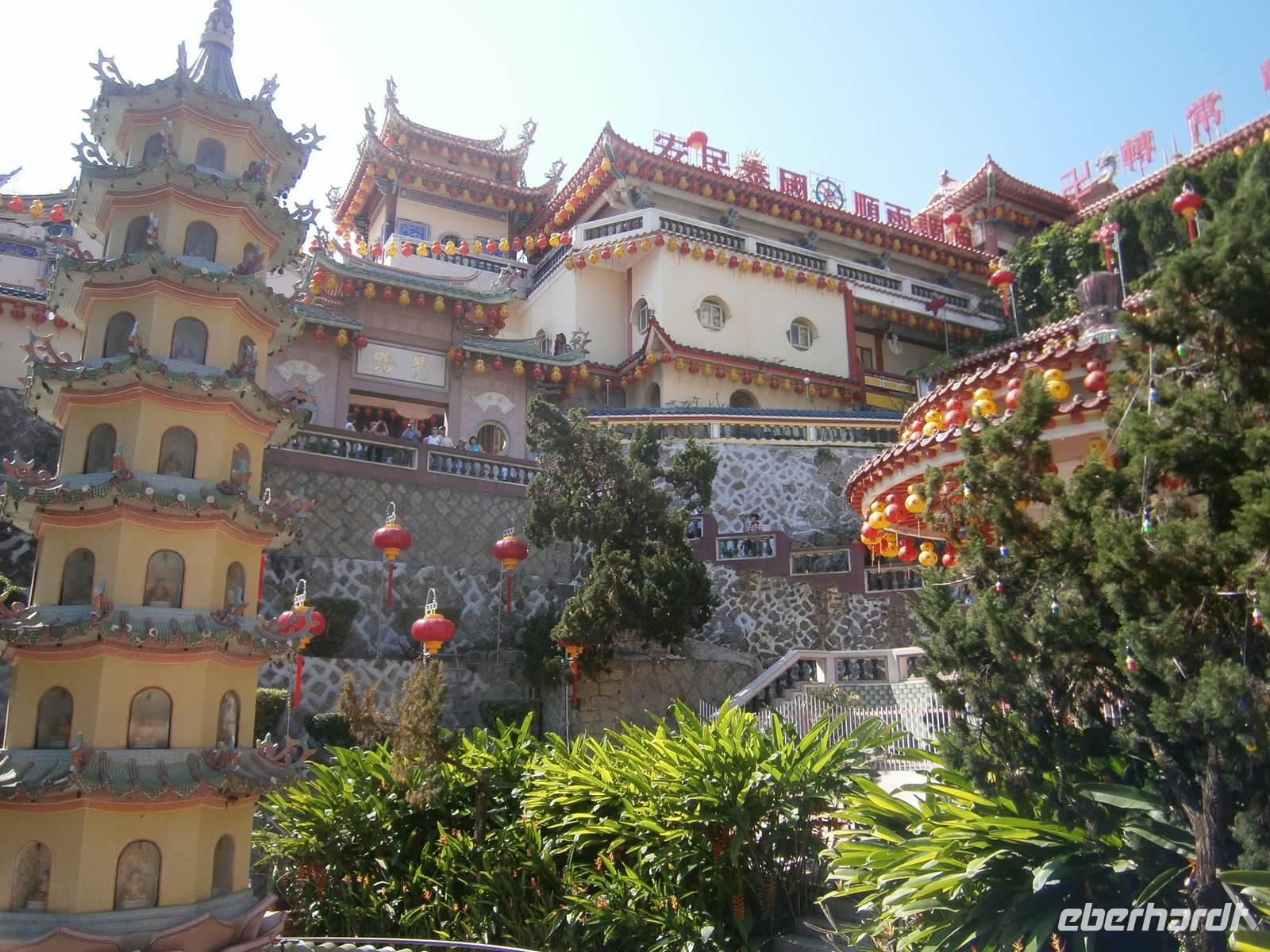 Schliesslich erreichen wir das chinesische Viertel mit dem neu gebauten Buddha Sri Mariamman-Tempel, in dem sogar zwei Fahrstühle und Klimaanlage eingebaut sind.