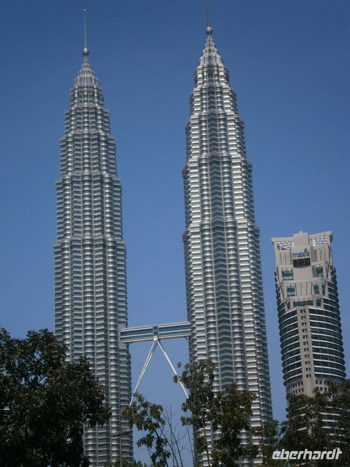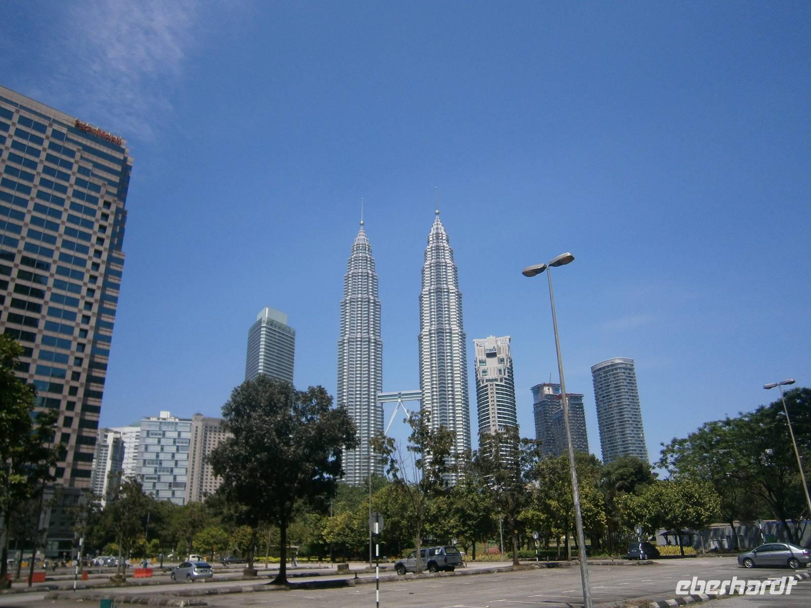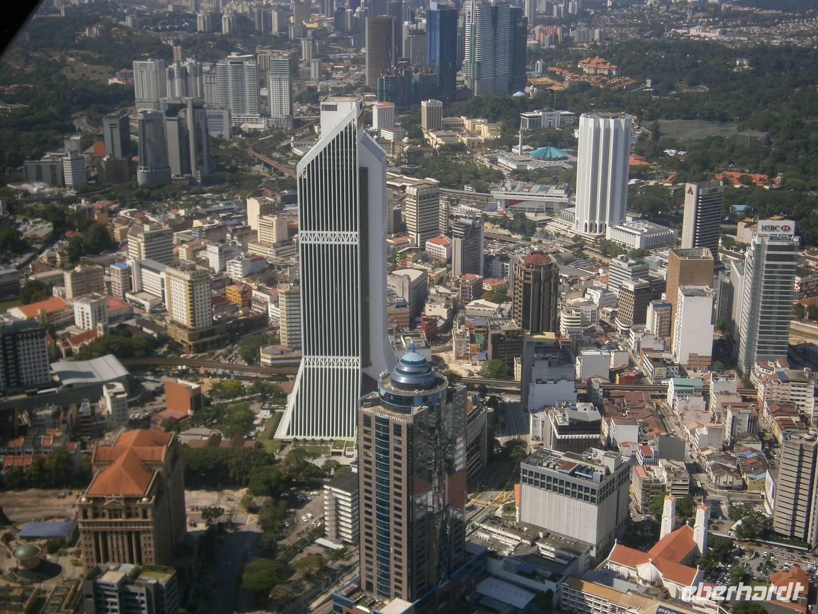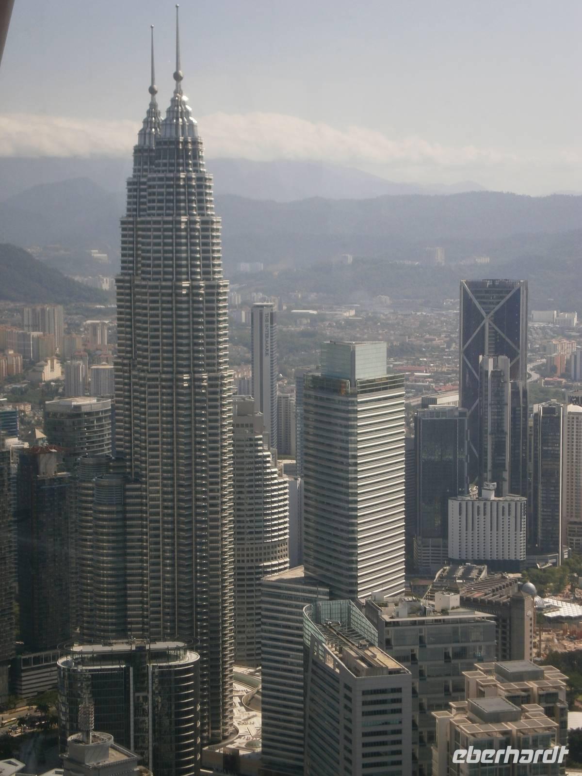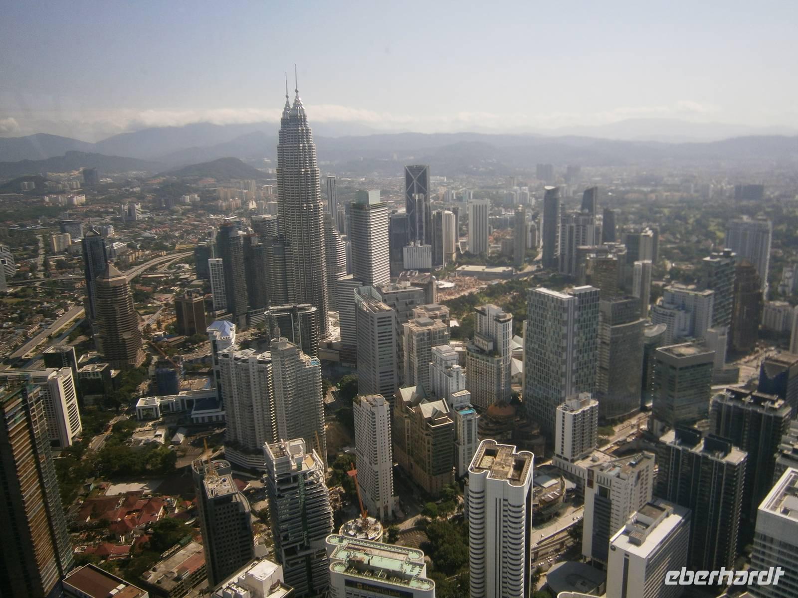 Nun fahren wir in das Stadtzentrum von Kuala Lumpur. Vom KL-Tower, dem dritthöchsten Fernsehturm der Welt, haben wir einen wunderschönen Ausblick auf die sehr grüne Stadt und die berühmten Twin Towers.