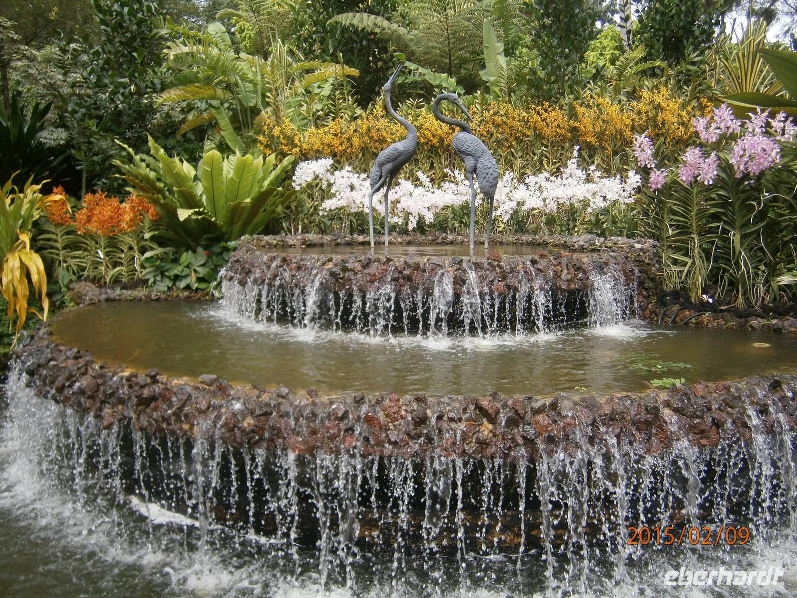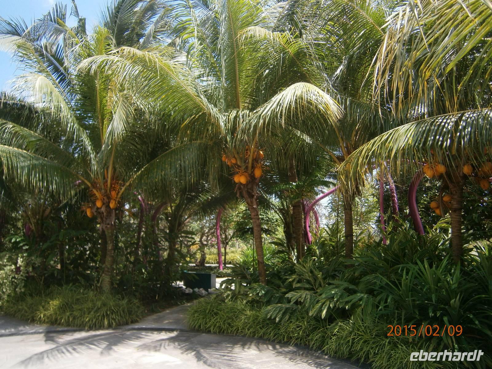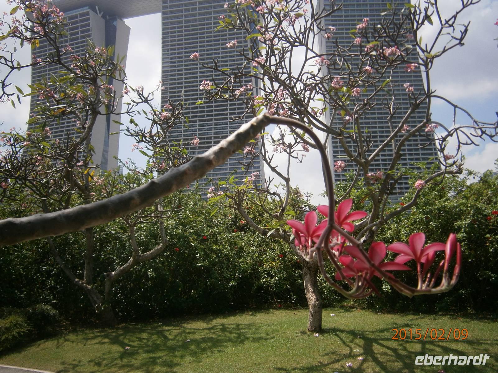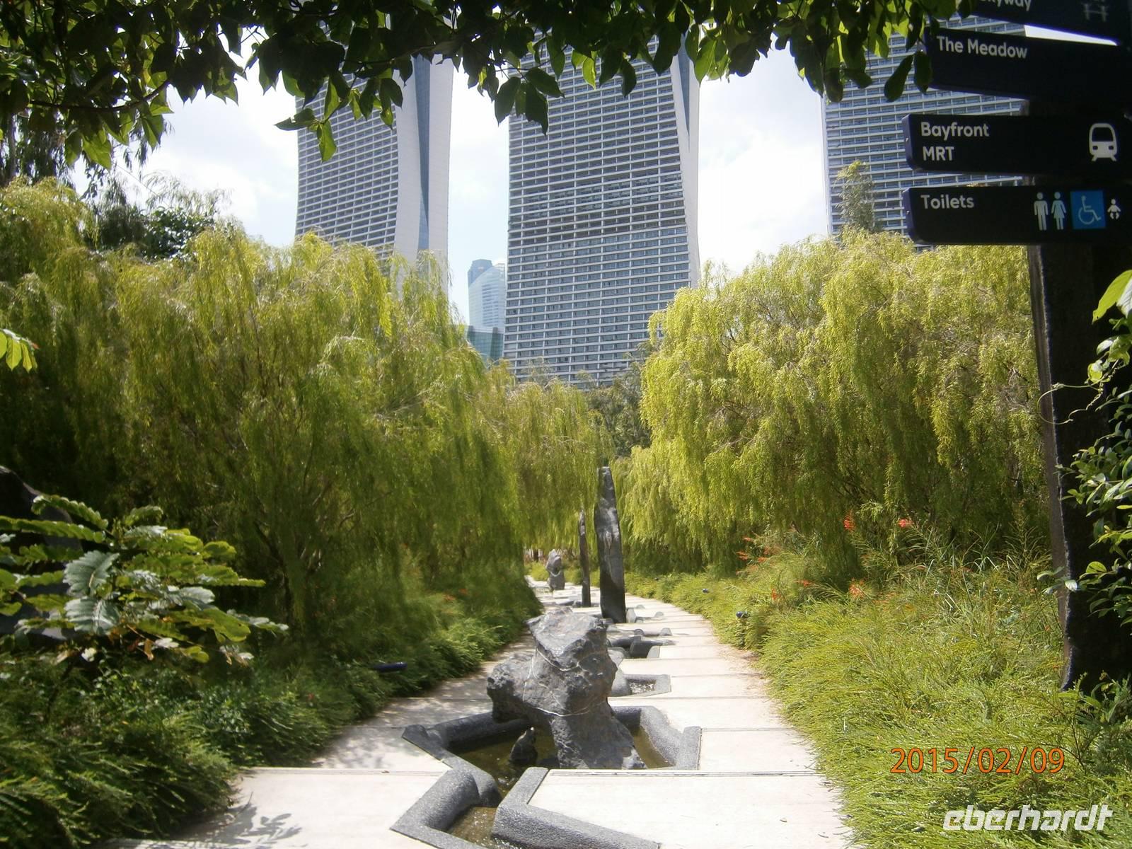 Weiter gings zu den Gardens by the Bay, einer künstlich angelegten Parkanlage mit den phänomenalen Supertrees (Mammutbäume aus riesigen Stahlgerüsten) und zwei mit Glas umhüllte Biotope (Flower Dome und Nebelwald mit dem Wasserfall), in denen jeweils die verschiedensten Gewächsen aus unterschiedlichen Klimazonen gezeigt werden.