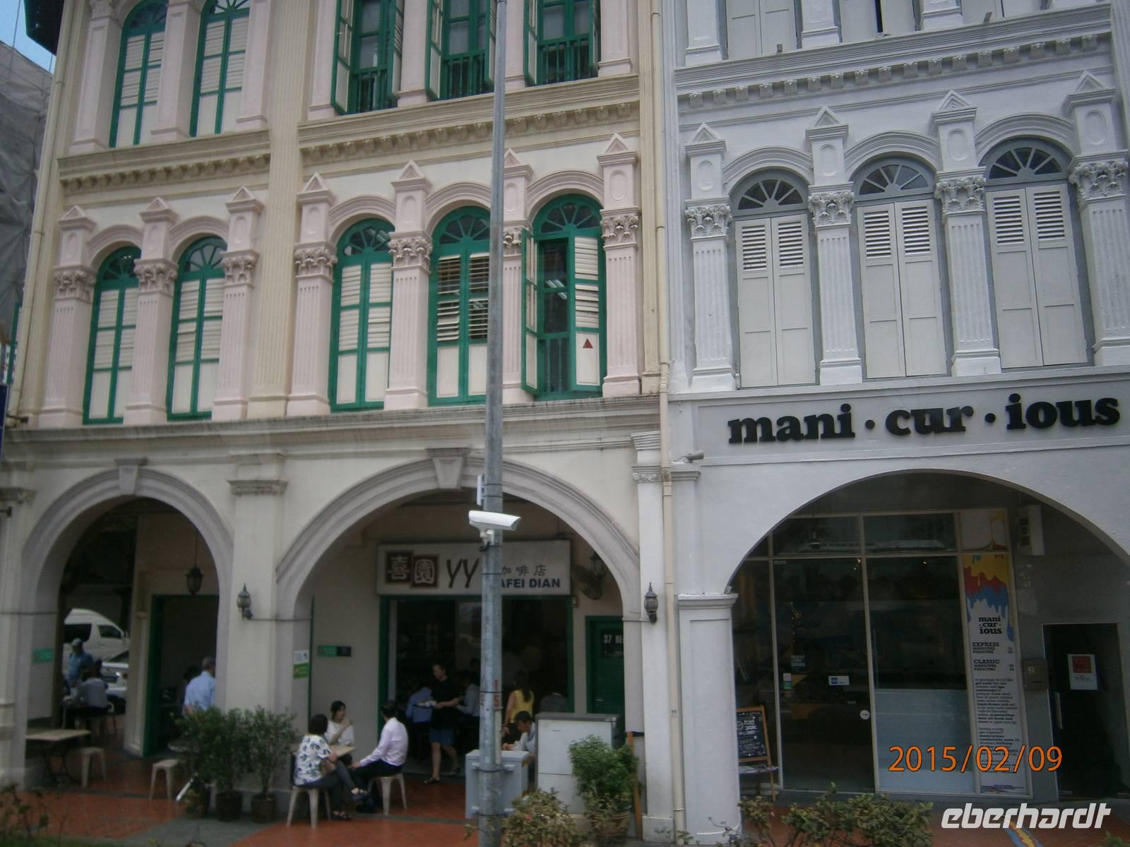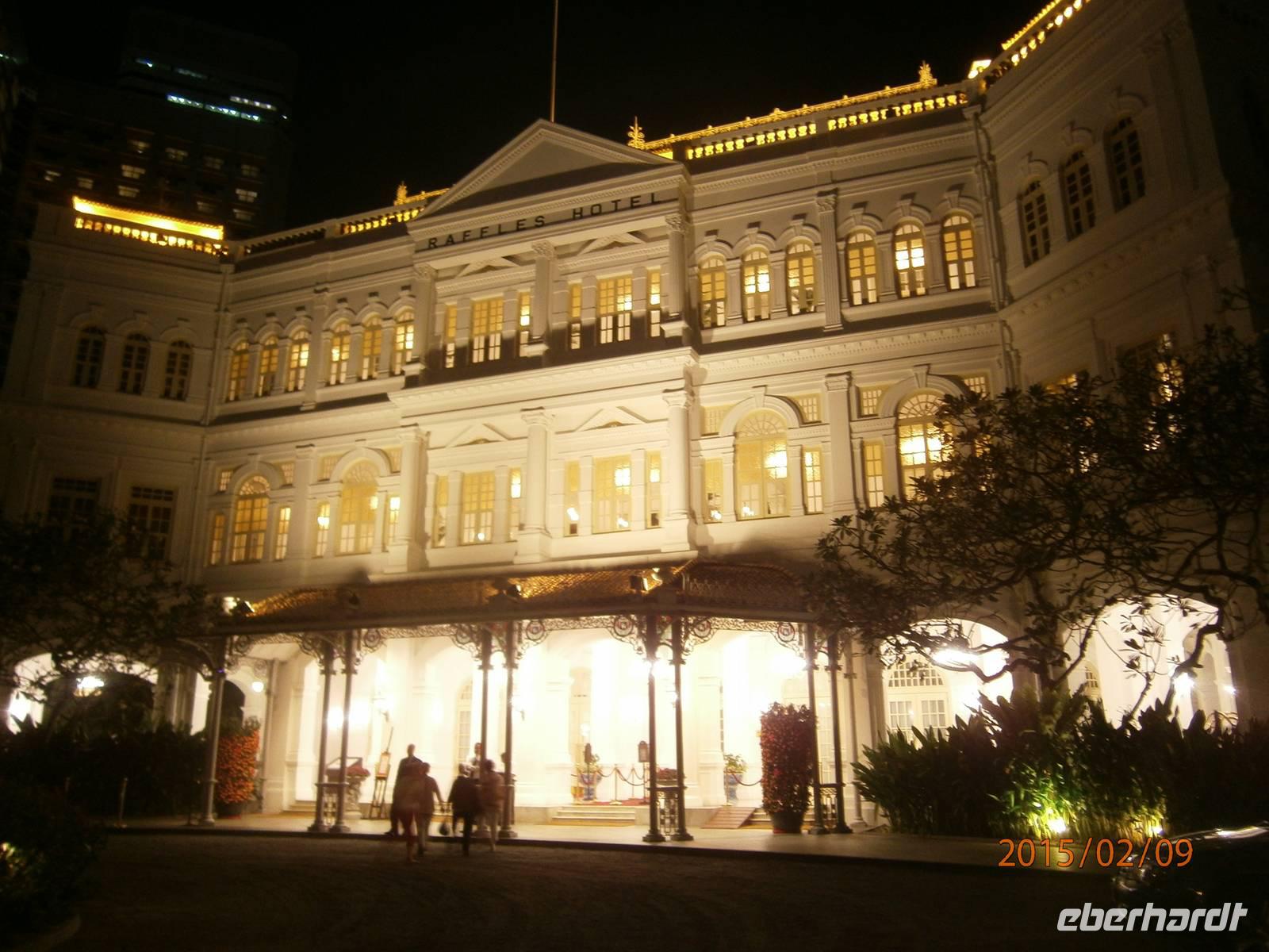 Unser Weg vom Schiff führte uns zum Nachtmarkt in Chinatown. Dem geschäftigen Treiben schauten wir ein wenig zu und fuhren dann weiter zum berühmten Raffles Hotel und machten ein kurzen Stopp vor der prächtigen, weißen Fassade des Hotels.