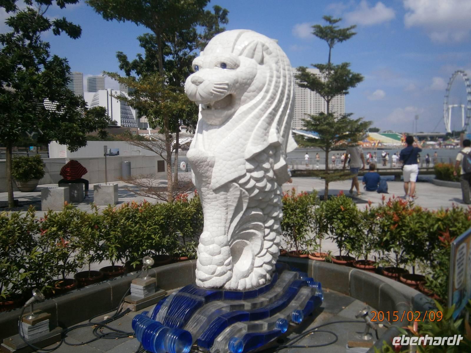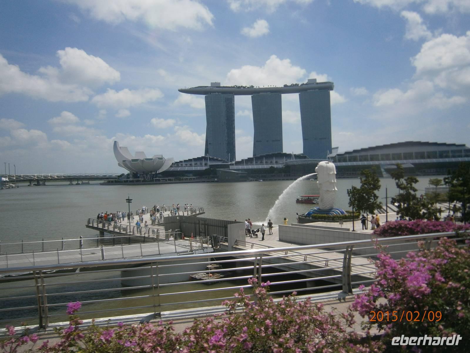 Unsere Entdeckungstour führte weiter mit einer Fahrt über Padang, den Cricket Club, dem Parlament, dem Gerichtshof und dem Rathaus. Hier haben wir einen herrlichen Blick auf Marina Bay, das Riesenrad, das Hotel Marina Bay Sands und auf den Merlion - das Wahrzeichen von Singapur.