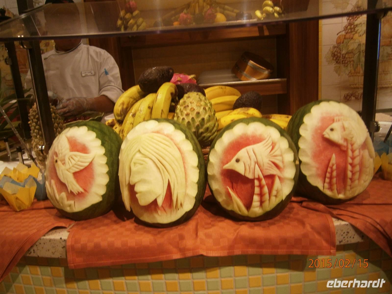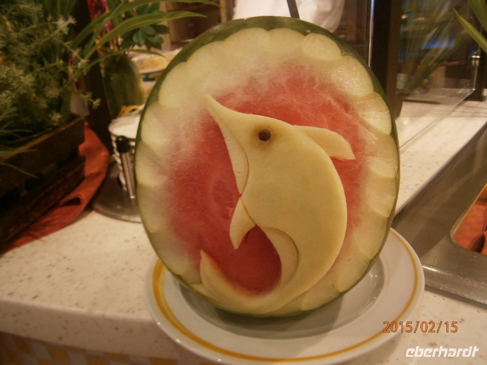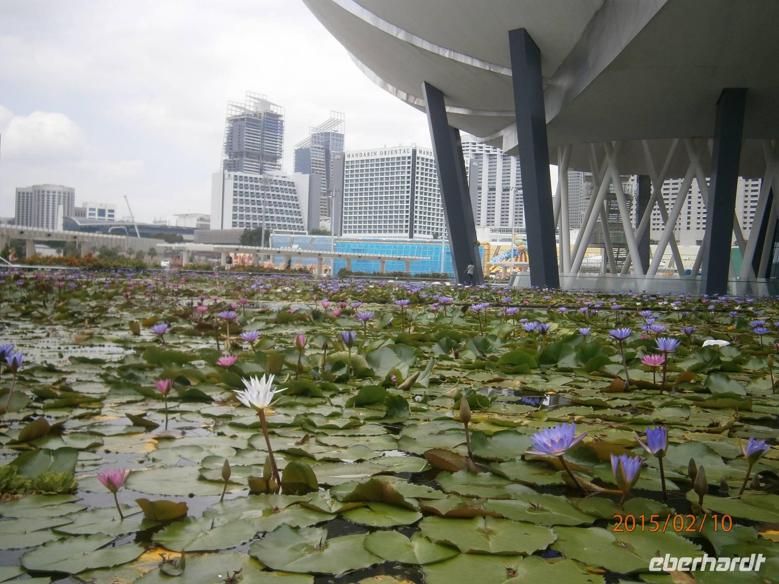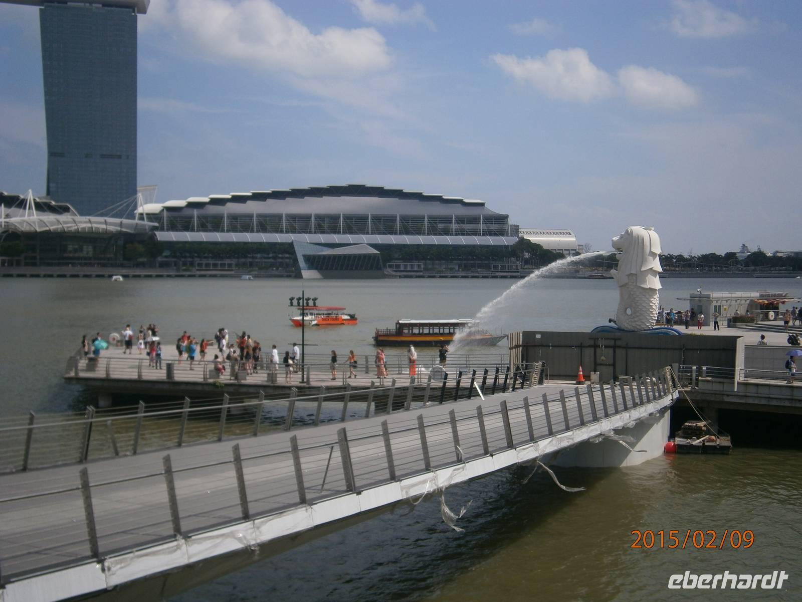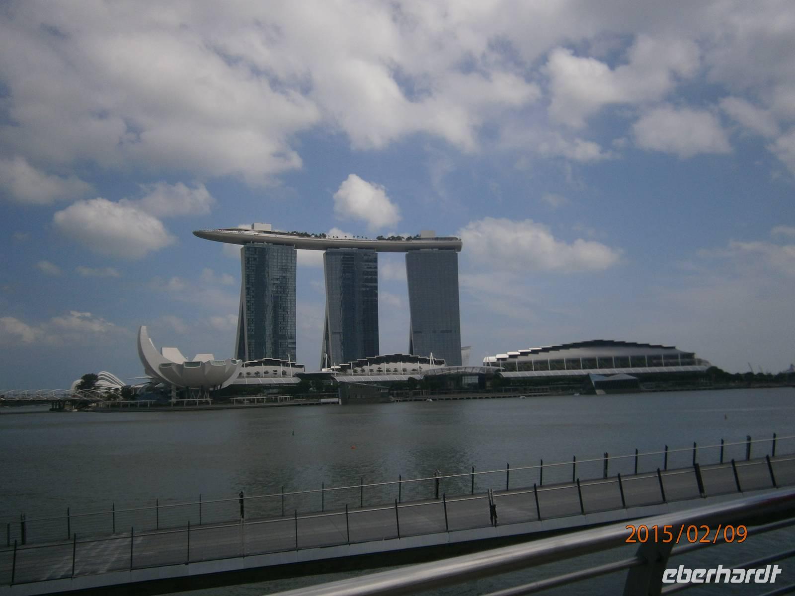 Nachdem wir den herrlichen Lotusblumenteich am ArtScience Museum angeschaut hatten, spazierten wir durch die Fußgänger-Brücke, die in Form zweier DNA-Helix-Strukturen überspannt ist, zu der Promenade entlang der Marina Bay Center, vorbei an Concert Hall in Form der Durian-Frucht zum Merlion und ließen das Flair der Großstadt auf uns wirken. Mit der U-Bahn ging es dann zurück zum Schiff. Im Einkaufszentrum haben einige ihre letzten Singapur-Dollar an den Mann gebracht. Nach dem Auslaufen, welches wir auf dem Sonnendeck verfolgten, genossen wir wieder ein schmackhaftes Abendessen und eine fantastische Show im Theater.
