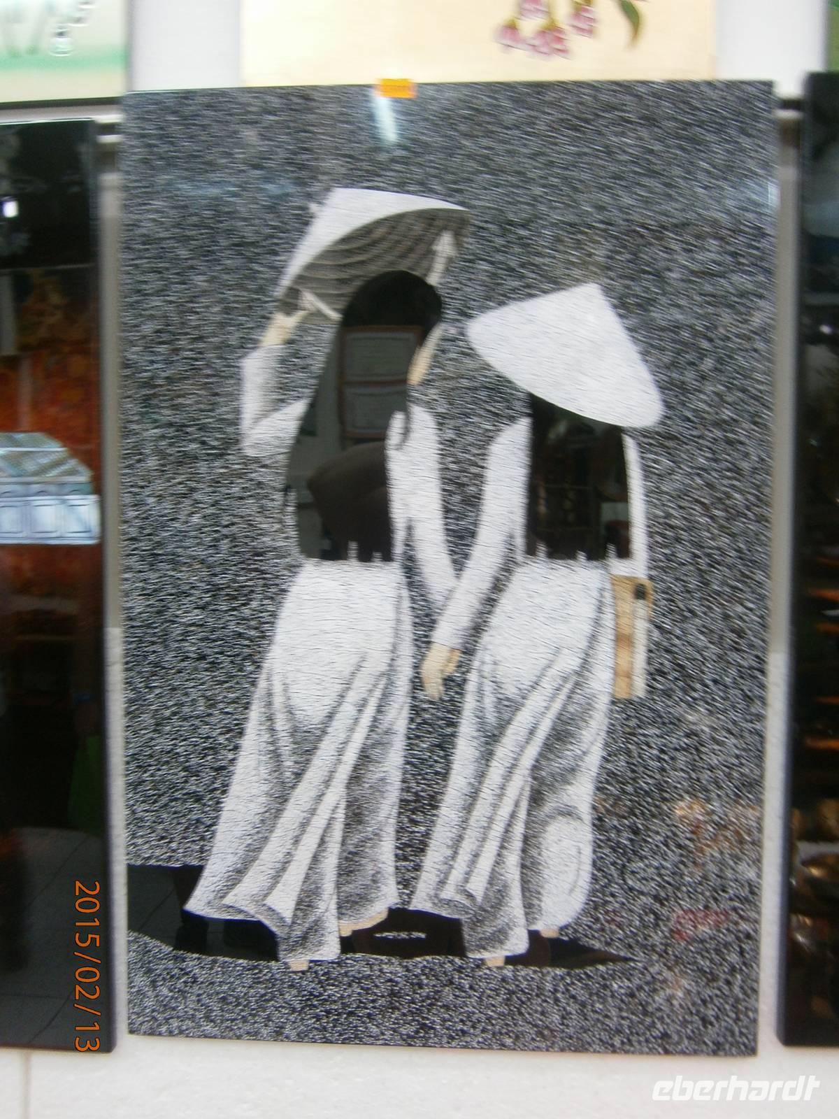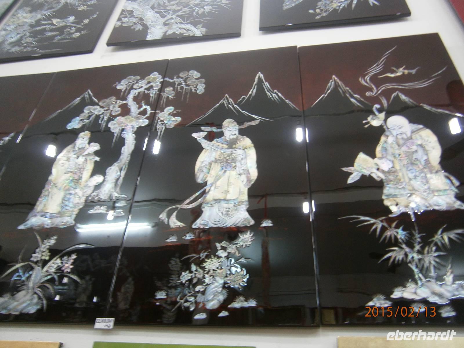 Wir hielten kurz vor Saigon in einer Lackfabrik, in der unter anderem aus Eierschalen traumhafte Bilder, Möbel und Vasen hergestellt werden.