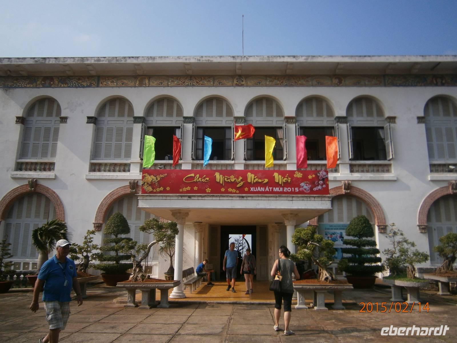 Unser Weg führte uns zunächst zum Wiedervereinigunspalast, ehemaligen Präsidentenpalast. Hier tauchten wir in die wechselvolle Geschichte des Landes ein. Der im Jahre 1966 erbaute Palast diente als Präsidentenpalast der südvietnamesischen Regierung. Er befindet sich auf dem Gelände des ehemaligen Norodom-Palastes, in dem der Diktator Ngo Dinh Diem residierte. 1962 wurde dieser, im Kolonialstil errichtete Palast durch diverse Anschläge so schwer beschädigt, dass er abgerissen werden musste. Seine Erstürmung am 30. April 1975 durch Panzer der nordvietnamesischen Streitkräfte bedeutete das Ende des Vietnamkrieges und der Teilung des Landes in Nord- und Südvietnam.