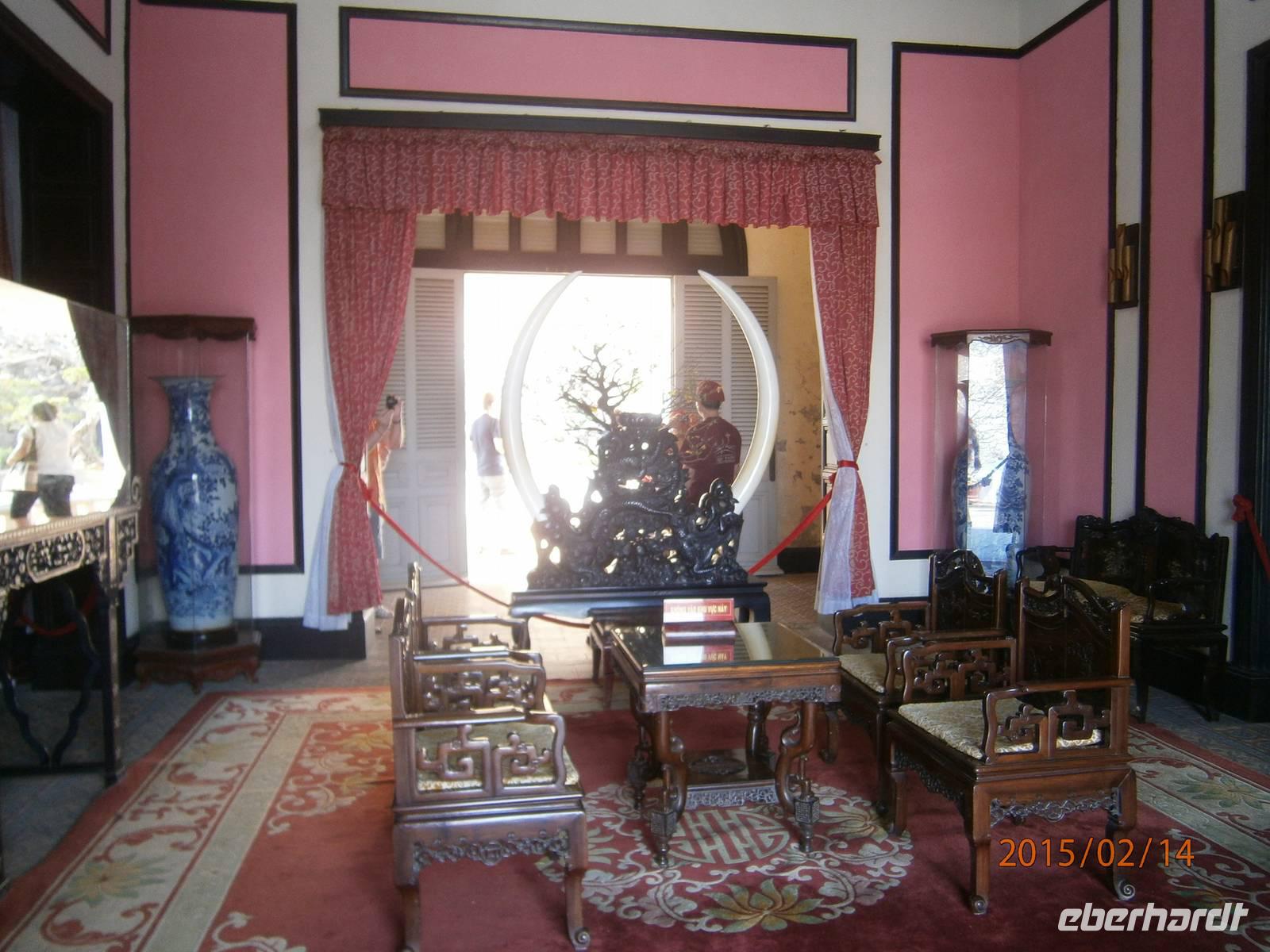 Eine atemberaubende Aussicht hatten wir von der Villa Blanche, unserer nächsten Station. Sie wurde im 19.Jahrhundert als Domizil des französischen Gouverneurs gebaut und ist heute ein beliebtes Museum. Das antike Porzellan, welches hier ausgestellt wird, wurde aus einer vor der Insel Hon Cau gesunkenen chinesischen Lorcha aus dem 17.Jahrhundert geborgen.