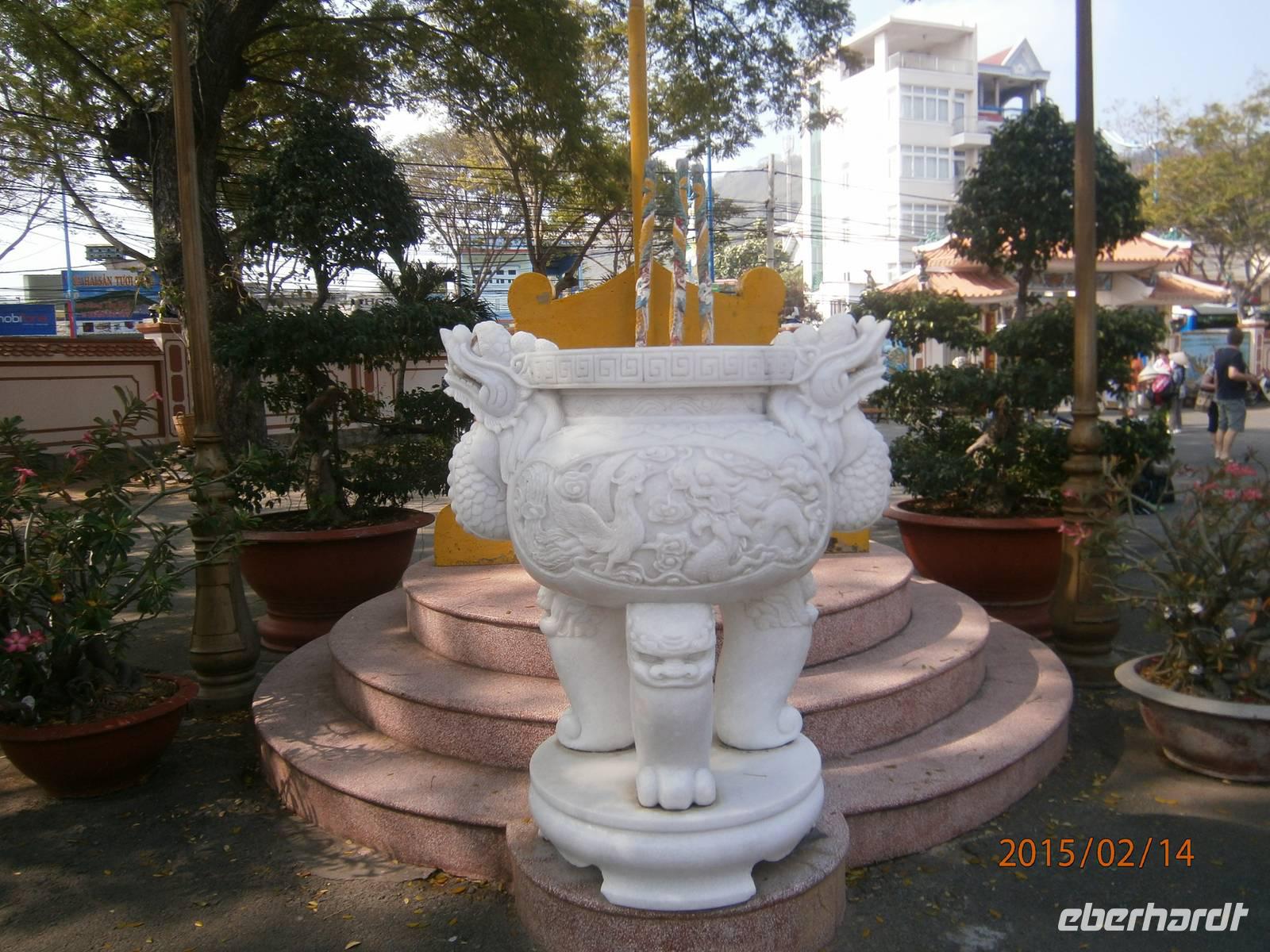 Unser Weg führte uns zunächst zur Thien-Hau-Pagode im chinesischen Viertel Cholon. Bei der Besichtigung des „Tempels der himmlischen Frau" liegt der Duft von Räucherstäbchen in der Luft.