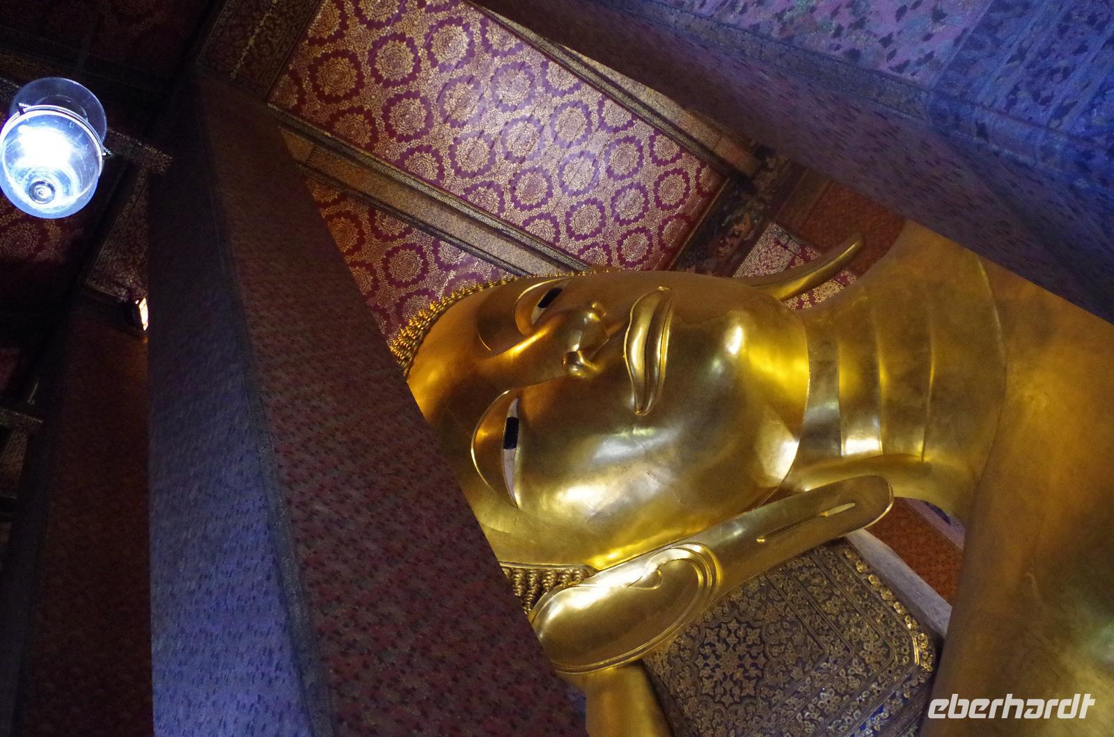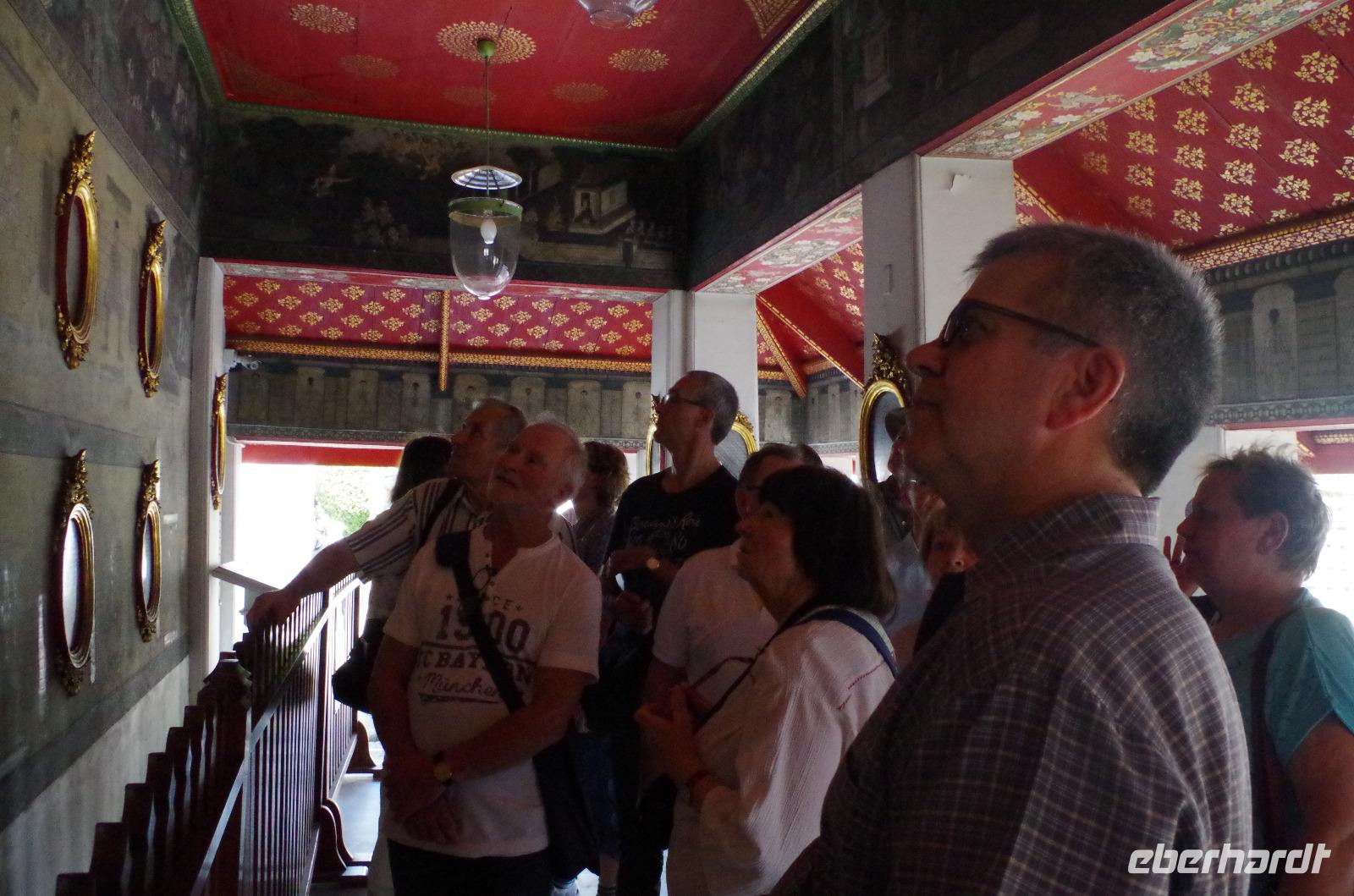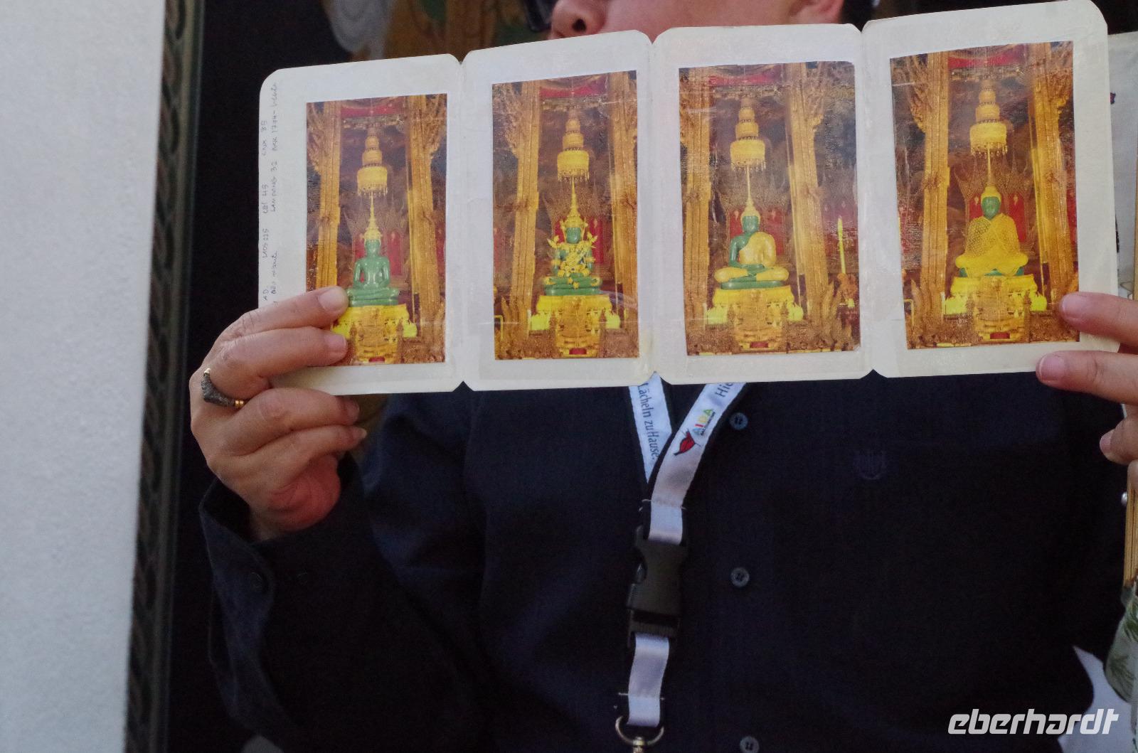 Mit strahlendem Sonnenschein bei rund 30 Grad werden wir geweckt, wie kann eine Reise schöner beginnen :-) Auch wenn wir bereits 06.00 Uhr früh geweckt werden! Nach einem sehr leckeren Frühstück packen wir die Koffer und lassen unser Gepäck im Bus verladen. Erst am späten Nachmittag fahren wir rund zwei Stunden zum Laem Chabang Commercial Port Terminal A-1, wo die AIDAbella bereits auf uns wartet. Um 08.00 Uhr starten wir mit unserer Reiseleiterin Richtung Bangkok Zentrum. Erstes Highlight des Tages ist der 1782 errichtete Königspalast "Grand Palace". Nächste Station wird der "Wat Phra Kaeo", der Tempel des Smaragd Buddha "Emerald Buddha". Das Wort "Wat" steht dabei für Tempelanlage oder Kloster. Beide Sehenswürdigkeiten sind von einer schneeweißen Mauer umgeben. Der Palast und das Gelände umfasst bis zu 218.000 Quadratmeter. Wir schauen uns zuerst die Kapellen, den goldenen einem glockenförmigen Turm ähnlichen Reliquienschrein "Phra Siratana Chedi" und die Riesen-Wächter vom Tempel von außen an. Dann laufen wir zur Bibliothek mit den heiligen Palmschriften "Phra Mondop" und weiter zu den acht Tempeltürmen "Prangs". Um den Buddhismus zu ehren, zeigen Sie jeweils ein bedeutendes Merkmal dieser Religion auf wie beispielsweise den Buddha. Anschließend besichtigen wir das königliche Pantheon "Prasart Phra Thepbidorn" der Tempelanlage "Wat Phra Kaeo". Im Inneren dürfen wir nur ohne Schuhe laufen, aber wir haben ja unsere Tempelsocken an :-) Wir bestaunen die vier Statuen, auch Chedis gekannt, ehemaliger Chakri-Dynastie-Herrscher in Lebensgröße, farblich unterschiedlich in grün, blau, gelb und orange. Zuletzt schauen wir uns den Chakri Maha Prasat von außen an. Anschließend laufen wir rund 700 Meter oder fahren mit dem Tuk Tuk zur 1688 errichteten Tempelanlage "Wat Pho", der Tempel des ruhenden Buddha "Temple of the Reclining Buddha", wo wir uns den liegenden goldenen Buddha anschauen. Es ist ziemlich schwierig bis gar unmöglich, bei den vielen Besuchern den riesigen ruhenden Buddha mit einer Länge von 46 Metern und einer Höhe von 15 Metern vollständig zu fotografieren. Unser kulturelles Vormittagsprogramm ist wirklich spannend, obwohl wir langsam auch Hunger bekommen :-) Wir laufen gemeinsam über die Chetuphon Rd, Maha Rat Rd, Soi Tha Klang und Chakphet Rd rund 1,2 Kilometer zum lokalen "River Café" beim "Yodpiman River Walk" direkt an der Lebensader Bangkoks, dem Chao Phraya River. Unser Mittagessen besteht aus typischen asiatischen Köstlichkeiten, wobei einige Gerichte doch sehr scharf sind. Nach dem Essen beginnt um 13.30 Uhr unsere Bootsfahrt durch die Thon Buri Klongs im westlichen Stadtteil. Wir fahren am "Wat Arun" vorbei, dem Tempel der Morgenröte "Temple of Dawn". Momentan ist dieser Tempel mit seiner 79 Meter hohen sehr bekannten zentralen, die Weltachse symbolisierenden Pagode "Phra Prang" aufgrund von Bauarbeiten von einem Stahlgerüst eingehüllt. Die Fahrt durch die Klongs, die alten Kanäle, ist sehr beeindruckend, obwohl wir uns nicht so richtig vorstellen können, wie die Menschen hier leben können. Wir fahren unter anderem auf dem Bangkok Yai am Naowa Chamnian Pier und dem Wat Kanlayanimit 1 Pier vorbei, dann haben wir eine kurze Wartezeit an den Schleusen, um zurück auf den Chao Phraya River zu gelangen. Auf dem Chao Phraya River kommen wir an der Phra Phutthayotfa Bridge (Memorial Bridge) und der Phra Pokklao Bridge. Wir steigen am Pier 1 River City aus und wieder in den Bus ein. Dann startet auch schon unsere rund zweistündige Busfahrt bis zum "Laem Chabang Commercial Port Terminal A-1". Die Hafenstadt Laem Chabang mit rund 68.000 Einwohnern befindet sich zwischen Bangkok und dem Badeort Pattaya. Während der Fahrt erhalten wir weitere spannende Informationen über Thailand. Weltberühmt sind in Bangkok die "Schwimmenden Märkte". Für einen Besuch ist unsere Zeit allerdings nicht ausreichend, da diese Märkte heute nur noch weit außerhalb der thailändischen Hauptstadt zu finden sind. Während unserer Fahrt sehen wir wieder die interessante thailändische Stromverkabelung und eine Vielzahl an bunten Mopeds. Die Strafe für Fahren ohne Helm liegt bei 500 Bath. Weiter erfahren wir von Sini, dass die Thais keine Tempelsteuer bezahlen müssen. Dafür spenden sie aber Opfergaben, was die Buddhisten auch gern tun, um ein gutes Leben zu führen. Größere Spenden für die Tempelanlagen erfolgen dreimal im Jahr, einmal zum Neujahrsfest, dann zum Tempelfest und schließlich nach der dreimonatigen Fastenzeit. Des Weiteren ist in Thailand besonders die Meditation, die klassische Thai Massage und auch die Kampfsportart "Muai Thai", besser bekannt als Thai Boxen, sehr beliebt. Bei diesem Sport kommen neben den Fäusten auch die Füße, Arme und Knie zum Einsatz. Unsere Sini kann uns noch viel mehr erzählen, aber schon sind wir im Hafen angekommen. Wir verabschieden uns von ihr, aber keine Sorge, morgen sehen wir sie schon wieder und erfahren mehr spannende Details zum Leben in Thailand :-) Unsere Koffer bleiben im Bus und werden direkt vom Busfahrer an die AIDA-Crew übergeben. Wir nehmen unser Handgepäck, werden mit einem Willkommensdrink von AIDA begrüßt und checken ein. Wichtig ist, wir müssen unsere AIDA-Unterlagen vorzeigen sowie das ausgefüllte Gesundheitsformular und unseren Reisepass abgeben. Die Hinterlegung sowohl von EC-Karte oder Kreditkarte als auch Bargeld ist bei der Einschiffung noch nicht notwendig, dies kann jederzeit an Bord erledigt werden. Anschließend finden die Kontrolle von Handgepäck und Sicherheit statt. Die Gäste haben alle ein Premium-Paket bei AIDA erhalten, welches 250 MB WLAN und zwei Ein-Liter-Flaschen Wasser je Kabine beinhaltet. Zudem wird uns ein Willkommensfoto und eine AIDA-Traumwelten-DVD geschenkt. Um ein Foto auf einer altertümlichen Karte mit den einzelnen Stationen unserer Kreuzfahrt zu erhalten, heißt es jetzt "Bitte schön lächeln!" :-) Gegen 18.00 Uhr sind wir dann alle an Bord! Der Kapitän