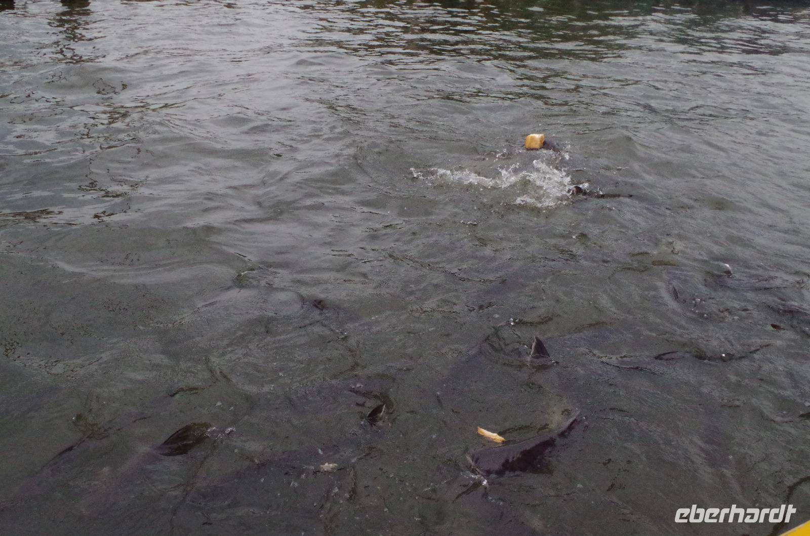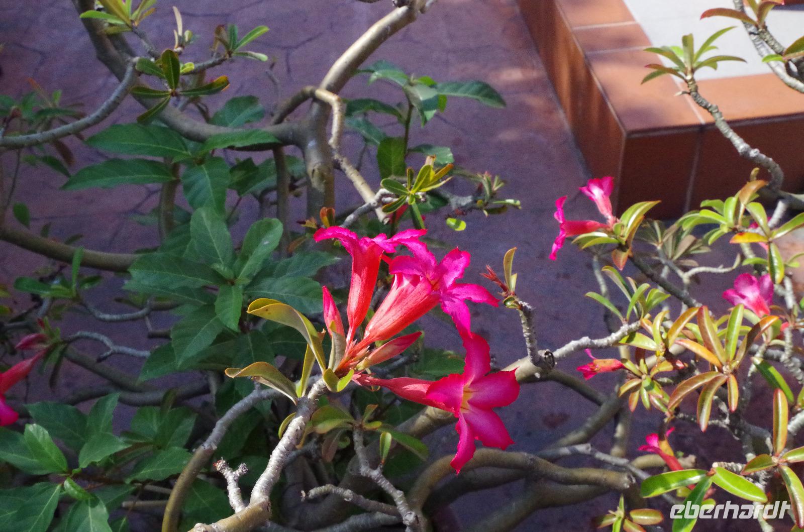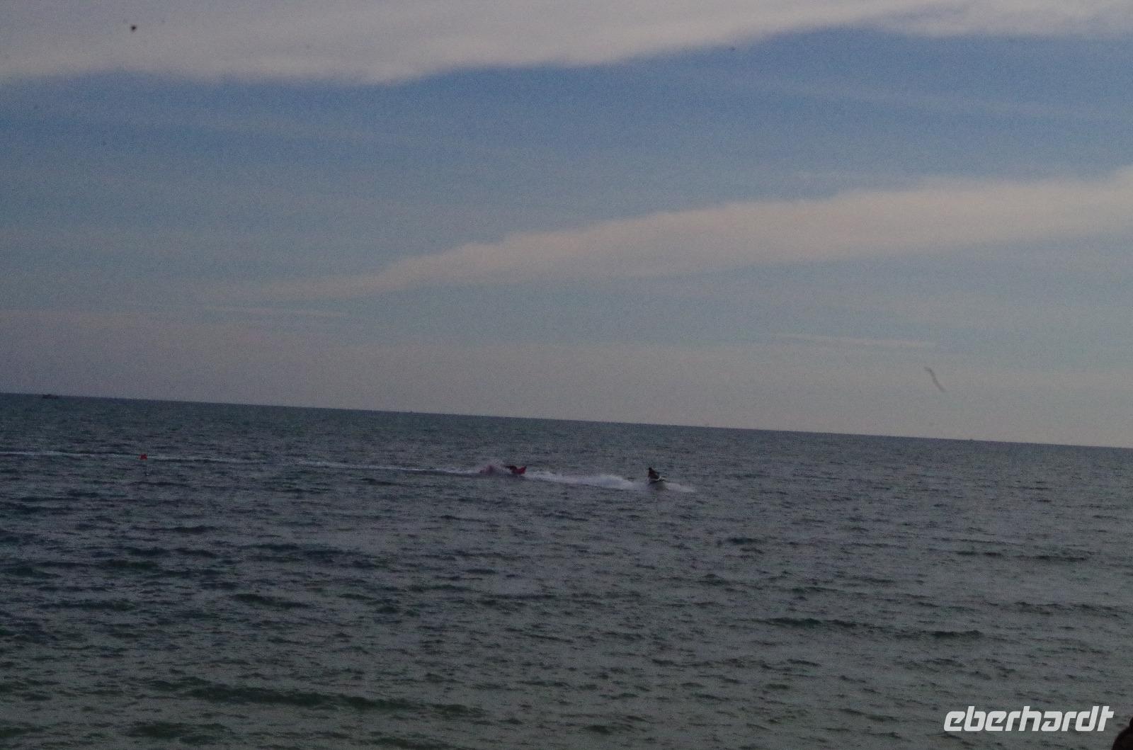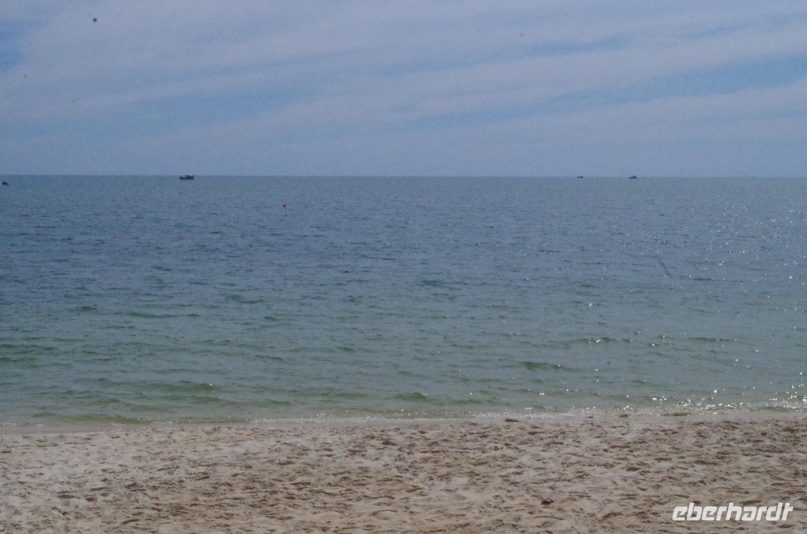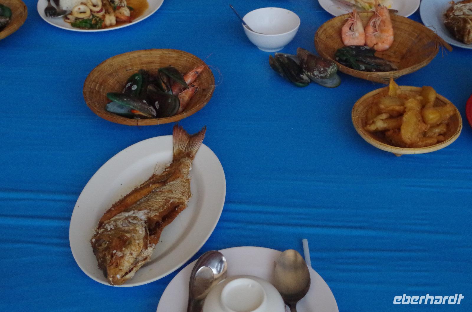 Unsere erste Nacht auf dem Schiff haben wir ganz gut überstanden, aber wir sind ja auch noch nicht gestartet *grins* Wer möchte kann heute gern schon um 04.30 Uhr im "Markt Restaurant" frühstücken. Da unsere Kreuzfahrt erst am Abend beginnt, genießen wir einen weiteren Eberhardt-Exklusiv-Ausflug zusammen mit unserer Reiseleiterin Sini. Wir treffen uns auf Deck 3 an der "Pier 3 Bar" um 07.50 Uhr. Es ist herrlich warm und sonnig bei 33 Grad. Für den Landgang ist die Mitnahme der Bordkarte ausreichend, der Reisepass wird nur benötigt, wenn wir zum Beispiel den Königspalast besuchen würden. Zuerst fahren wir nach Pattaya, einem ehemaligen Fischerdorf und dem ersten Badeort in Bangkok. Während der Fahrt berichtet uns Sini von der thailändischen Schuluniform. Die Kinder müssen an 3 von 5 Schultagen eine Schuluniform, an einem Tag Sportkleidung und am anderen Tag eine Pfadfinderuniform tragen, dunkelgrün für die Mädchen und Khaki für die Jungen. Des Weiteren erfahren wir, dass das thailändische Alphabet aus 44 Konsonanten und 32 Vokalen besteht. Die Grammatik ist aber wesentlich einfacher als bei uns ;-) Der Vorname ist bedeutsamer als der Nachname in Thailand und kann in vier Gruppen eingeteilt werden. Die erste Gruppe ist der Königsname, darauf folgt die Gruppe der Adligen oder königlichen Blutes. Die dritte Gruppe umfasst die Mönche, welche einen neuen "gesegneten" Namen erhalten, sobald sie sich dafür entscheiden und zur vierten Gruppe gehören die Vornamen der restlichen Bevölkerung. Von großer Bedeutung ist der Wochentag in Thailand, besonders unter anderem bei der Heirat, beim Hauskauf oder Autokauf. Folglich ist der Wochentag auch für die Namensgebung wichtig. Wenn das Kind zum Beispiel an einem Mittwoch geboren ist, dann soll der Vorname mit einem s, o oder i beginnen und die Buchstaben r, y und f möglichst nicht beinhalten. Der Vorname soll möglichst eine positive Bedeutung haben. Interessant ist dabei sicherlich, dass die Beantragung des Vornamens unter Umständen ein aufwändiger Prozess sein kann, denn die Beamten können durchaus die Eltern wieder nach Hause schicken, wenn ihnen der Vorname nicht positiv genug ist :-) In Thailand werden die Vornamen für offizielle Anlässe verwendet, ansonsten sprechen sie sich untereinander mit Spitznamen an. Die Spitznamen sollen ebenso harmonisch klingen, zum Beispiel werden sie nach Obstsorten, Sportarten, Automarken, Farben oder Tieren benannt. Auf dem Land haben die Familien oftmals viele Kinder. Damit es für die Mutter leichter ist, werden die Kinder einfach durchnummeriert oder auch mit Größeneinheiten wie groß, mittel und so weiter bedacht :-) Die thailändische Namensgebung bringt uns doch ein wenig zum Lächeln, da sie auch sehr ungewöhnlich für uns ist! Von Pattaya fahren wir gegen 09.15 Uhr mit einem Schnellboot von Coral Island Tour rund 30 Minuten zur rund neun Kilometer entfernten Insel Koh Larn. Diese Insel umfasst eine Fläche von rund 5,6 Quadratkilometern. Die Hinfahrt ist wirklich sehr stürmisch, aber die Rückfahrt soll noch wilder werden :-) Wer Rückenprobleme hat, empfiehlt sich ein Sitzplatz im hinteren Bereich. Der heutige Ausflug steht vollkommend im Sinne von Entspannung und Erholung. Auf der Insel ist für jeden Gast eine Sonnenliege reserviert. Die Badehandtücher haben wir von AIDA für eine Kaution von 20 EUR pro Handtuch ausgeliehen. Kaum sind wir angekommen, gönnen wir uns auch schon eine wohl eher "warme Abkühlung" im Golf von Thailand oder gleich ein ruhiges Sonnenbad. Gegen 12.00 Uhr werden wir mit einem leckeren Barbecue, unter anderem bestehend aus Fisch, Garnelen, Salat, Reis und einer leckeren Gemüsesuppe, versorgt. Danach suchen wir uns einen schattigen Platz und entspannen weiter bis zu unserer Rückfahrt nach Pattaya um 14.30 Uhr. Als wir vollkommend erholt in das Schnellboot steigen, ahnen wir noch nicht, wie wild unsere Rückfahrt werden soll! Wir haben das Gefühl, dass wir nun viel schneller fahren, obwohl das wahrscheinlich gar nicht der Fall ist. Das Wasser spritzt von allen Seiten, selbst unser Badehandtuch bietet keinen Schutz mehr. Eine halbe Stunde später haben wir den Hafen erreicht, der ein oder andere Reisegast ist sicher froh, diese stürmische Fahrt überstanden zu haben. Anschließend fahren wir zum Hafen "Laem Chabang Commercial Port Terminal A-1" zurück, welchen wir gegen 16.00 Uhr erreichen. Einen Pflichttermin haben wir heute noch vor uns: Die Seenotrettungsübung um 18.00 Uhr! Wir müssen uns mit der Rettungsweste aus unserer Kabine auf der Musterstation einfinden, welche durch verschiedene Buchstaben eingeteilt ist. Der Buchstabe der jeweiligen Musterstation ist sowohl auf unserer Rettungsweste als auch auf unserer Bordkarte abgebildet. Im Anschluss trifft sich der Großteil der Gäste im "Weite Welt Restaurant" auf Deck 10 an den von Luise für uns reservierten runden Tischen. Das Essen und die verschiedene Auswahl sind vorzüglich, besonders der Nachtisch und das Eis sind sehr lecker. Dazu gibt es Bier, Softdrinks oder auch Weiß- und Rotwein. Pünktlich um 19.00 Uhr startet unsere Kreuzfahrt, die erste Etappe von Bangkok/Laem Chabang nach Koh Samui beträgt rund 228 Seemeilen bzw. 442 Kilometer. Um 21.50 Uhr begeben wir uns auf das Pooldeck 11 bis 12, um gemeinsam mit Welcome-Sekt anzustoßen. Danach findet die Begrüßung durch den General Manager Kai Botschek und Entertainment Manager Martin Bechtel sowie die Welcome-Show "One Night in Bangkok & Poolparty mit DJ Maik" auf dem Pooldeck 11 statt. Diese schauen wir uns natürlich auch an und lassen einen schönen Strandtag gemeinsam ausklingen :-)