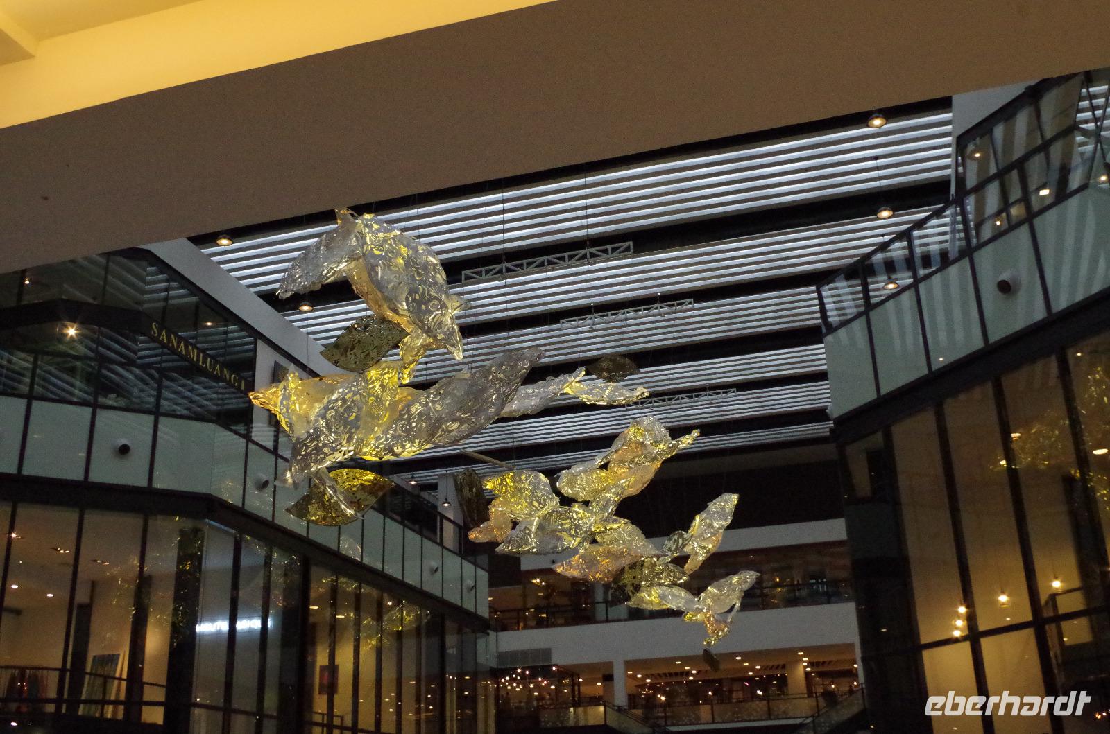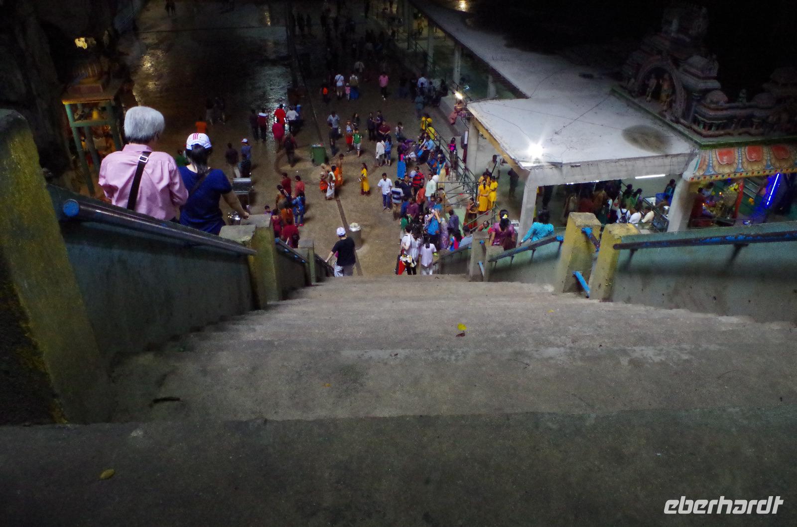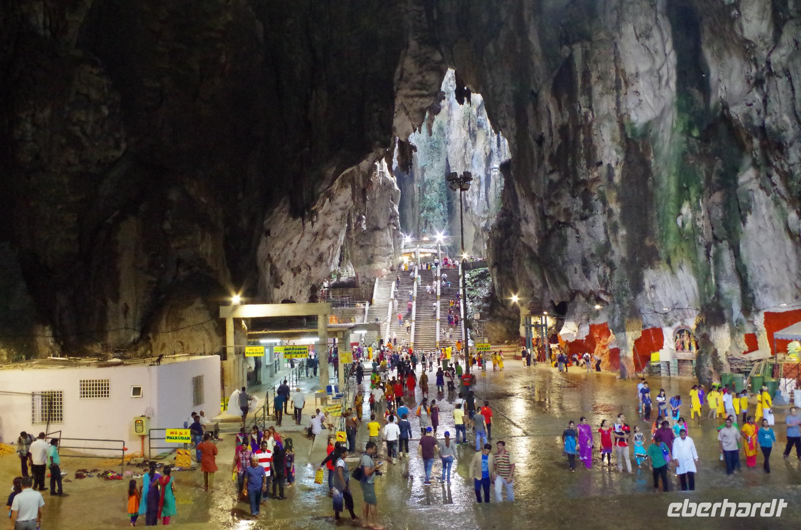 Ein neuer Tag beginnt, ein neues Abenteuer wartet auf uns :-) Wir gönnen uns ab 07.30 Uhr ein leckeres Frühstück im "Markt Restaurant". Bei wechselhaften Wetter und rund 30 Grad erreichen wir um 09.00 Uhr das Boustead Cruise Centre #C01 von Kuala Lumpur/Port Klang in Malaysia. Erst am Abend um 19.00 Uhr werden wir die rund 834 Seemeilen bzw. 1.544 Kilometer bis Ho-Chi-Minh-Stadt/Phu My antreten. Port Klang an der Küste der 3,7 Millionen-Einwohner-Stadt Selangor ist der größte Überseehafen der Halbinsel Malaysia. Kuala Lumpur befindet sich an der Westküste nur circa 70 Kilometer der Straße von Malakka entfernt, welche eine Meeresenge zwischen Malaysia und Sumatra ist. Übersetzt bedeutet "KL", liebevoller Spitzname für Kuala Lumpur, "schlammige Flussmündung". Für den Landgang ist die Mitnahme der Bordkarte ausreichend. Offizielle Währung ist der malaysische Ringgit. Interessante Sehenswürdigkeiten sind unter anderem der Platz der Unabhängigkeit mit seinem rund 100 Meter hohen wohl höchsten weltweiten Fahnenmast, der ehemalige einenm Palast ähnelten Hauptbahnhof, die Petrona Twin Towers, der KL Tower oder die Höhlen von Batu. Natürlich besuchen auch wir ein paar dieser Touristenhighlights. Heute haben wir einen Eberhardt-Exklusiv-Ausflug mit unserem Reiseleiter Zulke. Wir treffen uns um 08.45 Uhr, um gemeinsam von Bord zu gehen und rund 30 Minuten später startet unsere Rundtour durch Kuala Lumpur. Vom Hafen in Port Klang bis zum Zentrum fahren wir rund 60 Minuten, dank wenig Verkehr schneller als erwartet. Wir besichtigen zuerst das rund 400 Millionen Jahre alte Höhlensystem "Batu Caves", bestehend aus drei Haupthöhlen. Hier erwarten uns 272 Treppenstufen, um die Tempel- oder auch Kathedralen-Höhle zu besichtigen. In den Höhlen sind dann noch einmal 18 und weitere 40 Stufen zu bewältigen. Wir haben aber genügend Zeit, die Treppe ganz entspannt hinauf und herunter zu laufen. Es ist gewünscht, dass Frauen lange Hosen tragen, bei Männern soll dies nicht erforderlich sein. Eine Kontrolle gibt es zwar nicht, aber aus Respekt halten wir uns natürlich an die gewünschte Kleiderordnung. Unser Reiseleiter empfiehlt uns ebenso, nur das Nötigste mitzunehmen, da es bei den Höhlen ganz viele Rhesusaffen gibt, welche alles stibitzen, was sie bekommen können. Also werden wir gut auf unsere Wertsachen achten. Der Aufstieg ist anstrengend, aber lohnt sich definitiv. Wir haben einen tollen Blick über die Stadt und die Höhlen sind schon sehr mystisch. Dann geht es zum Bus zurück und wir besuchen um 11.30 Uhr den KL Tower "Menara" in Kuala Lumpur. Dieser 1996 eröffnete Fernsehturm ist 421 Meter hoch, das Observation Deck befindet sich in einer Höhe von 276 Metern. Für die Auffahrt mit dem Fahrstuhl ist ein wenig Wartezeit einzuplanen, ein großartiger Ausblick entschädigt bestimmt die 30-Minütige-Wartezeit :-) Nach dem Besuch des KL Towers erhalten wir ein leckeres Mittagessen in einem lokalen Restaurant mit typisch indischen Speisen. Natürlich darf bei dieser Stadtrundfahrt in Kuala Lumpur ein Foto-Stopp bei den 452 Meter hohen und aus 88 Stockwerken bestehenden Zwillingstürmen "Petronas Twin Towers" mit seiner rund 58,4 Meter langen und rund 750 Tonnen schweren "Skybridge" nicht fehlen. Die Türmen sind nach den Mineralölkonzern Petronas benannt und 1999 eröffnet wurden. Es ist zwar schade, dass die Verbindungsbrücke zwischen dem 41./42. Stockwerk und in einer Höhe von 172 Metern heute geschlossen hat und ein Besuch somit nicht möglich ist, aber ein Blick von unten ist ebenfalls schon sehr beeindruckend. Wir erfahren, dass der Bau dieser Sehenswürdigkeit durch die fünf Pfeiler des Islams inspiriert wurden ist. In den Gebäuden befinden sich unter anderem verschiedene Einkaufszentren, eine Vielzahl Büroräume, das Naturwissenschaftsmuseum "Petrosains" und eine Kunstgalerie, die Petronas Performing Arts Group und die Petronas Philharmonie. Dann fahren wir weiter zum Schmetterlingspark "Taman Rama-Ram Kuala Lumpur", welchen wir um 14.30 Uhr erreichen. Umgeben von wunderschönen Schmetterlingen laufen wir durch die sehr liebevoll angelegte kleine Parkanlage. Nächste und letzte Programmpunkte des heutigen Tages sind der Besuch des 1991 errichteten Vogelparks "Taman Burung Kuala Lumpur" und des Orchideen-Gartens von Kuala Lumpur. Wir erkunden individuell eine oder auch beide Sehenswürdigkeiten. Um 16.00 Uhr startet die Rückfahrt zum Hafenterminal Boustead Cruise Centre #C01, welche wir dank wenig Verkehrs abermals innerhalb von rund einer Stunden erreichen. Ein weiterer toller exklusiver Ausflug ist zu Ende und wir verabschieden uns freundlich von Zulke. Wir treffen uns zum Abendessen wieder und schauen uns um 21.30 Uhr die Tanzshow "Dreams" im Theatrium an. Nach diesen zwei ereignisreichen Tagen werden die folgenden zwei Tage auf See wieder zum Entspannen und zur Erholung dienen.