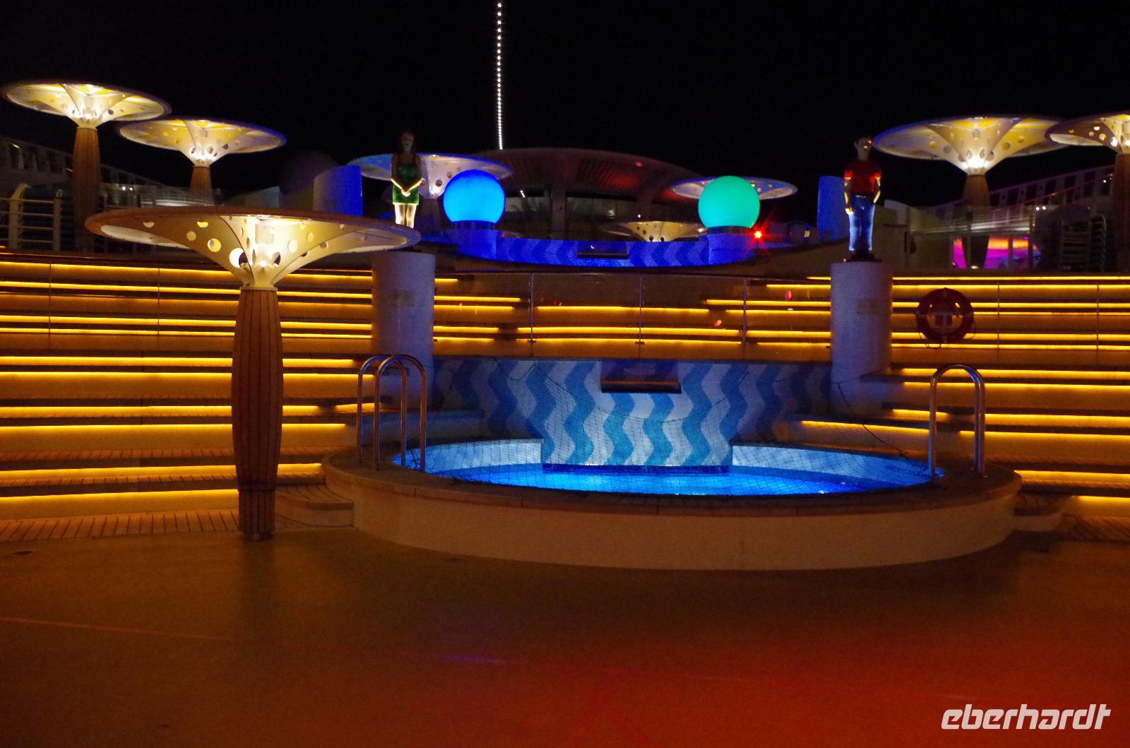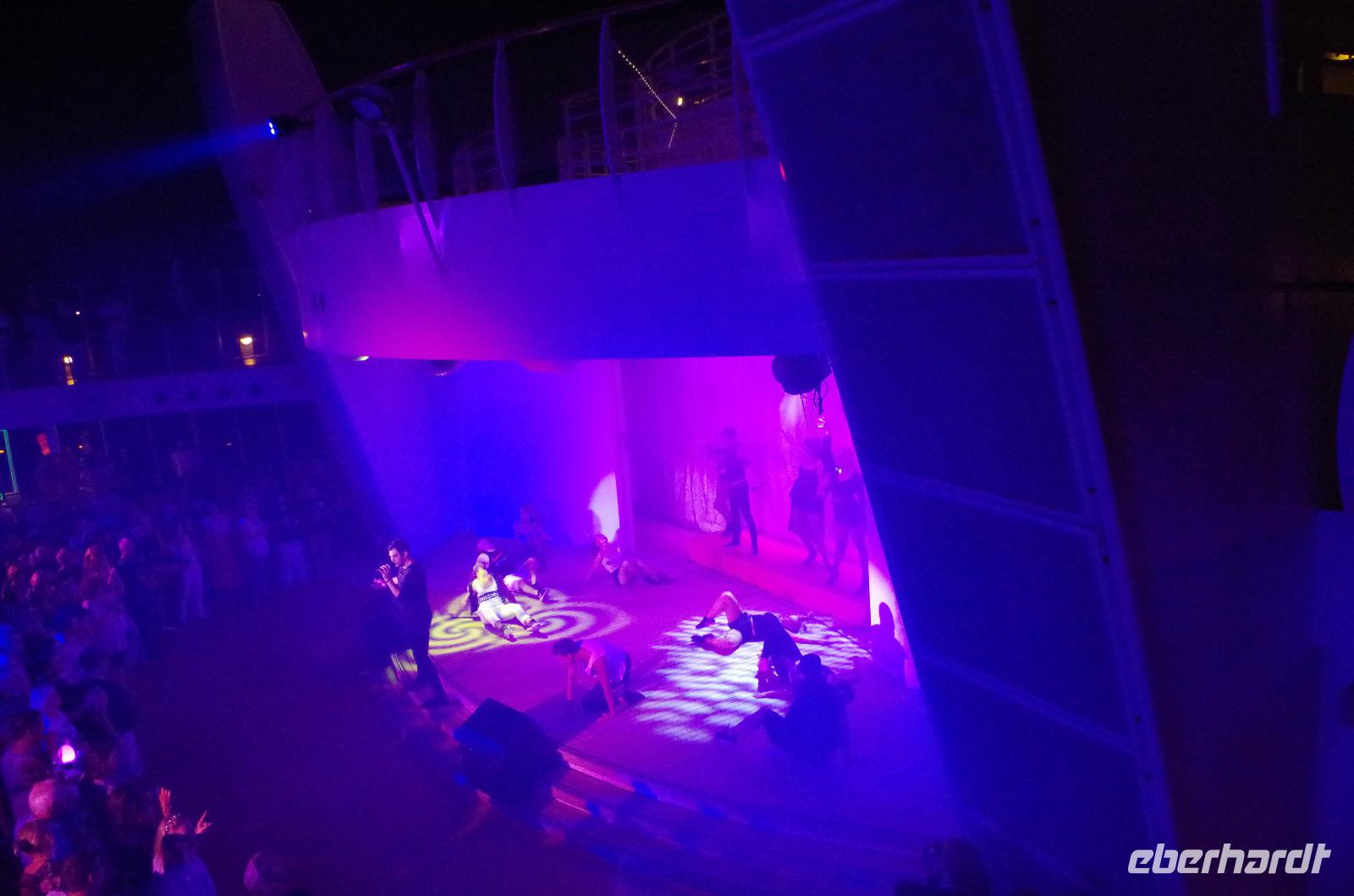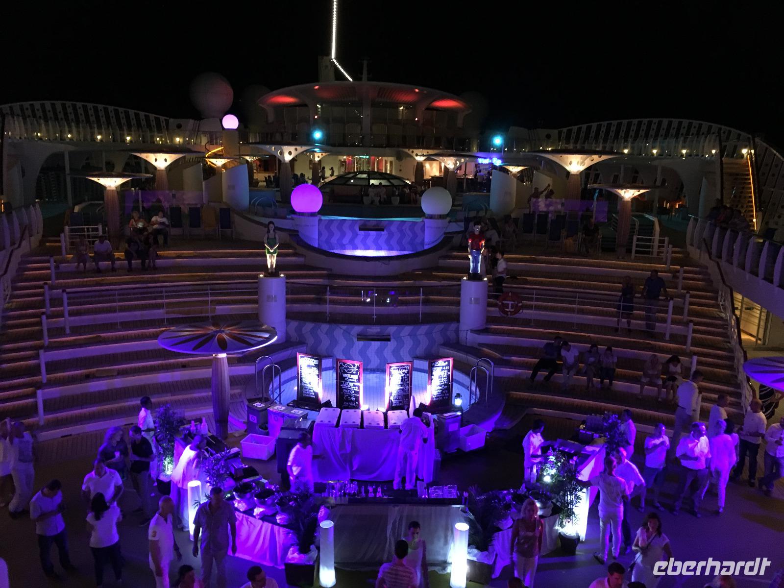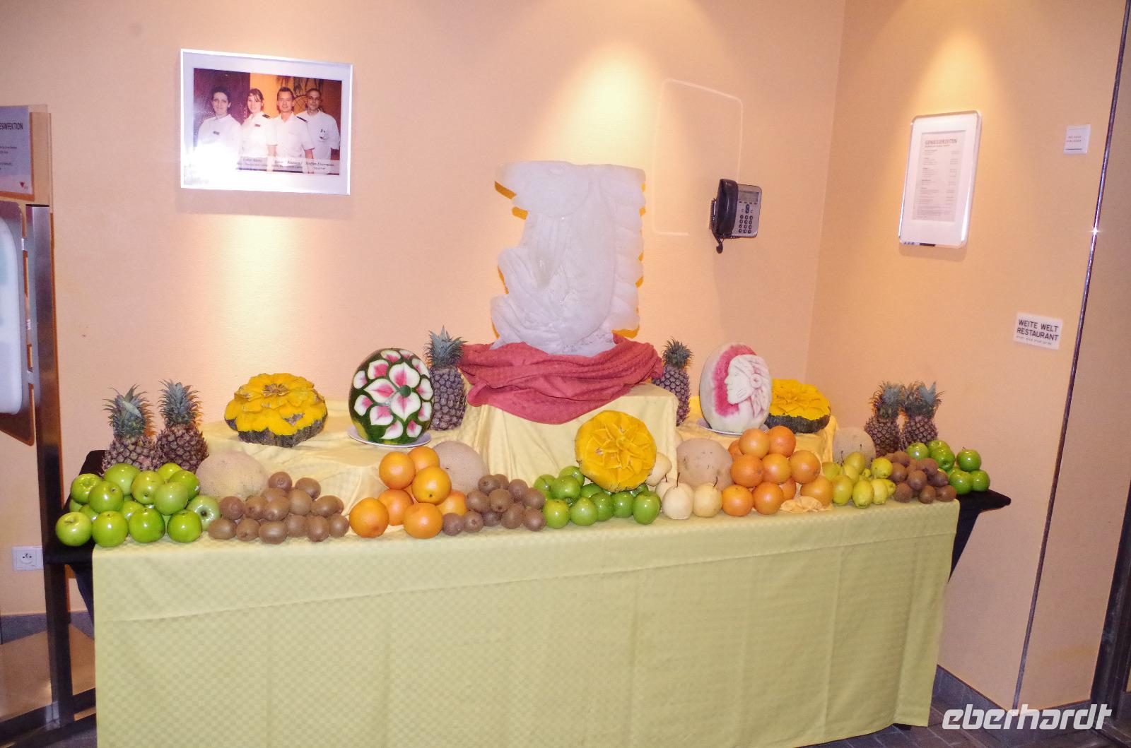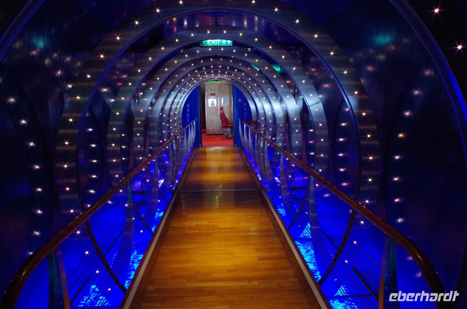 Heute haben wir unseren ersten Tag auf See, welcher den Titel "Orientierung auf dem Schiff" tragen könnte. Das Frühstück gestaltet jeder für sich, auch wenn sich viele Gäste in den Buffet-Restaurants auf Deck 9 und 10 treffen. Wir haben um die 25 Grad und es ist leicht bewölkt. Von Koh Samui in Thailand bis Singapur sind es rund 316 Seemeilen, dies entspricht circa 585 Kilometer. Um 10.00 Uhr lassen sich einige Gäste weitere interessante Informationen zu Singapur geben. Zuerst finden im Theatrium auf Deck 9 bis 11 die Ausflugspräsentation und anschließend der Vortrag von Lektor Gerrit Aust statt. Unsere Eberhardt Gruppe hat heute aber noch eine wichtige private Veranstaltung :-) Um 11.30 Uhr treffen wir uns in der AIDA Bar, um gemeinsam beim Eberhardt TRAVEL Sekt Empfang auf eine traumhafte Reise anzustoßen. Das ein oder andere Lächeln entsteht bereits beim Vortragen des "Touristengedichts" durch die Reisebegleitung. Wer möchte, kann an einem von der AIDA-Gastgeberin Sarah geführten exklusiven Eberhardt-Rundgang teilnehmen. Einige Gäste kennen sich bereits bestens auf dem Schiff aus, so dass wir sie wohl erst zum Abendessen wiedersehen werden. Für die "Neulinge" ist der Anfang oftmals etwas holprig auf so einem großen Schiff, aber unsere Orientierung wird immer besser. Wichtige Ebenen sind Deck 9 bis Deck 11. Im Theatrium finden viele Veranstaltungen wie Shows, Vorträge und Präsentationen statt. Für einen leckeren Cocktail eignen sich die verschiedenen Bars "Anytime Bar", "Time Out Bar", "Vinothek" und "Café Mare". In den Buffet-Restaurants "Markt Restaurant", "Weite Welt Restaurant", das "Bella Vista Restaurant" und die "Pizzeria Mare" ist das Abendessen jeden Tag einem anderem Thema gewidmet. Auf unserer Reise erleben wir leckere Gerichte aus Portugal, Bella Italia, Weltreise/Orient, USA/Kalifornien, Spanien, Russland, Mexiko, Alpen, Skandinavien, Pasta Festival und Mediterran. An Bord gibt es ebenso tolle À-La-Carte-Restaurants wie das Buffalo Steak House, die Sushi Bar und das Gourmet-Restaurant Rossini. Die Öffnungszeiten sind täglich im Tagesprogramm AIDA HEUTE zu finden. Das Programmheft für den nächsten Tag erhalten wir immer direkt auf unsere Kabine am Vorabend. Nach unserem Rundgang treffen sich einige Gäste im "Weite Welt Restaurant" zu einem leckeren Mittagessen. Den Nachmittag gestalten die Gäste individuell, zur Erholung und Entspannung dienen die Sauna mit fantastischem Blick auf das weite Meer, die Wellness-Oase, sonnen auf dem Pooldeck oder im FKK-Bereich. Neben einem exklusiven Abendprogramm mit spannender Artistik und mitreißenden Tanzshows werden auf dem Kreuzfahrtschiff auch verschiedene Tanz- und Sportkurse angeboten. Dazu zählt ebenso das Spiel "Shuffleboard". Wie lustig und spannend das Spiel sein kann, dazu später mehr ;-) Sportliche Aktivitäten bringen Glücksgefühle hervor und können weiter den vielen leckeren kulinarischen Versuchungen an Bord entgegen wirken. Wer möchte, kann zudem im Fitnessstudio trainieren oder einmal rundum das Schiff auf der Jogging-Strecke laufen. Gern hätten wir auch das 4D-Kino Cinemare ausgetestet, unglücklicherweise ist dieses auf unserer Reise aufgrund technischer Schwierigkeiten nicht verfügbar. Aber wir haben auch so ein tolles Unterhaltungsprogramm. Zum Abendessen treffen sich die Gäste und die Reisebegleitung um 18.30 Uhr an unseren reservierten Rundtischen im "Weite Welt Restaurant" auf Deck 10. Es gibt in den Hauptrestaurants verschiedene Öffnungszeiten, wobei das "Markt Restaurant" vorwiegend eine halbe Stunde vorm "Weite Welt Restaurant" öffnet. Zudem finden im "Markt Restaurant" verschiedene kulinarische Themenabende statt. Das Essen ist wieder vorzüglich. Unsere Kellner sind wieder sehr charmant und lustig. Im Anschluss an ein ausgezeichnetes Essen schauen sich die meisten Gäste um 21.00 Uhr die Show "Sweet Dreams" mit den AIDA-Stars im Theatrium an. Wirklich eine gelungene Show mit tollem Gesang! Um 22.00 Uhr finden auf dem Pooldeck 11 das Alpen-Offiziersshaken und das Alpenglühn mit DJ Maik statt. Wir gönnen uns noch einen leckeren Cocktail oder typisch kleine Häppchen wie Brezeln. Danach wünschen wir uns eine gute Nacht und freuen uns bereits auf Morgen, die spektakuläre Stadt Singapur erwartet uns :-)