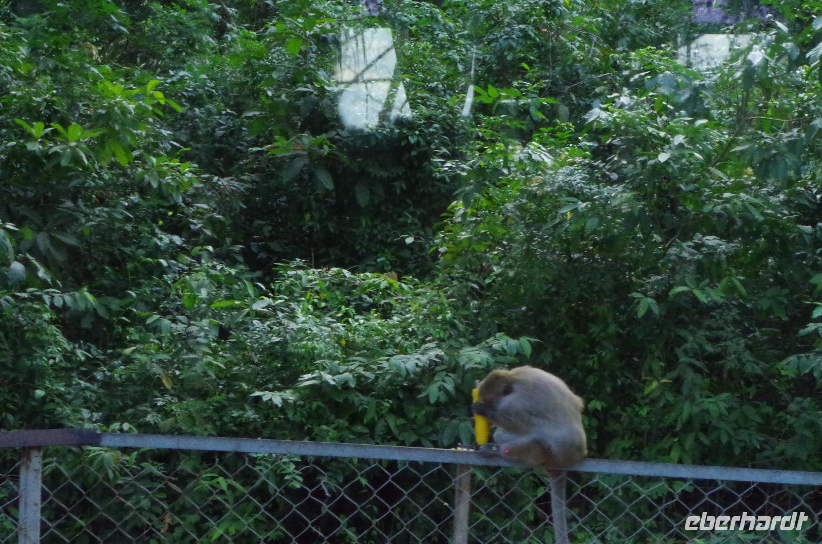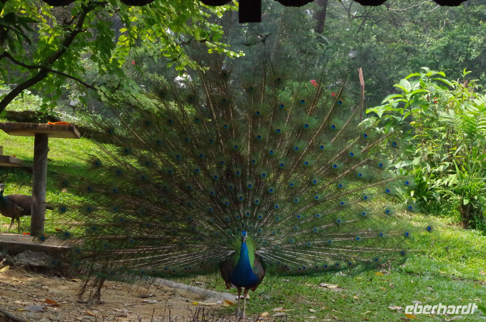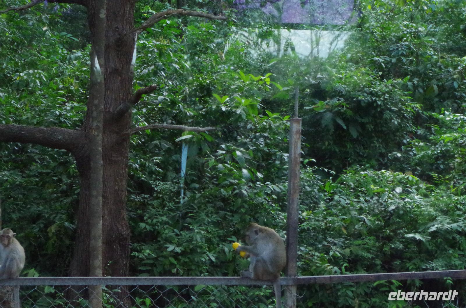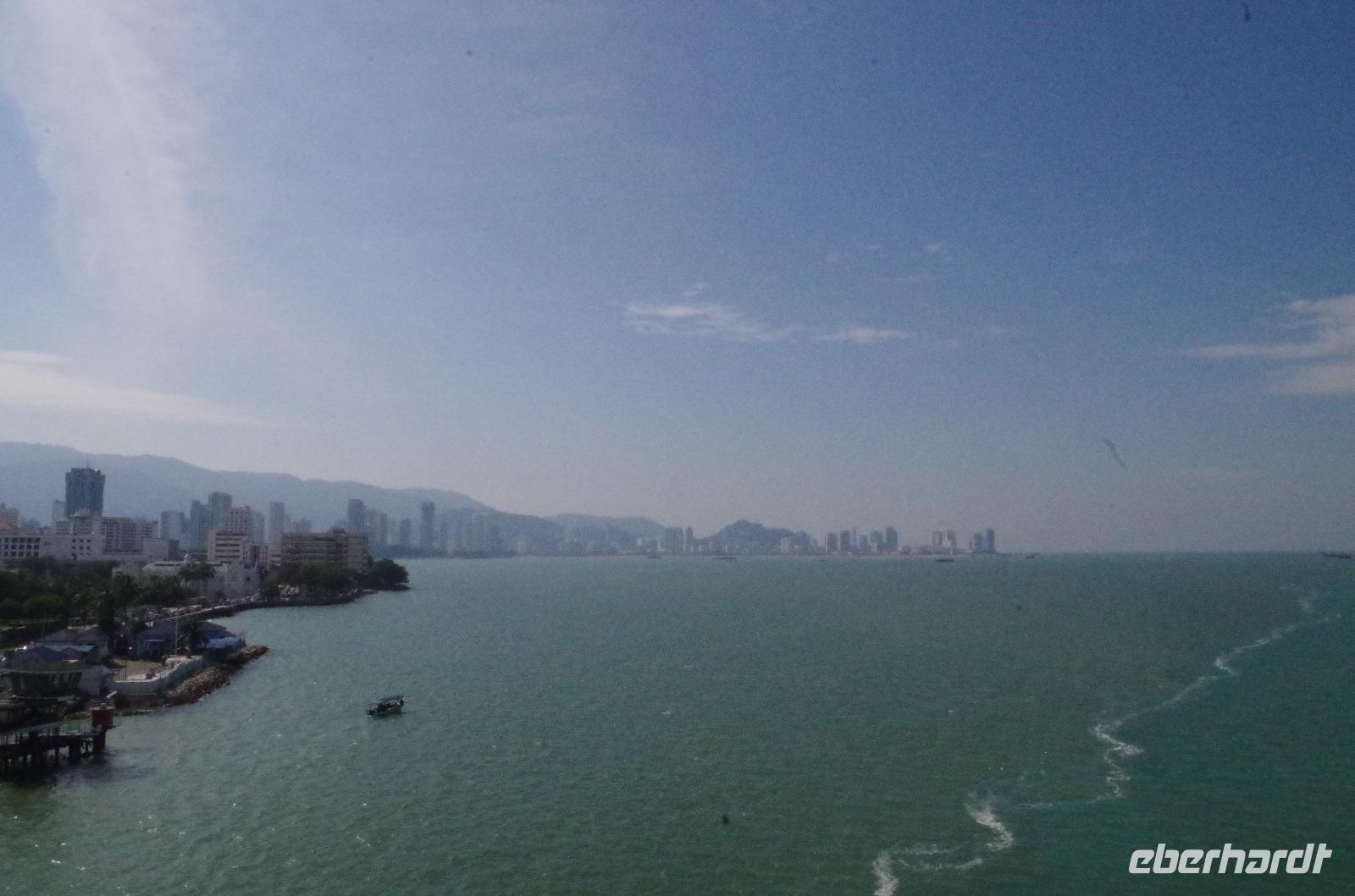 Auf einen Tag der Entspannung folgt abermals ein spannender Ausflugstag. Bereits ab 07.00 Uhr besteht die Möglichkeit, im "Markt Restaurant" zu frühstücken. Wir haben leicht bewölkten Himmel, dennoch ist es sehr warm bei rund 32 Grad Celsius. Für den Landgang ist die Mitnahme der Bordkarte ausreichend. Wer noch Geld wechseln möchte, kann dies gern an der Rezeption an Bord der AIDAbella vornehmen. Der Wechselkurs liegt ungefähr bei 1 Euro zu 5 malaysischen Ringgit. Um 08.00 Uhr erreichen wir das Penang International Cruise Terminal (PICT) in Malaysia. Die Hautstadt mit 180.000 Einwohnern von Penang ist George Town. Auf dieser 1.050 Quadratkilometer großen Insel leben rund 1,5 Millionen Menschen. Penang wurde 1786 von Captain Francis Light entdeckt, die Unabhängigkeit wurde 1957 erklärt. Diese Insel wird auch als "Perle des Orients" bezeichnet. Besonders berühmt ist sie für ihre im September 1985 eröffnete Penang-Brücke, welche die Insel mit dem malaysischen Festland verbindet. Mit einer Länge von 13,5 Kilometern galt sie bis März 2014 als die längste asiatische Brücke. Die zweite Verbindungsbrücke Second Penang Bridge ist 16,4 Kilometer lang. Weitere Sehenswürdigkeiten sind das Bukit Merah Laketown Resort, das Khoo-Kongsi-Klanhaus, der 1933 errichtete Hindu-Tempel "Sri Mariamman", der Schlangentempel oder der buddhistische Kek-Lok-Tempel mit seinen mehr als 300 Stufen und der Pagode der 10.000 Buddhas in einer Höhe von 33 Metern. Die Gäste haben abermals unterschiedliche Ausflüge gebucht. Zu empfehlen sind PEN1 "Penang: Einmal rundherum", PEN14 "Penang: Stadt & Gärten" und PEN 15 "Tropische Früchte & Schmetterlinge". Die Reisebegleitung bietet wieder eine individuelle Inselrundfahrt an. Wir treffen uns um 10.00 Uhr an der Rezeption auf Deck 5. Ähnlich wie in Koh Samui warten die Taxis am Swettenham Pier bereits auf die Touristen, der Preis für die Inselrundfahrt ist natürlich wieder verhandelbar. Rund 45 Minuten später besuchen wir den burmesischen Tempel und den Tempel "Wat Chaiya Mangkalaram" mit dem ruhenden Buddha. Anschließend führt uns die Fahrt zum 30 Hektar großen Botanischen Garten, wobei wir ganz viele kleine Rhesusaffen sehen, welche von den Touristen gefüttert werden. Wir wollen gern mit der Seilbahn zum 800 Meter hohen bewaldeten Penang Hill fahren, aber die Wartezeit würde bis zu zwei Stunden dauern. Eine Auffahrt mit dem Taxi ist nicht erlaubt, die Wartezeit für eine Fahrt mit einem Allradfahrzeug ist mit einer Stunde bedauerlicherweise nicht viel besser. Hier empfiehlt sich, die Karten vorher zu besorgen oder sehr früh zur Seilbahnstation zu fahren. Daher führt uns die Inselrundfahrt zur interessanten Schmetterlingsfarm "entopia", welche wir 13.00 Uhr besuchen. Danach fahren wir wieder zum Zentrum zurück und unternehmen noch einen kleinen Spaziergang zurück zur AIDAbella. Wir trinken gemeinsam Kaffee im "Weite Welt Restaurant" und zur gewohnten Uhrzeit um 18.30 Uhr treffen wir uns mit den anderen Reisegästen zum Abendessen. Am späten Abend findet die Show "Satisfaction" der AIDA-Stars im Theatrium statt. Allerdings ist nach circa zehn Minuten schon wieder alles vorbei, da unglücklicherweise die Bühnentechnik nicht mehr funktioniert. Na schauen wir, ob wir diese Show vielleicht an einem anderem Tag nochmals sehen werden ;-) Wir verabschieden und freuen uns bereits auf die nächste großartige Metropole Kuala Lumpur/Port Klang, wobei noch eine Fahrt von rund 201 Seemeilen bzw. 372 Kilometer vor uns liegt.