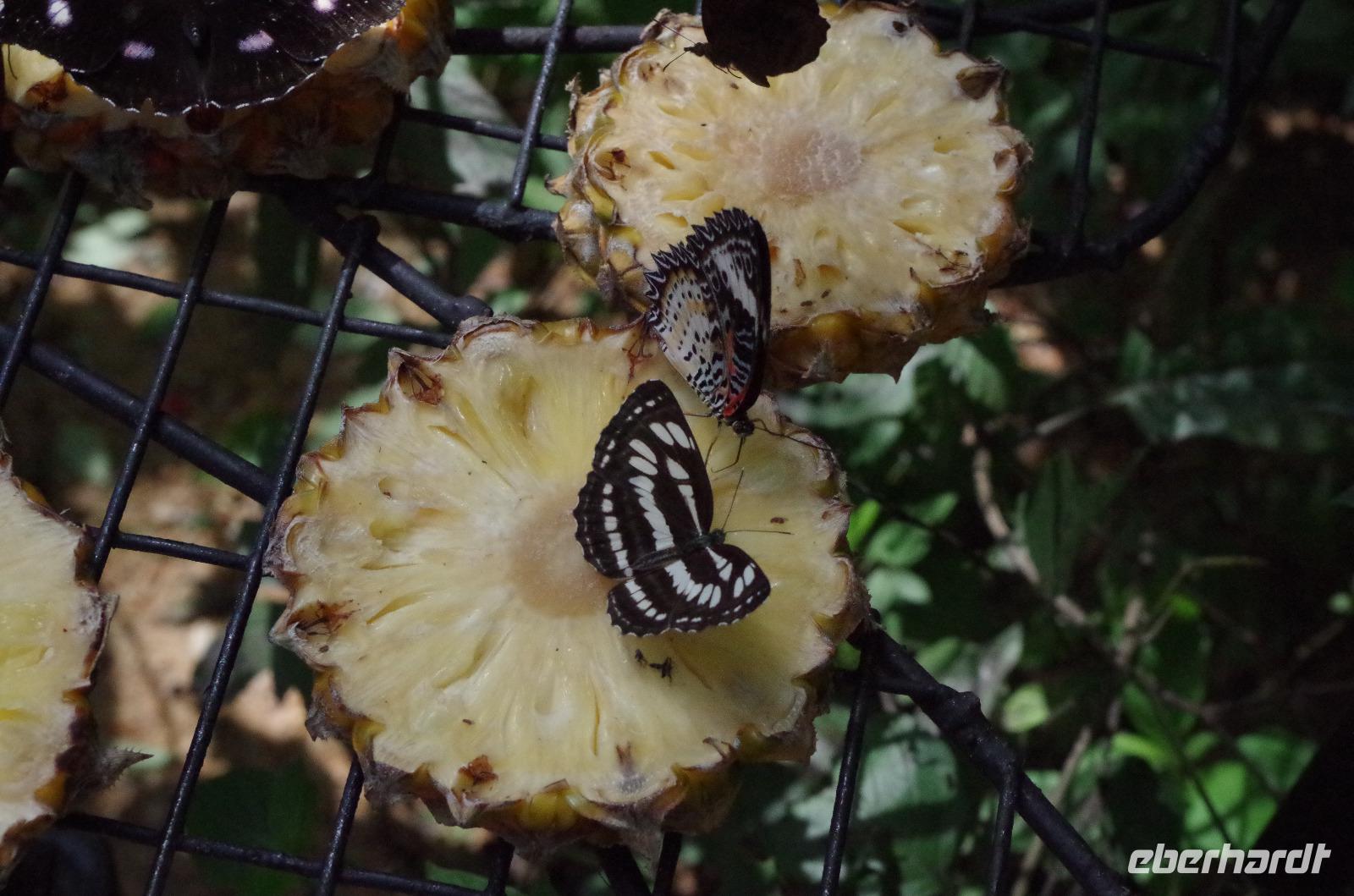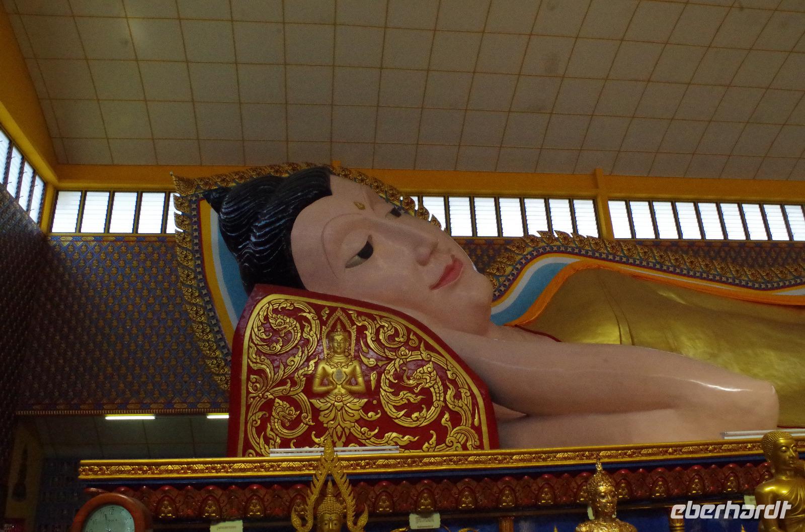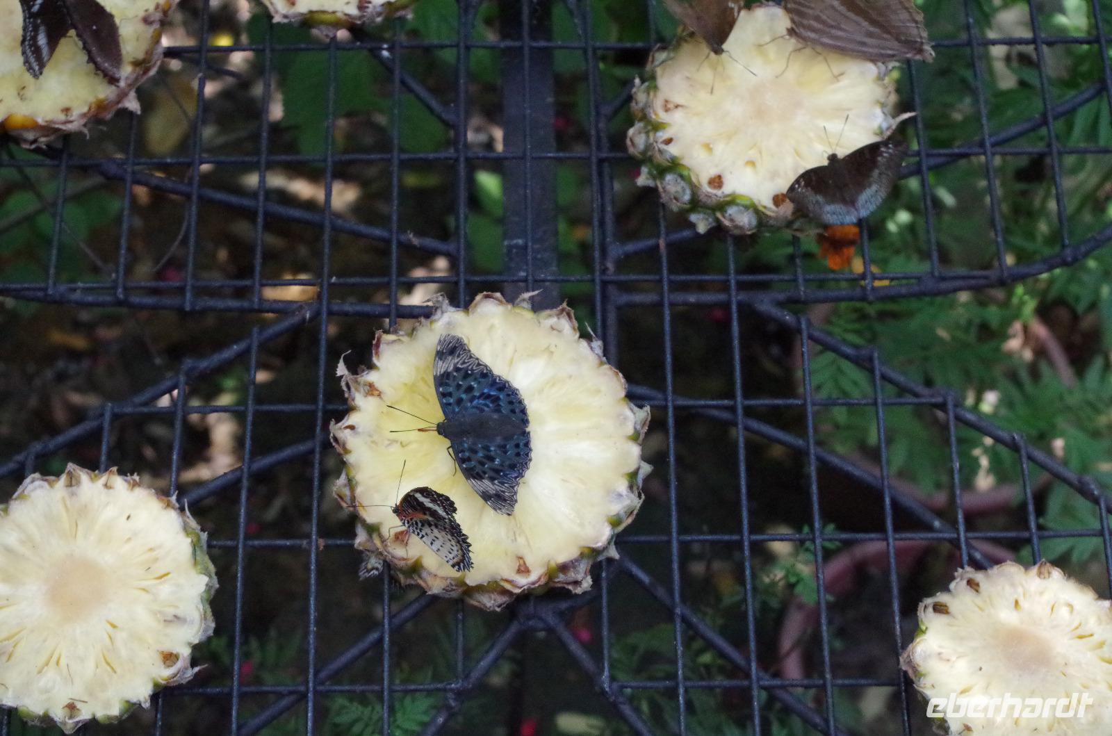 Auf einen Tag der Entspannung folgt abermals ein spannender Ausflugstag. Bereits ab 07.00 Uhr besteht die Möglichkeit, im "Markt Restaurant" zu frühstücken. Wir haben leicht bewölkten Himmel, dennoch ist es sehr warm bei rund 32 Grad Celsius. Für den Landgang ist die Mitnahme der Bordkarte ausreichend. Wer noch Geld wechseln möchte, kann dies gern an der Rezeption an Bord der AIDAbella vornehmen. Der Wechselkurs liegt ungefähr bei 1 Euro zu 5 malaysischen Ringgit. Um 08.00 Uhr erreichen wir das Penang International Cruise Terminal (PICT) in Malaysia. Die Hautstadt mit 180.000 Einwohnern von Penang ist George Town. Auf dieser 1.050 Quadratkilometer großen Insel leben rund 1,5 Millionen Menschen. Penang wurde 1786 von Captain Francis Light entdeckt, die Unabhängigkeit wurde 1957 erklärt. Diese Insel wird auch als "Perle des Orients" bezeichnet. Besonders berühmt ist sie für ihre im September 1985 eröffnete Penang-Brücke, welche die Insel mit dem malaysischen Festland verbindet. Mit einer Länge von 13,5 Kilometern galt sie bis März 2014 als die längste asiatische Brücke. Die zweite Verbindungsbrücke Second Penang Bridge ist 16,4 Kilometer lang. Weitere Sehenswürdigkeiten sind das Bukit Merah Laketown Resort, das Khoo-Kongsi-Klanhaus, der 1933 errichtete Hindu-Tempel "Sri Mariamman", der Schlangentempel oder der buddhistische Kek-Lok-Tempel mit seinen mehr als 300 Stufen und der Pagode der 10.000 Buddhas in einer Höhe von 33 Metern. Die Gäste haben abermals unterschiedliche Ausflüge gebucht. Zu empfehlen sind PEN1 "Penang: Einmal rundherum", PEN14 "Penang: Stadt & Gärten" und PEN 15 "Tropische Früchte & Schmetterlinge". Die Reisebegleitung bietet wieder eine individuelle Inselrundfahrt an. Wir treffen uns um 10.00 Uhr an der Rezeption auf Deck 5. Ähnlich wie in Koh Samui warten die Taxis am Swettenham Pier bereits auf die Touristen, der Preis für die Inselrundfahrt ist natürlich wieder verhandelbar. Rund 45 Minuten später besuchen wir den burmesischen Tempel und den Tempel "Wat Chaiya Mangkalaram" mit dem ruhenden Buddha. Anschließend führt uns die Fahrt zum 30 Hektar großen Botanischen Garten, wobei wir ganz viele kleine Rhesusaffen sehen, welche von den Touristen gefüttert werden. Wir wollen gern mit der Seilbahn zum 800 Meter hohen bewaldeten Penang Hill fahren, aber die Wartezeit würde bis zu zwei Stunden dauern. Eine Auffahrt mit dem Taxi ist nicht erlaubt, die Wartezeit für eine Fahrt mit einem Allradfahrzeug ist mit einer Stunde bedauerlicherweise nicht viel besser. Hier empfiehlt sich, die Karten vorher zu besorgen oder sehr früh zur Seilbahnstation zu fahren. Daher führt uns die Inselrundfahrt zur interessanten Schmetterlingsfarm "entopia", welche wir 13.00 Uhr besuchen. Danach fahren wir wieder zum Zentrum zurück und unternehmen noch einen kleinen Spaziergang zurück zur AIDAbella. Wir trinken gemeinsam Kaffee im "Weite Welt Restaurant" und zur gewohnten Uhrzeit um 18.30 Uhr treffen wir uns mit den anderen Reisegästen zum Abendessen. Am späten Abend findet die Show "Satisfaction" der AIDA-Stars im Theatrium statt. Allerdings ist nach circa zehn Minuten schon wieder alles vorbei, da unglücklicherweise die Bühnentechnik nicht mehr funktioniert. Na schauen wir, ob wir diese Show vielleicht an einem anderem Tag nochmals sehen werden ;-) Wir verabschieden und freuen uns bereits auf die nächste großartige Metropole Kuala Lumpur/Port Klang, wobei noch eine Fahrt von rund 201 Seemeilen bzw. 372 Kilometer vor uns liegt.