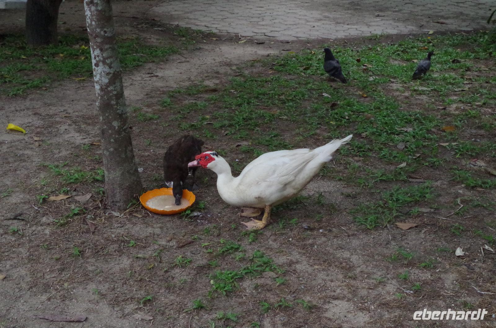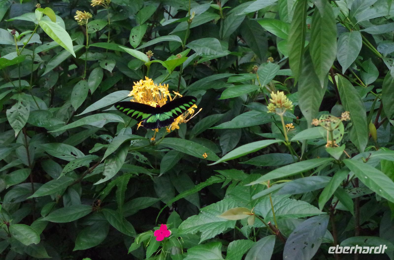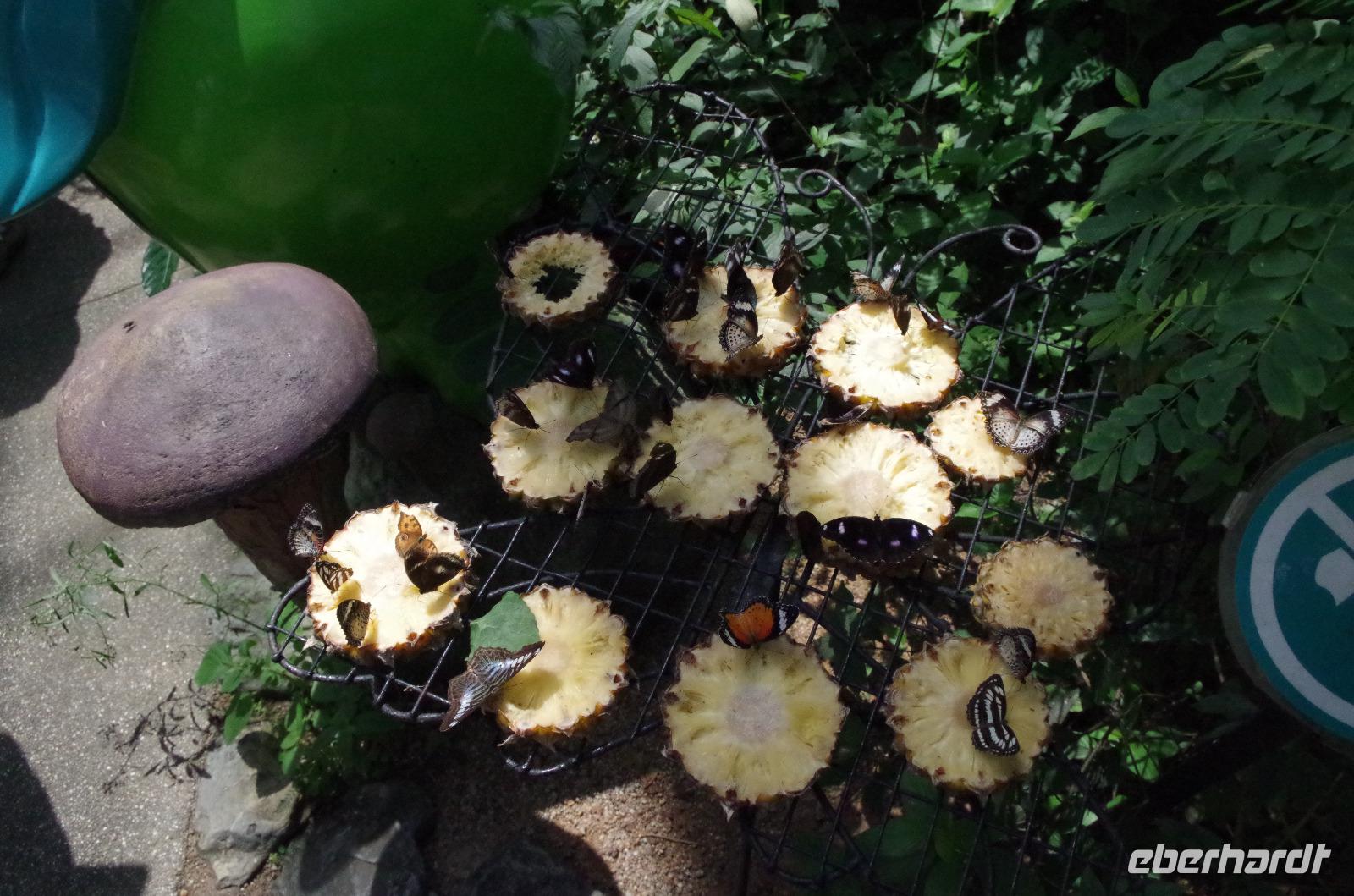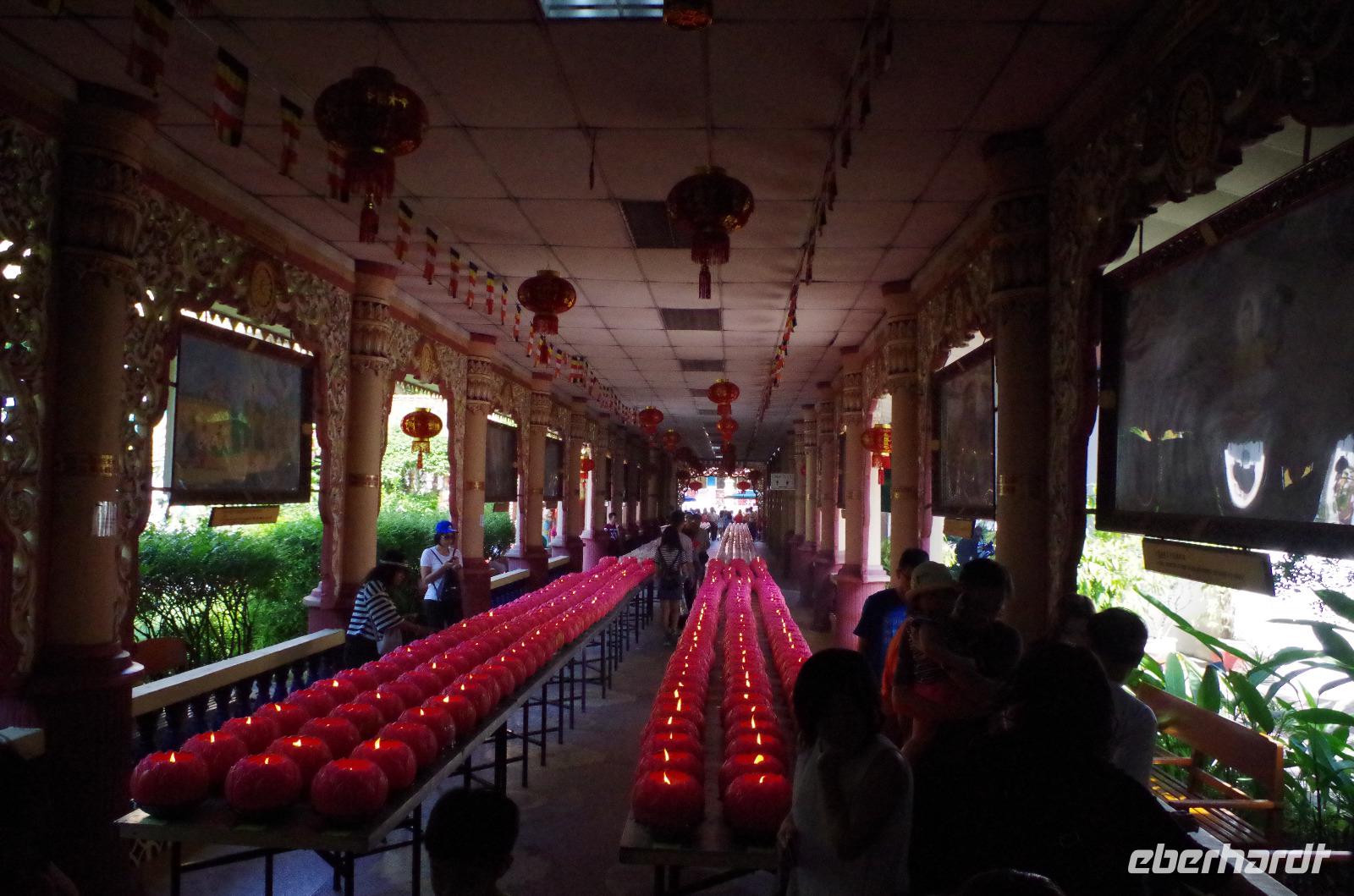 Auf einen Tag der Entspannung folgt abermals ein spannender Ausflugstag. Bereits ab 07.00 Uhr besteht die Möglichkeit, im "Markt Restaurant" zu frühstücken. Wir haben leicht bewölkten Himmel, dennoch ist es sehr warm bei rund 32 Grad Celsius. Für den Landgang ist die Mitnahme der Bordkarte ausreichend. Wer noch Geld wechseln möchte, kann dies gern an der Rezeption an Bord der AIDAbella vornehmen. Der Wechselkurs liegt ungefähr bei 1 Euro zu 5 malaysischen Ringgit. Um 08.00 Uhr erreichen wir das Penang International Cruise Terminal (PICT) in Malaysia. Die Hautstadt mit 180.000 Einwohnern von Penang ist George Town. Auf dieser 1.050 Quadratkilometer großen Insel leben rund 1,5 Millionen Menschen. Penang wurde 1786 von Captain Francis Light entdeckt, die Unabhängigkeit wurde 1957 erklärt. Diese Insel wird auch als "Perle des Orients" bezeichnet. Besonders berühmt ist sie für ihre im September 1985 eröffnete Penang-Brücke, welche die Insel mit dem malaysischen Festland verbindet. Mit einer Länge von 13,5 Kilometern galt sie bis März 2014 als die längste asiatische Brücke. Die zweite Verbindungsbrücke Second Penang Bridge ist 16,4 Kilometer lang. Weitere Sehenswürdigkeiten sind das Bukit Merah Laketown Resort, das Khoo-Kongsi-Klanhaus, der 1933 errichtete Hindu-Tempel "Sri Mariamman", der Schlangentempel oder der buddhistische Kek-Lok-Tempel mit seinen mehr als 300 Stufen und der Pagode der 10.000 Buddhas in einer Höhe von 33 Metern. Die Gäste haben abermals unterschiedliche Ausflüge gebucht. Zu empfehlen sind PEN1 "Penang: Einmal rundherum", PEN14 "Penang: Stadt & Gärten" und PEN 15 "Tropische Früchte & Schmetterlinge". Die Reisebegleitung bietet wieder eine individuelle Inselrundfahrt an. Wir treffen uns um 10.00 Uhr an der Rezeption auf Deck 5. Ähnlich wie in Koh Samui warten die Taxis am Swettenham Pier bereits auf die Touristen, der Preis für die Inselrundfahrt ist natürlich wieder verhandelbar. Rund 45 Minuten später besuchen wir den burmesischen Tempel und den Tempel "Wat Chaiya Mangkalaram" mit dem ruhenden Buddha. Anschließend führt uns die Fahrt zum 30 Hektar großen Botanischen Garten, wobei wir ganz viele kleine Rhesusaffen sehen, welche von den Touristen gefüttert werden. Wir wollen gern mit der Seilbahn zum 800 Meter hohen bewaldeten Penang Hill fahren, aber die Wartezeit würde bis zu zwei Stunden dauern. Eine Auffahrt mit dem Taxi ist nicht erlaubt, die Wartezeit für eine Fahrt mit einem Allradfahrzeug ist mit einer Stunde bedauerlicherweise nicht viel besser. Hier empfiehlt sich, die Karten vorher zu besorgen oder sehr früh zur Seilbahnstation zu fahren. Daher führt uns die Inselrundfahrt zur interessanten Schmetterlingsfarm "entopia", welche wir 13.00 Uhr besuchen. Danach fahren wir wieder zum Zentrum zurück und unternehmen noch einen kleinen Spaziergang zurück zur AIDAbella. Wir trinken gemeinsam Kaffee im "Weite Welt Restaurant" und zur gewohnten Uhrzeit um 18.30 Uhr treffen wir uns mit den anderen Reisegästen zum Abendessen. Am späten Abend findet die Show "Satisfaction" der AIDA-Stars im Theatrium statt. Allerdings ist nach circa zehn Minuten schon wieder alles vorbei, da unglücklicherweise die Bühnentechnik nicht mehr funktioniert. Na schauen wir, ob wir diese Show vielleicht an einem anderem Tag nochmals sehen werden ;-) Wir verabschieden und freuen uns bereits auf die nächste großartige Metropole Kuala Lumpur/Port Klang, wobei noch eine Fahrt von rund 201 Seemeilen bzw. 372 Kilometer vor uns liegt.