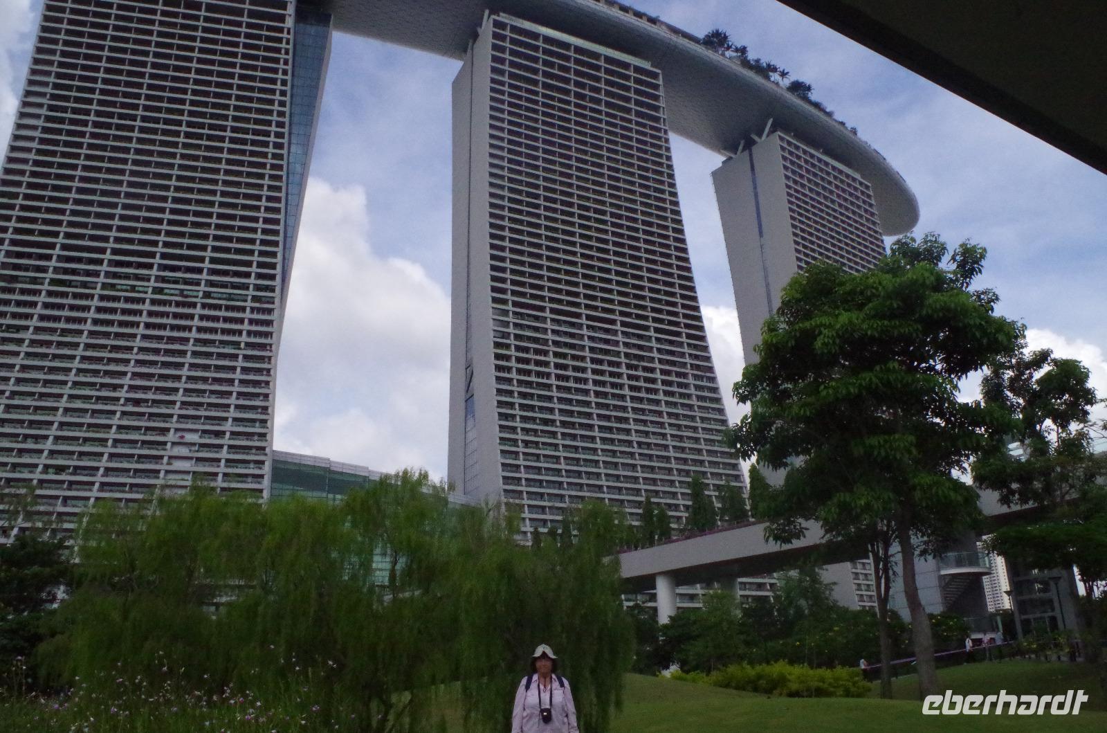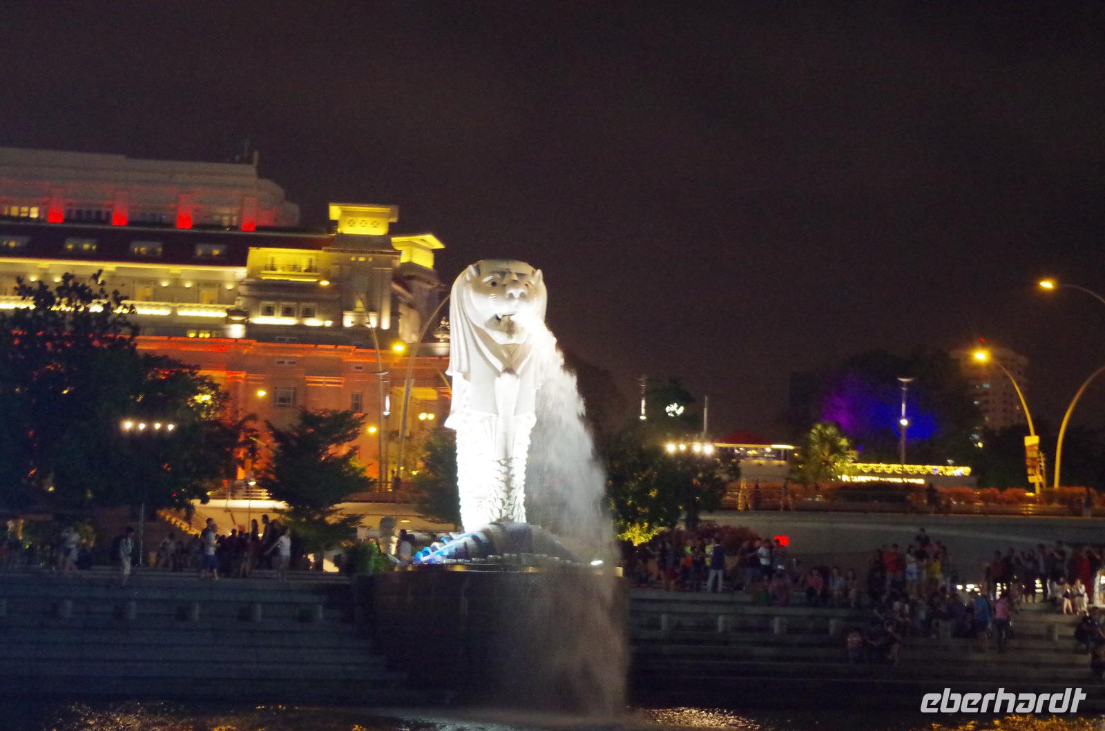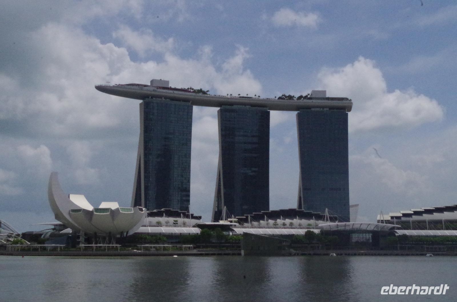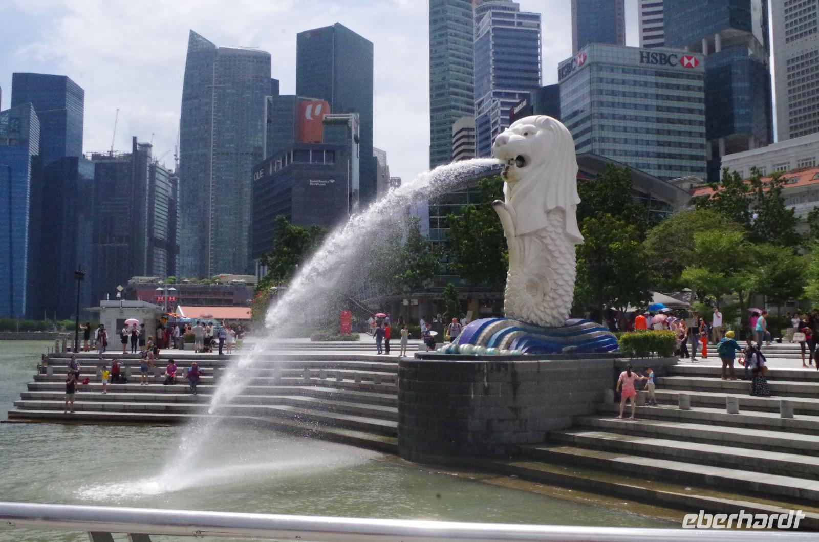 Während wir uns gestern gut erholt haben, wartet heute wieder ein spannender Tag auf uns. Es ist leicht bewölkt bei rund 30 Grad. Für den Landgang benötigen wir unseren Reisepass und die Ausreiskarte. Wer noch Geld wechseln möchte, kann dies gern an der Rezeption an Bord der AIDAbella vornehmen. Der Wechselkurs liegt ungefähr bei 1 Euro zu 1,5 Singapur Dollar SGD. Es wird überall darauf hingewiesen, dass Singapur eine besonders saubere Metropole ist und es sind strenge Vorschriften einzuhalten. Beispielsweise ist Kaugummi kauen nur auf Rezept erlaubt, das Wegwerfen von Zigaretten oder Getränkedosen wird mit einer Strafe von über 1.000 SGD geahndet. Um 08.30 Uhr findet die Passausgabe für Singapur im Theatrium Deck 9 statt. Pünktlich um 10.00 Uhr erreichen wir das Cruise Center Sentosa Island. Der Großteil der Gäste unternimmt am Vormittag einen von AIDA durchgeführten Ausflug, sogar mit deutschsprachigen Reiseleitern :-) Zu empfehlen sind SIN02 "Singapurs Vielfalt", SIN03 "Stilvolles Singapur", SIN06 "Singapur: Die Lichter der Großstadt" und SIN09 "Entspannte Panoramafahrt durch Singapur". Die Reisebegleitung bietet an, gemeinsam mit der Metro ins Zentrum zu fahren, um das Marina Bay Sands Hotel zu besuchen und einen Spaziergang im Merlion Park zu unternehmen. Singapur ist ein Inselstaat, welcher von Nord nach Süd 25 Kilometer lang und von Ost nach West 45 Kilometer breit ist. Im Jahre 1965 wurde Singapur für unabhängig erklärt. Singapur hat eine Fläche von rund 700 Quadratkilometern und es leben circa 5,4 Millionen Einwohner in diesem Stadtstaat. Nach einem Besuch von Angela Merkel 2011 wurde ihr zu Ehren eine lilafarbene Orchidee gezüchtet und nach ihr benannt, die "Dendrobium Angela Merkel". Wir treffen uns um 11.00 Uhr und verlassen unser "schwimmendes Hotel". Allerdings dauert die Passkontrolle über 30 Minuten lang, ein wenig Zeit sollte hier eingeplant werden. Im Hafen-Terminal folgen wir einfach der Ausschilderung "MRT" die Shopping Mall hindurch. Wir kaufen ein Metroticket am Automaten und fahren zwei Haltestellen mit der violetten Linie NE "North East Line" von der Station "Harbour Front" zur Station "Chinatown" in Richtung "Punggol". Hier steigen wir in die blaue Linie DT "Downtown Line" um und fahren drei Haltestellen bis zur Station "Bayfront" in Richtung "Bukit Panjang". Wir spazieren ganz entspannt zum berühmten Marina Bay Sands Resort. Das rund 20 Hektar umfassende Resort an der Marina Bay des Flusses "Singapore River" wurde von Moshe Safdie Architects entworfen und von Las Vegas Sands errichtet. Das Hotel besteht aus drei 55-stöckigen Hoteltürmen. Das Besondere ist wohl der in einer Höhe von 191 Metern gebaute 340 Meter lange Dachgarten "Sands SkyPark" mit einem 146 Meter langen Infinity Pool. Der Fahrstuhl im Tower 1 führt in der 57. Etage zur Bar "Sky on 57 - Flight Bar & Lounge". Hier könnten wir gemütlich zusammensitzen und die Aussicht genießen. Der Mindestumsatz liegt bei einem Getränk pro Person mit einem Preis ab 20 US-Dollar aufwärts. Vielleicht gönnt sich der ein oder andere Reisegast einen leckeren Cocktail ;-) Wir versuchen aber stattdessen, im Tower 3 des Marina Bay Sands Hotels mit dem Fahrstuhl in die 57. Etage zu fahren. Der Fahrstuhl im 3. Tower ist nur für Gäste bestimmt, welche in dem Hotel auch übernachten. Wir fahren gemeinsam mit Hotelgästen in die 57. Etage. Hier befinden sich zwei Clubs, bei denen bis 22.00 Uhr freier Eintritt ist. Wir können eine spektakuläre Aussicht genießen. Nachdem wir diese atemberaubende Metropole von oben fotografiert haben, fahren wir wieder runter und spazieren über die Doppelhelix-Brücke in Richtung Merlion Park. Dies ist eine Fußgängerbrücke, welche innerhalb der Marina Bay das Marina Centre mit Marina South verbindet. Dabei kommen wir am zweithöchsten Riesenrad der Welt, dem "Singapore Flyer", mit einer Höhe von 165 Metern vorbei. Nach seiner Eröffnung im März 2008 bis zur Einweihung des "The High Roller" in Las Vegas im April 2014 galt es noch als höchstes Riesenrad der Welt. Die Rundfahrt dauert circa 30 Minuten und bietet ebenso einen supertollen Blick über die Stadt. Gegenüber vom Marina Bay Sands Hotel sehen wir die Esplanade-Konzerthalle und im rund 2.500 Quadratmeter großen "Merlion Park" befindet sich ein weiteres Wahrzeichen von Singapur: Die Merlion Statue. Der Kopf hat die Form eines Löwen mit einem echten Wasserstrahl aus dem Löwenmund kommend, der Körper des einen Fisches. Der Name setzt sich unter anderem aus den englischen Wörtern für Meerjungfrau "mermaid" und Löwe "lion" zusammen. Die 1972 von Kwan Sai Kheong und Lim Nah Seng erbaute Statue ist rund 8,6 Meter hoch und hat ein Gewicht von circa 70 Tonnen. Zur gewählten Darstellungsform sind mehrere Legenden vorhanden, wobei besonders der Fischkörper sowohl die Vergangenheit der Stadt als Fischerdorf als auch die Verbundenheit zum Meer symbolisieren soll. Der Löwe steht einerseits für Stärke und Furchtlosigkeit, auf der anderen Seite kann er zudem vom ursprünglichen Stadtnamen "Singapura" abgeleitet werden, was aus dem Malaiischen stammt und mit "Löwenstadt" übersetzt wird. Da die Statue rund 25 Jahre nach der Fertigstellung der Esplanade Bridge vom Ufer aus weniger deutlich zu erkennen war, erfolgte rund fünf Jahre später ihre Versetzung circa 120 Meter entfernt an ihre heutige Position vor dem berühmten Fullerton Hotel gegenüber des Marina Bay Sands Hotels. Wir kommen auch an der Kathedrale St. Andrews vorbei sowie am legendären "Raffles Landing Site" mit einer weißen Marmorstatue des Gründungsvaters von Singapur, Sir Stamford Raffles, welcher 1819 in Singapur eingetroffen war und einen wichtigen Handelsposten errichtete. Die bronzefarbige Originalskulptur kann sich vorm "Victoria Concert Hall und Theatre" angeschaut werden. Einige Gäste genießen bei ihrem Besuch im Raffles Hotel den berühmten leckeren Cocktail "Singapur Sling". Dann laufen wir wieder zur Metrostation unter de