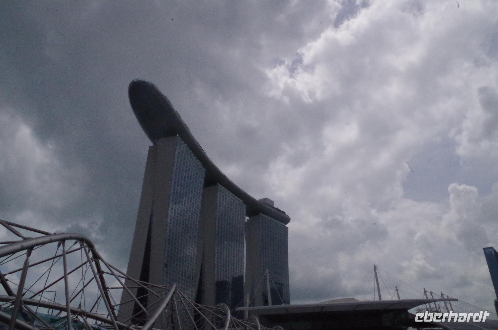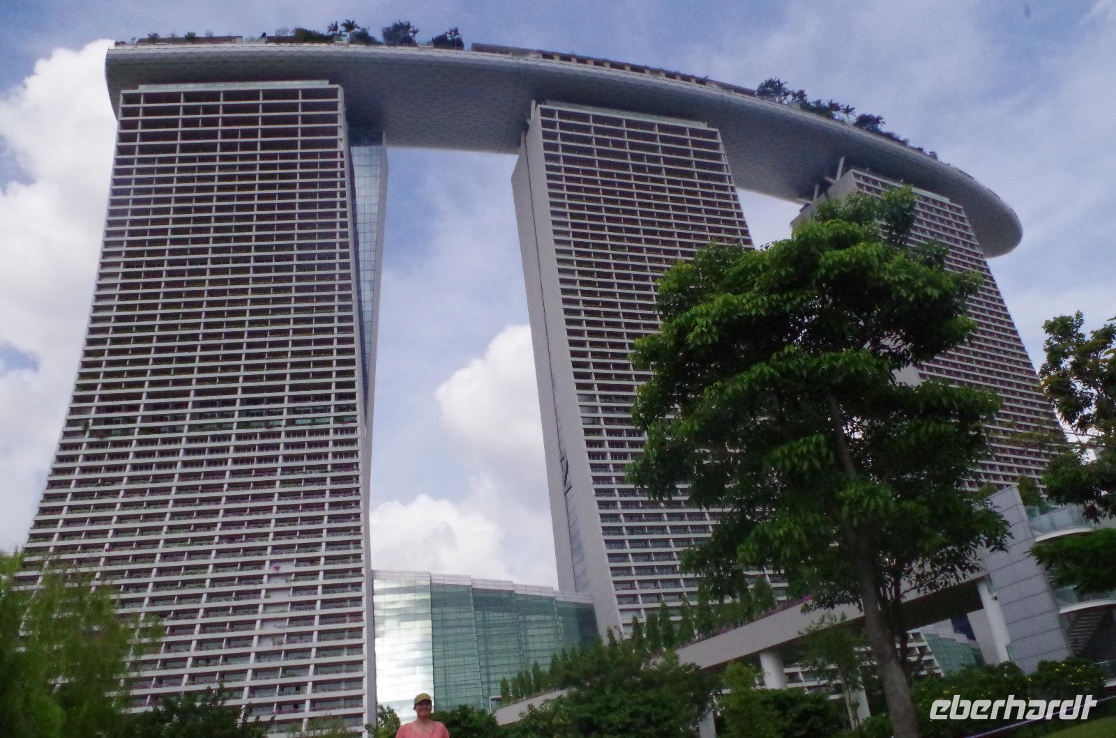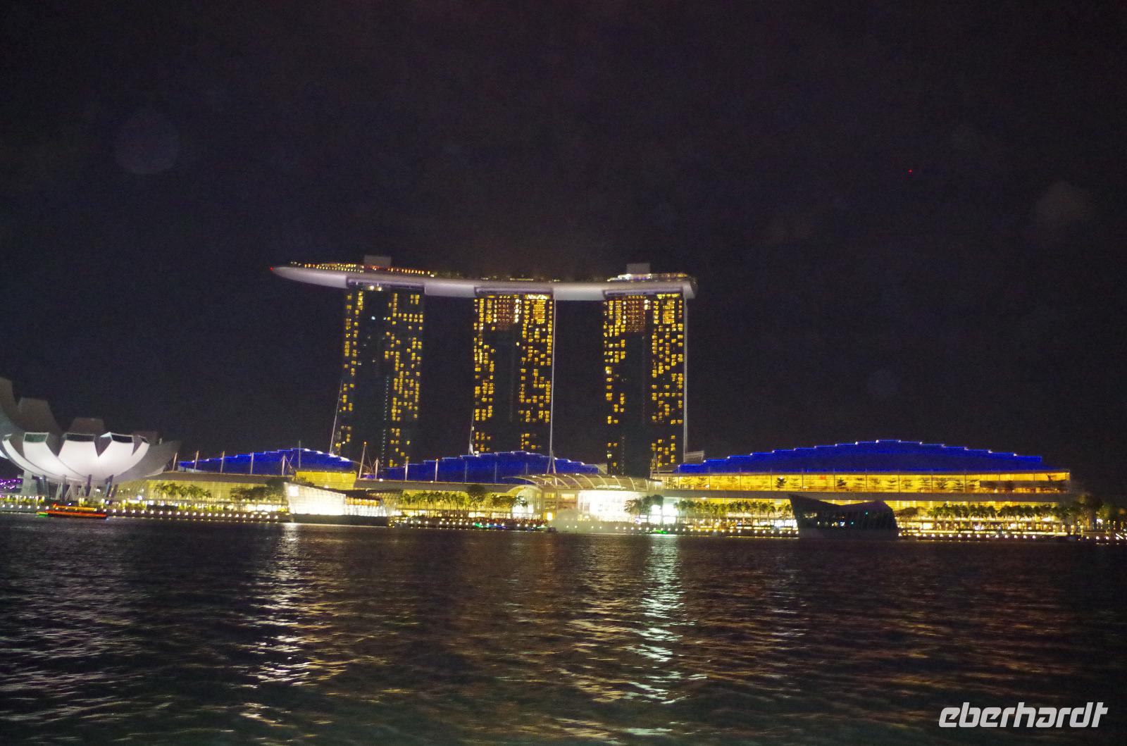 Während wir uns gestern gut erholt haben, wartet heute wieder ein spannender Tag auf uns. Es ist leicht bewölkt bei rund 30 Grad. Für den Landgang benötigen wir unseren Reisepass und die Ausreiskarte. Wer noch Geld wechseln möchte, kann dies gern an der Rezeption an Bord der AIDAbella vornehmen. Der Wechselkurs liegt ungefähr bei 1 Euro zu 1,5 Singapur Dollar SGD. Es wird überall darauf hingewiesen, dass Singapur eine besonders saubere Metropole ist und es sind strenge Vorschriften einzuhalten. Beispielsweise ist Kaugummi kauen nur auf Rezept erlaubt, das Wegwerfen von Zigaretten oder Getränkedosen wird mit einer Strafe von über 1.000 SGD geahndet. Um 08.30 Uhr findet die Passausgabe für Singapur im Theatrium Deck 9 statt. Pünktlich um 10.00 Uhr erreichen wir das Cruise Center Sentosa Island. Der Großteil der Gäste unternimmt am Vormittag einen von AIDA durchgeführten Ausflug, sogar mit deutschsprachigen Reiseleitern :-) Zu empfehlen sind SIN02 "Singapurs Vielfalt", SIN03 "Stilvolles Singapur", SIN06 "Singapur: Die Lichter der Großstadt" und SIN09 "Entspannte Panoramafahrt durch Singapur". Die Reisebegleitung bietet an, gemeinsam mit der Metro ins Zentrum zu fahren, um das Marina Bay Sands Hotel zu besuchen und einen Spaziergang im Merlion Park zu unternehmen. Singapur ist ein Inselstaat, welcher von Nord nach Süd 25 Kilometer lang und von Ost nach West 45 Kilometer breit ist. Im Jahre 1965 wurde Singapur für unabhängig erklärt. Singapur hat eine Fläche von rund 700 Quadratkilometern und es leben circa 5,4 Millionen Einwohner in diesem Stadtstaat. Nach einem Besuch von Angela Merkel 2011 wurde ihr zu Ehren eine lilafarbene Orchidee gezüchtet und nach ihr benannt, die "Dendrobium Angela Merkel". Wir treffen uns um 11.00 Uhr und verlassen unser "schwimmendes Hotel". Allerdings dauert die Passkontrolle über 30 Minuten lang, ein wenig Zeit sollte hier eingeplant werden. Im Hafen-Terminal folgen wir einfach der Ausschilderung "MRT" die Shopping Mall hindurch. Wir kaufen ein Metroticket am Automaten und fahren zwei Haltestellen mit der violetten Linie NE "North East Line" von der Station "Harbour Front" zur Station "Chinatown" in Richtung "Punggol". Hier steigen wir in die blaue Linie DT "Downtown Line" um und fahren drei Haltestellen bis zur Station "Bayfront" in Richtung "Bukit Panjang". Wir spazieren ganz entspannt zum berühmten Marina Bay Sands Resort. Das rund 20 Hektar umfassende Resort an der Marina Bay des Flusses "Singapore River" wurde von Moshe Safdie Architects entworfen und von Las Vegas Sands errichtet. Das Hotel besteht aus drei 55-stöckigen Hoteltürmen. Das Besondere ist wohl der in einer Höhe von 191 Metern gebaute 340 Meter lange Dachgarten "Sands SkyPark" mit einem 146 Meter langen Infinity Pool. Der Fahrstuhl im Tower 1 führt in der 57. Etage zur Bar "Sky on 57 - Flight Bar & Lounge". Hier könnten wir gemütlich zusammensitzen und die Aussicht genießen. Der Mindestumsatz liegt bei einem Getränk pro Person mit einem Preis ab 20 US-Dollar aufwärts. Vielleicht gönnt sich der ein oder andere Reisegast einen leckeren Cocktail ;-) Wir versuchen aber stattdessen, im Tower 3 des Marina Bay Sands Hotels mit dem Fahrstuhl in die 57. Etage zu fahren. Der Fahrstuhl im 3. Tower ist nur für Gäste bestimmt, welche in dem Hotel auch übernachten. Wir fahren gemeinsam mit Hotelgästen in die 57. Etage. Hier befinden sich zwei Clubs, bei denen bis 22.00 Uhr freier Eintritt ist. Wir können eine spektakuläre Aussicht genießen. Nachdem wir diese atemberaubende Metropole von oben fotografiert haben, fahren wir wieder runter und spazieren über die Doppelhelix-Brücke in Richtung Merlion Park. Dies ist eine Fußgängerbrücke, welche innerhalb der Marina Bay das Marina Centre mit Marina South verbindet. Dabei kommen wir am zweithöchsten Riesenrad der Welt, dem "Singapore Flyer", mit einer Höhe von 165 Metern vorbei. Nach seiner Eröffnung im März 2008 bis zur Einweihung des "The High Roller" in Las Vegas im April 2014 galt es noch als höchstes Riesenrad der Welt. Die Rundfahrt dauert circa 30 Minuten und bietet ebenso einen supertollen Blick über die Stadt. Gegenüber vom Marina Bay Sands Hotel sehen wir die Esplanade-Konzerthalle und im rund 2.500 Quadratmeter großen "Merlion Park" befindet sich ein weiteres Wahrzeichen von Singapur: Die Merlion Statue. Der Kopf hat die Form eines Löwen mit einem echten Wasserstrahl aus dem Löwenmund kommend, der Körper des einen Fisches. Der Name setzt sich unter anderem aus den englischen Wörtern für Meerjungfrau "mermaid" und Löwe "lion" zusammen. Die 1972 von Kwan Sai Kheong und Lim Nah Seng erbaute Statue ist rund 8,6 Meter hoch und hat ein Gewicht von circa 70 Tonnen. Zur gewählten Darstellungsform sind mehrere Legenden vorhanden, wobei besonders der Fischkörper sowohl die Vergangenheit der Stadt als Fischerdorf als auch die Verbundenheit zum Meer symbolisieren soll. Der Löwe steht einerseits für Stärke und Furchtlosigkeit, auf der anderen Seite kann er zudem vom ursprünglichen Stadtnamen "Singapura" abgeleitet werden, was aus dem Malaiischen stammt und mit "Löwenstadt" übersetzt wird. Da die Statue rund 25 Jahre nach der Fertigstellung der Esplanade Bridge vom Ufer aus weniger deutlich zu erkennen war, erfolgte rund fünf Jahre später ihre Versetzung circa 120 Meter entfernt an ihre heutige Position vor dem berühmten Fullerton Hotel gegenüber des Marina Bay Sands Hotels. Wir kommen auch an der Kathedrale St. Andrews vorbei sowie am legendären "Raffles Landing Site" mit einer weißen Marmorstatue des Gründungsvaters von Singapur, Sir Stamford Raffles, welcher 1819 in Singapur eingetroffen war und einen wichtigen Handelsposten errichtete. Die bronzefarbige Originalskulptur kann sich vorm "Victoria Concert Hall und Theatre" angeschaut werden. Einige Gäste genießen bei ihrem Besuch im Raffles Hotel den berühmten leckeren Cocktail "Singapur Sling". Dann laufen wir wieder zur Metrostation unter de