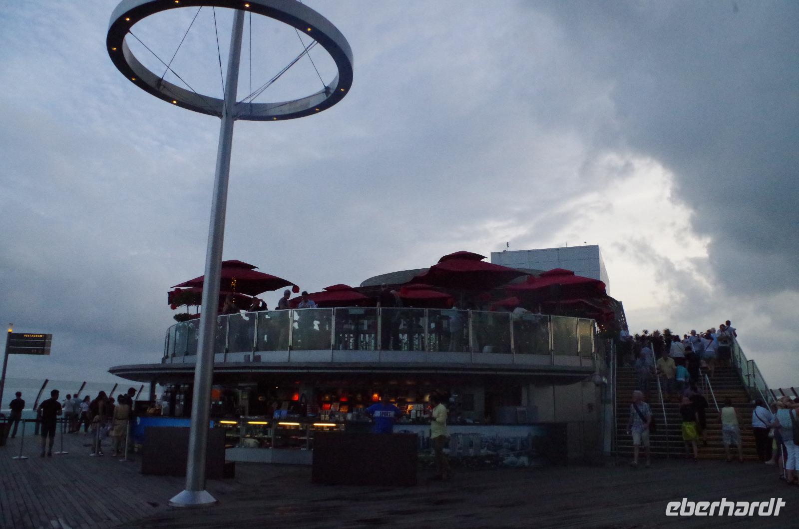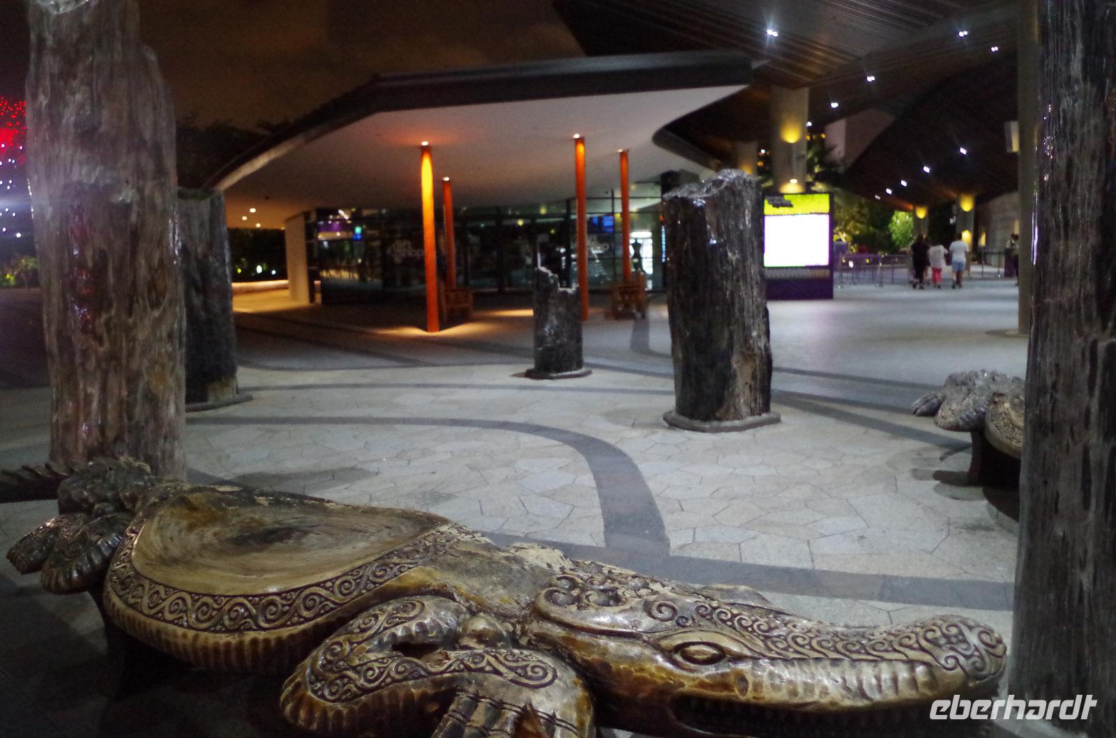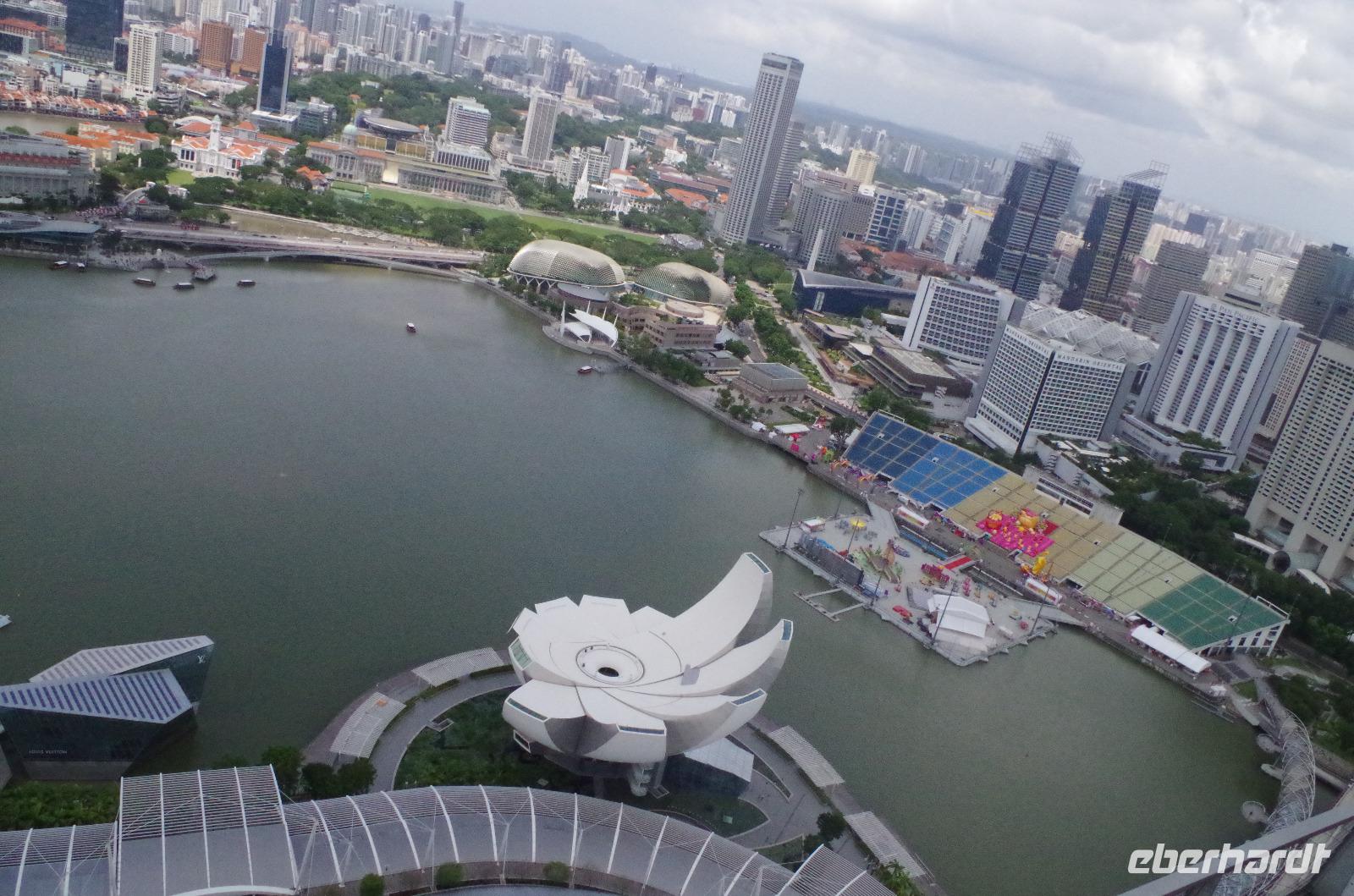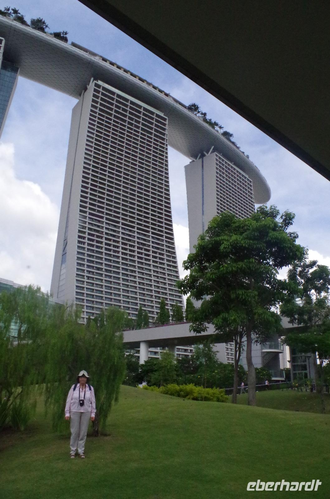 Während wir uns gestern gut erholt haben, wartet heute wieder ein spannender Tag auf uns. Es ist leicht bewölkt bei rund 30 Grad. Für den Landgang benötigen wir unseren Reisepass und die Ausreiskarte. Wer noch Geld wechseln möchte, kann dies gern an der Rezeption an Bord der AIDAbella vornehmen. Der Wechselkurs liegt ungefähr bei 1 Euro zu 1,5 Singapur Dollar SGD. Es wird überall darauf hingewiesen, dass Singapur eine besonders saubere Metropole ist und es sind strenge Vorschriften einzuhalten. Beispielsweise ist Kaugummi kauen nur auf Rezept erlaubt, das Wegwerfen von Zigaretten oder Getränkedosen wird mit einer Strafe von über 1.000 SGD geahndet. Um 08.30 Uhr findet die Passausgabe für Singapur im Theatrium Deck 9 statt. Pünktlich um 10.00 Uhr erreichen wir das Cruise Center Sentosa Island. Der Großteil der Gäste unternimmt am Vormittag einen von AIDA durchgeführten Ausflug, sogar mit deutschsprachigen Reiseleitern :-) Zu empfehlen sind SIN02 "Singapurs Vielfalt", SIN03 "Stilvolles Singapur", SIN06 "Singapur: Die Lichter der Großstadt" und SIN09 "Entspannte Panoramafahrt durch Singapur". Die Reisebegleitung bietet an, gemeinsam mit der Metro ins Zentrum zu fahren, um das Marina Bay Sands Hotel zu besuchen und einen Spaziergang im Merlion Park zu unternehmen. Singapur ist ein Inselstaat, welcher von Nord nach Süd 25 Kilometer lang und von Ost nach West 45 Kilometer breit ist. Im Jahre 1965 wurde Singapur für unabhängig erklärt. Singapur hat eine Fläche von rund 700 Quadratkilometern und es leben circa 5,4 Millionen Einwohner in diesem Stadtstaat. Nach einem Besuch von Angela Merkel 2011 wurde ihr zu Ehren eine lilafarbene Orchidee gezüchtet und nach ihr benannt, die "Dendrobium Angela Merkel". Wir treffen uns um 11.00 Uhr und verlassen unser "schwimmendes Hotel". Allerdings dauert die Passkontrolle über 30 Minuten lang, ein wenig Zeit sollte hier eingeplant werden. Im Hafen-Terminal folgen wir einfach der Ausschilderung "MRT" die Shopping Mall hindurch. Wir kaufen ein Metroticket am Automaten und fahren zwei Haltestellen mit der violetten Linie NE "North East Line" von der Station "Harbour Front" zur Station "Chinatown" in Richtung "Punggol". Hier steigen wir in die blaue Linie DT "Downtown Line" um und fahren drei Haltestellen bis zur Station "Bayfront" in Richtung "Bukit Panjang". Wir spazieren ganz entspannt zum berühmten Marina Bay Sands Resort. Das rund 20 Hektar umfassende Resort an der Marina Bay des Flusses "Singapore River" wurde von Moshe Safdie Architects entworfen und von Las Vegas Sands errichtet. Das Hotel besteht aus drei 55-stöckigen Hoteltürmen. Das Besondere ist wohl der in einer Höhe von 191 Metern gebaute 340 Meter lange Dachgarten "Sands SkyPark" mit einem 146 Meter langen Infinity Pool. Der Fahrstuhl im Tower 1 führt in der 57. Etage zur Bar "Sky on 57 - Flight Bar & Lounge". Hier könnten wir gemütlich zusammensitzen und die Aussicht genießen. Der Mindestumsatz liegt bei einem Getränk pro Person mit einem Preis ab 20 US-Dollar aufwärts. Vielleicht gönnt sich der ein oder andere Reisegast einen leckeren Cocktail ;-) Wir versuchen aber stattdessen, im Tower 3 des Marina Bay Sands Hotels mit dem Fahrstuhl in die 57. Etage zu fahren. Der Fahrstuhl im 3. Tower ist nur für Gäste bestimmt, welche in dem Hotel auch übernachten. Wir fahren gemeinsam mit Hotelgästen in die 57. Etage. Hier befinden sich zwei Clubs, bei denen bis 22.00 Uhr freier Eintritt ist. Wir können eine spektakuläre Aussicht genießen. Nachdem wir diese atemberaubende Metropole von oben fotografiert haben, fahren wir wieder runter und spazieren über die Doppelhelix-Brücke in Richtung Merlion Park. Dies ist eine Fußgängerbrücke, welche innerhalb der Marina Bay das Marina Centre mit Marina South verbindet. Dabei kommen wir am zweithöchsten Riesenrad der Welt, dem "Singapore Flyer", mit einer Höhe von 165 Metern vorbei. Nach seiner Eröffnung im März 2008 bis zur Einweihung des "The High Roller" in Las Vegas im April 2014 galt es noch als höchstes Riesenrad der Welt. Die Rundfahrt dauert circa 30 Minuten und bietet ebenso einen supertollen Blick über die Stadt. Gegenüber vom Marina Bay Sands Hotel sehen wir die Esplanade-Konzerthalle und im rund 2.500 Quadratmeter großen "Merlion Park" befindet sich ein weiteres Wahrzeichen von Singapur: Die Merlion Statue. Der Kopf hat die Form eines Löwen mit einem echten Wasserstrahl aus dem Löwenmund kommend, der Körper des einen Fisches. Der Name setzt sich unter anderem aus den englischen Wörtern für Meerjungfrau "mermaid" und Löwe "lion" zusammen. Die 1972 von Kwan Sai Kheong und Lim Nah Seng erbaute Statue ist rund 8,6 Meter hoch und hat ein Gewicht von circa 70 Tonnen. Zur gewählten Darstellungsform sind mehrere Legenden vorhanden, wobei besonders der Fischkörper sowohl die Vergangenheit der Stadt als Fischerdorf als auch die Verbundenheit zum Meer symbolisieren soll. Der Löwe steht einerseits für Stärke und Furchtlosigkeit, auf der anderen Seite kann er zudem vom ursprünglichen Stadtnamen "Singapura" abgeleitet werden, was aus dem Malaiischen stammt und mit "Löwenstadt" übersetzt wird. Da die Statue rund 25 Jahre nach der Fertigstellung der Esplanade Bridge vom Ufer aus weniger deutlich zu erkennen war, erfolgte rund fünf Jahre später ihre Versetzung circa 120 Meter entfernt an ihre heutige Position vor dem berühmten Fullerton Hotel gegenüber des Marina Bay Sands Hotels. Wir kommen auch an der Kathedrale St. Andrews vorbei sowie am legendären "Raffles Landing Site" mit einer weißen Marmorstatue des Gründungsvaters von Singapur, Sir Stamford Raffles, welcher 1819 in Singapur eingetroffen war und einen wichtigen Handelsposten errichtete. Die bronzefarbige Originalskulptur kann sich vorm "Victoria Concert Hall und Theatre" angeschaut werden. Einige Gäste genießen bei ihrem Besuch im Raffles Hotel den berühmten leckeren Cocktail "Singapur Sling". Dann laufen wir wieder zur Metrostation unter de