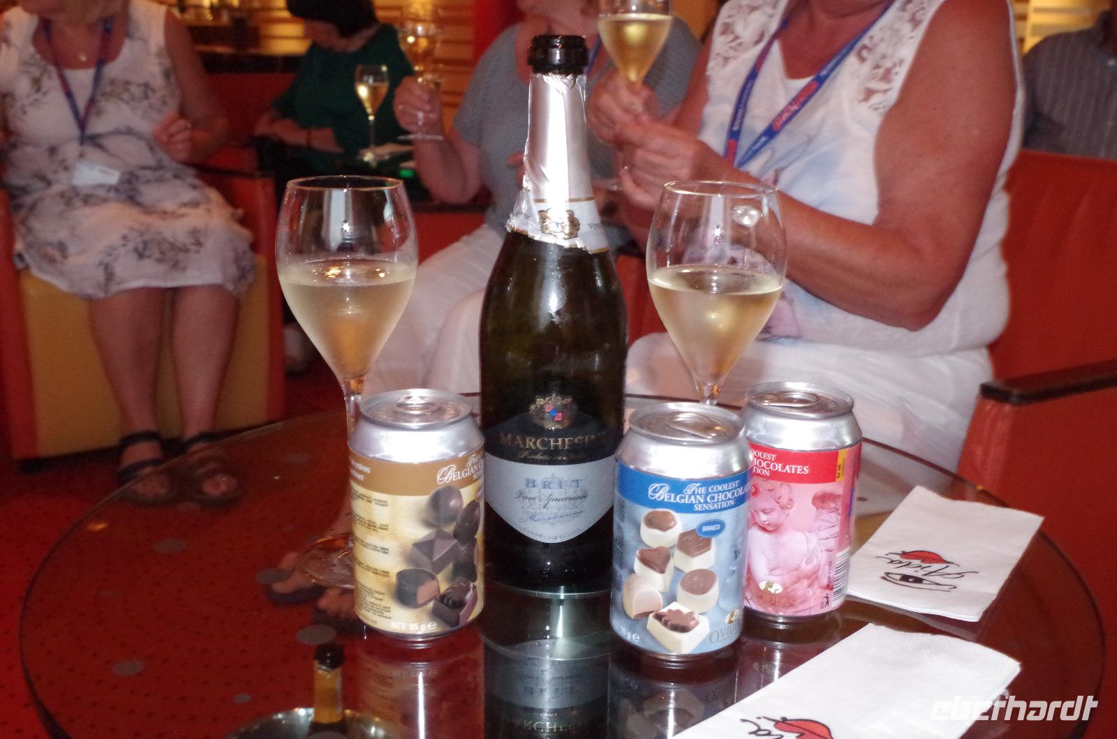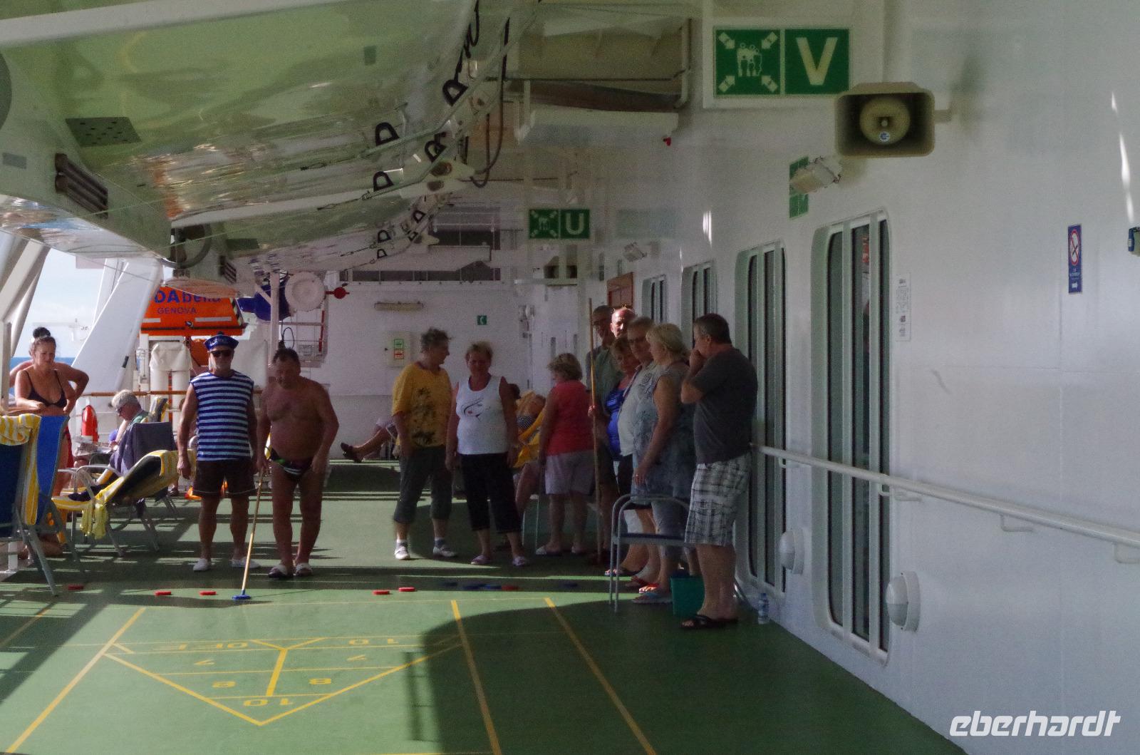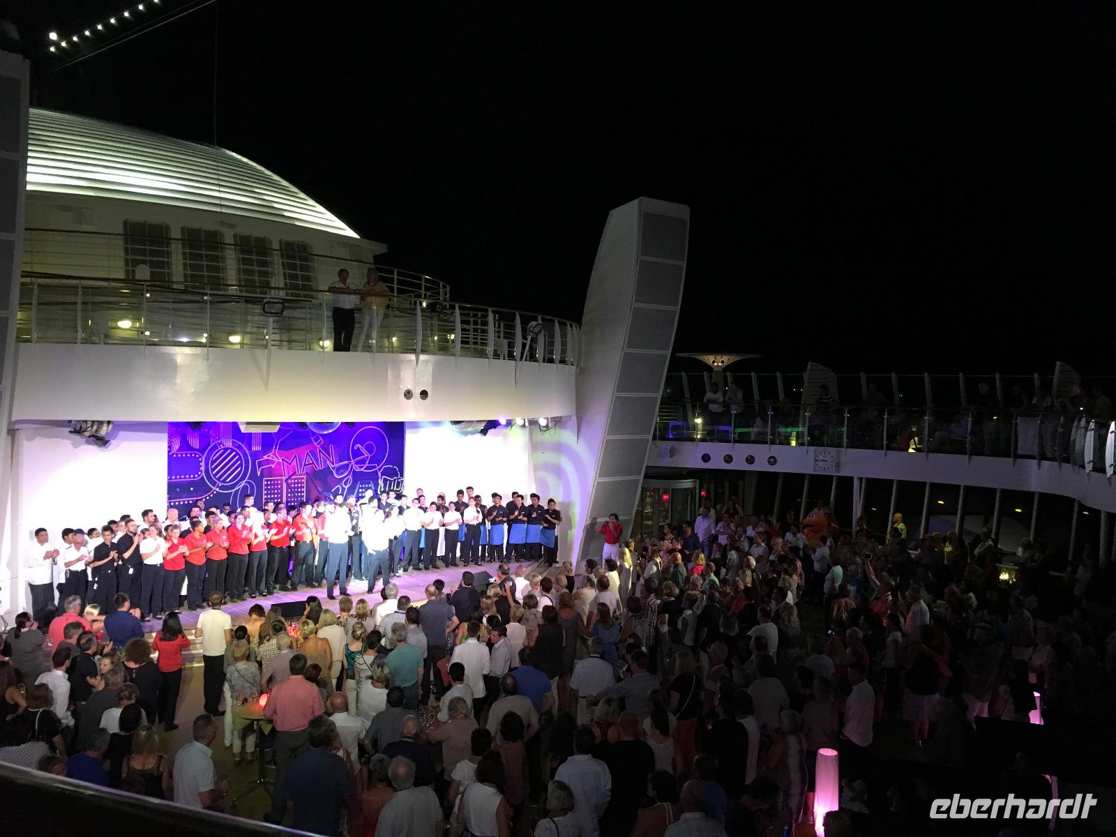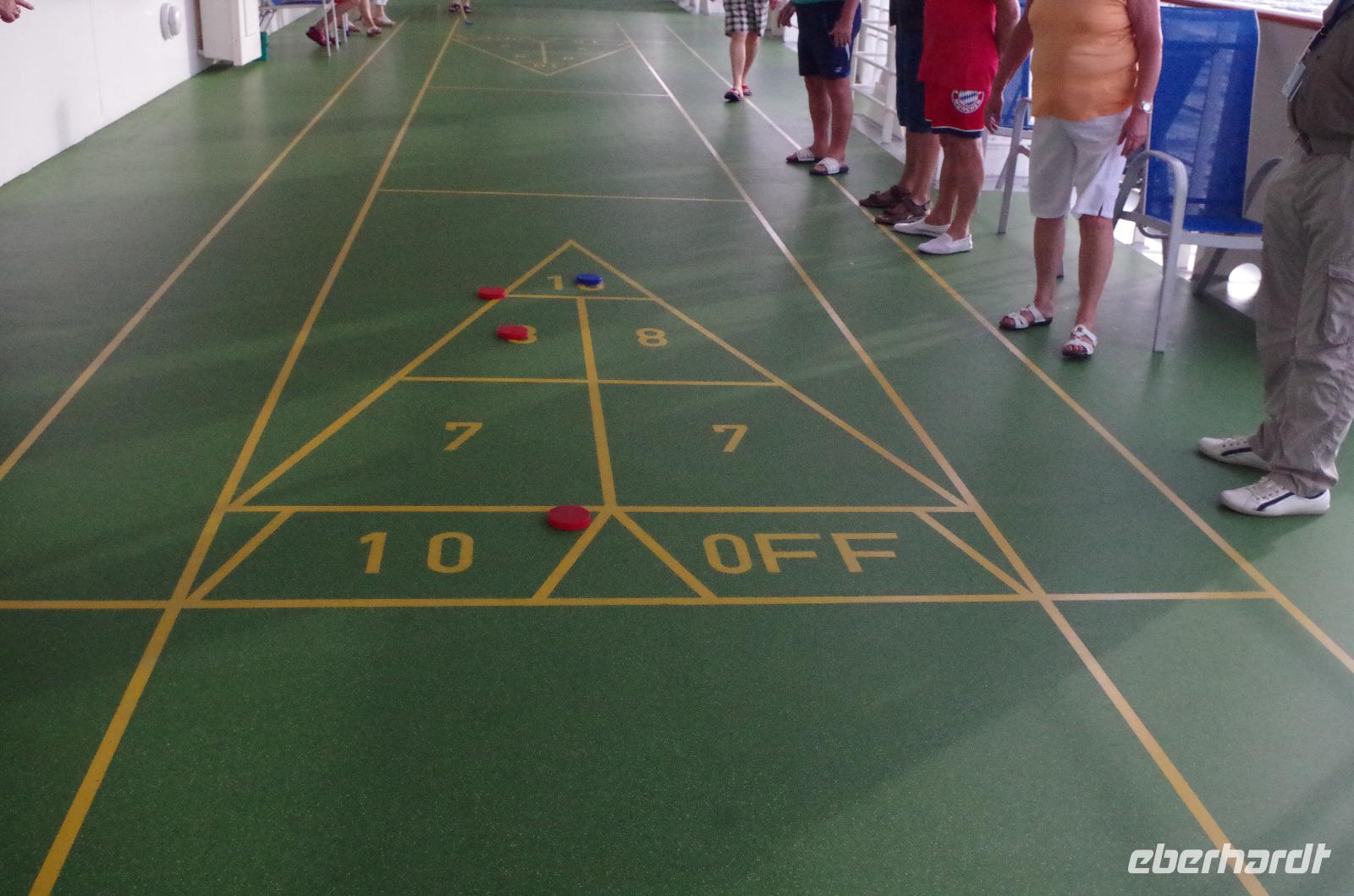 Ein weiterer Tag zur Erholung auf See erwartet uns. Frühstücken können wir heute wieder ab 07.30 Uhr im "Markt Restaurant". Es ist leicht bewölkt bei rund 26 Grad. Bis zur Ho-Chi-Minh-Stadt/Phu My liegen noch rund 279 Seemeilen bzw. 517 Kilometer vor uns. In der Nacht von Dienstag zu Mittwoch sind von 03.00 Uhr auf 02.00 Uhr die Uhren wieder umzustellen. Das Veranstaltungsprogramm besteht heute unter anderem um 10.00 Uhr aus der Ausflugspräsentation zu Sihanoukville im Theatrium auf Deck 9 bis 11. Zum Mittag und Nachmittagskaffee treffen sich einige Gäste wieder im "Weite Welt Restaurant". Für den Landgang der Ho-Chi-Minh-Stadt/Phu My wird eine Landgangskarte benötigt. Die Ausgabe dieser Karten erfolgt um 15.30 Uhr im Theatrium Deck 9. Für Unterhaltung und Spaß an diesem Tag sorgt sicher unsere gemeinsame Eberhardt TRAVEL Shuffleboard Runde um 15.45 Uhr. Es spielen sechs Frauen gegen sechs Männer. Während die erste Runde noch zum Einspielen dient, werden im zweiten Durchgang schon eine Vielzahl an Punkten erspielt. Um 17.30 Uhr findet ein wichtiges Gruppentreffen statt: Wir haben unser gemeinsames Fotoshooting an Bord, auch ohne den Kapitän entsteht ein wirklich schönes Gruppenfoto auf der Treppe im Theatrium :-) Zuvor gibt es noch ein kleines Geburtstagsständchen für einen Reisegast von der ganzen Gruppe. Das Abendessen findet wie gewohnt für die meisten Eberhardt-Reisegäste um 18.30 Uhr im "Weite Welt Restaurant" statt. Bei gutem Essen, leckerem Wein und tollen Gesprächen lassen wir einen schönen erholsamen Tag gemeinsam ausklingen.