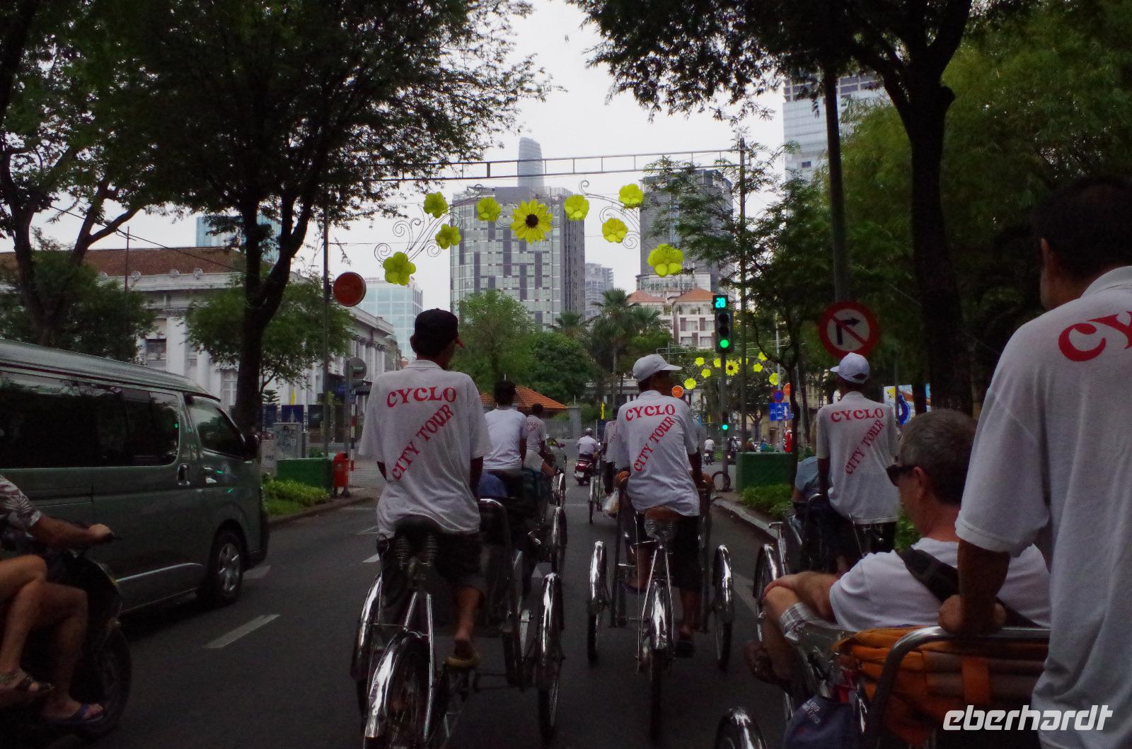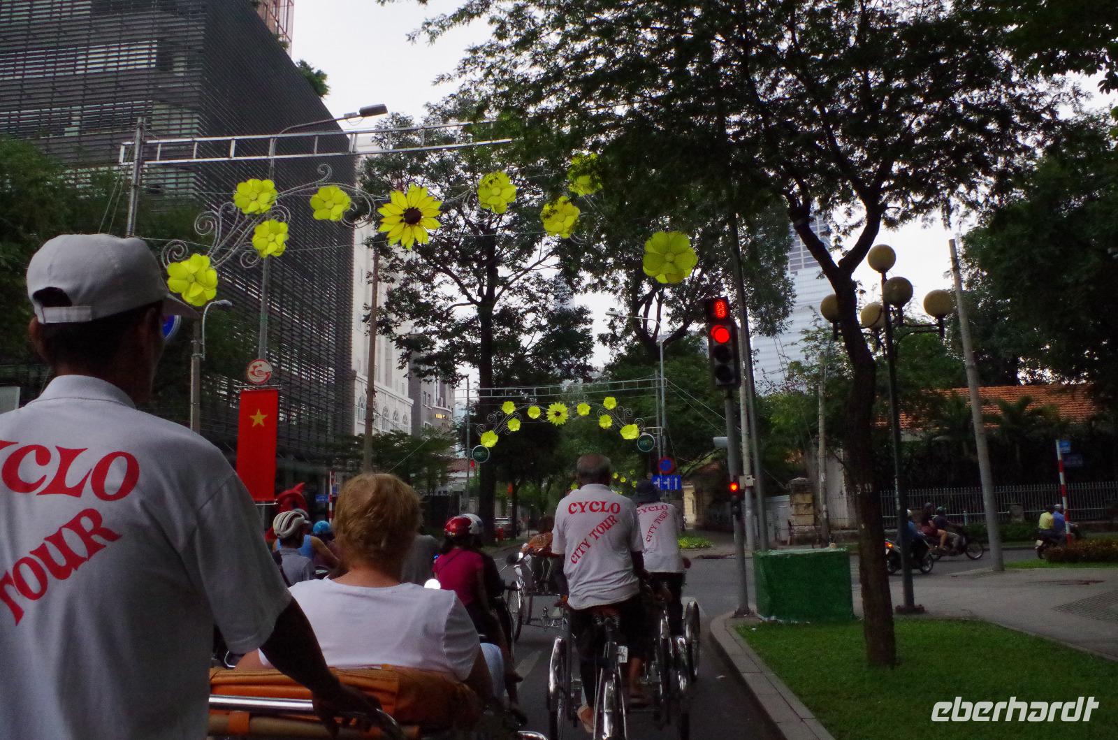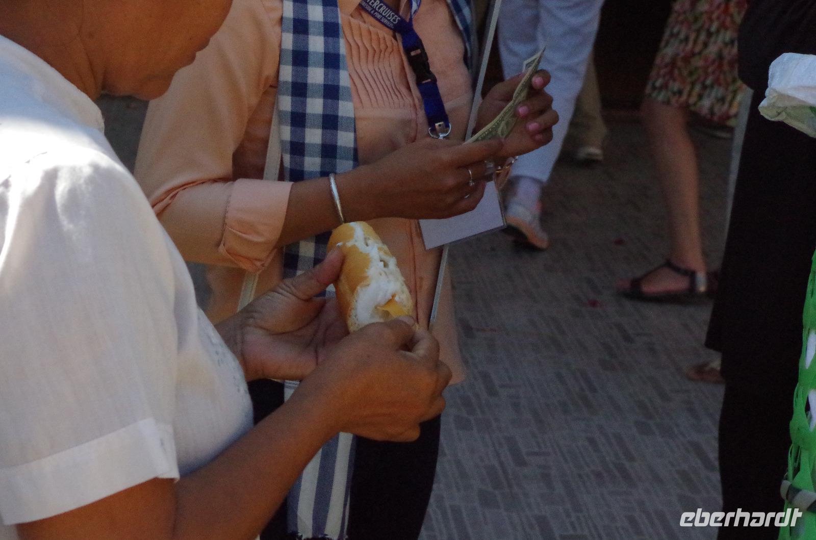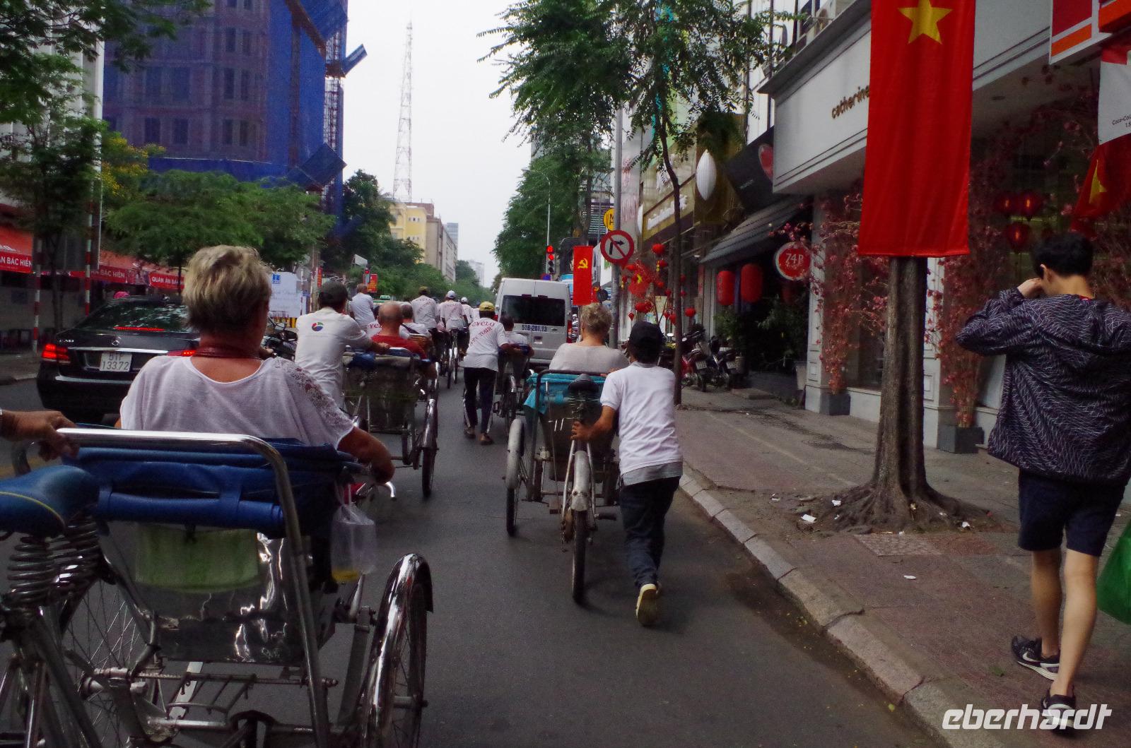 Während wir uns die vergangenen zwei Tage super erholt haben, freuen wir uns auf einen weiteren Tag voller kultureller und abenteuerlicher Highlights. Heute ist es wechselhaft bei rund 31 Grad Celsius. Wir werden mit einem vietnamesischen Hallo "Xin Chao!" begrüßt. Mit einer Ausdehnung von 1.650 Kilometern von Nord nach Süd ist Vietnam über 330.000 Quadratkilometer groß. Die breiteste Stelle mit circa 600 Kilometern befindet sich im Norden, die engste Ausdehnung mit 50 Kilometern an der Zentralküste in der Provinz Quang Binh. Die am Fluss Saigon gelegene Ho-Chi-Minh-Stadt hatte bis 1976 den gleichnamigen Namen wie der Fluss getragen. Heute heißt diese 6,8-Millionen-Metropole wie der vietnamesische Revolutionär Ho Chi Minh. Für den Landgang werden Bordkarte und eine lokale Landgangskarte benötigt, welche wir vor zwei Tagen abgeholt haben. Wer noch Geld tauschen möchte, kann dies gern an der Rezeption an Bord der AIDAbella vornehmen. Der Wechselkurs liegt ungefähr bei 1 Euro zu 25.000 Vietnamesischen Dong. Viele Gäste treffen sich ab 06.00 Uhr im "Weite Welt Restaurant" beim Frühstück. Pünktlich um 07.00 Uhr erreicht die AIDAbella den Hafen ODA Thi Vai Port der Ho-Chi-Minh-Stadt/Phu My in Vietnam. Die komplette Reisegruppe geht gemeinsam um 07.15 Uhr von Bord, ein weiterer großartiger Eberhardt-Exklusiv-Ausflug steht uns unmittelbar bevor :-) Bekannte Sehenswürdigkeiten der Ho-Chi-Minh-Stadt sind die Kathedrale Notre Dame, das Alte Hauptpostamt, die Wiedervereinigungshalle, auch Palast der Einheit genannt, die Xa Loi-Pagode oder der Ben-Thanh-Markt. Um 07.30 Uhr treffen wir auf unseren jungen Reiseleiter Luan, welcher uns mit seiner lustigen und jugendlichen Art noch zum Lächeln bringen wird. Ähnlich wie in Bangkok und Kuala Lumpur dauert die Fahrt vom Hafenterminal ins Stadtzentrum längere als eine Stunde. Gegen 09.00 Uhr erreichen wir das Chinatown von Saigon, unternehmen eine Bio-Pause und besuchen anschließend eine Tempelanlage. Nächster Programmpunkt ist der Besuch eines typischen Marktes, wobei neben dem Verkauf von jeder Menge verschiedener Arten an Obst und Gemüse auch "frisches" Fleisch angeboten wird. Besonders auffallend und für uns eher unnatürlich ist die Tatsache, dass "frisches" Fleisch oder auch Eier mitten auf den Tisch liegen, obwohl eine Hitze von über 30 Grad herrscht. Wir würden dieses Essen im Kühlschrank aufbewahren, hier ist es aber scheinbar vollkommen normal, die Sachen einfach anzubieten ohne sie in einer Kühlvorrichtung zu kühlen. Dies ist schon eher ungewohnt für uns! Dann besuchen wir eine typische Markthalle, wo uns ein ähnliches Schauspiel geboten wird. Der Unterschied besteht allerdings darin, dass wir uns dieses Mal in einer riesigen Halle befinden, die Stände dicht beieinander stehen und aufgrund der vielen Menschen das Durchlaufen manchmal sehr langsam erfolgt. Wir besuchen individuell diese große Einkaufshalle und passieren unter anderem Stände mit Schmuck, Kleidung, Obst, Gemüse und Souvenirs. Der ein oder andere Reisegast kauft sich auch ein Andenken für zuhause wie beispielsweise den sogenannten landestypischen Reishut. Wir laufen danach durch die bekannte Einkaufsstraße "Dong Khoi Street" zum Mittagessen um 11.30 Uhr im Restaurant "Pho 24". Der heutige Tag könnte auch die Überschrift "Ein Tag voller unbekannter ungewöhnlicher abenteuerlicher Erlebnisse!" tragen! Diese landestypische und bei Einheimischen sehr beliebte Restaurantkette zählt da sicher dazu ;-) Unser Essen besteht aus einer typische asiatischen Nudelsuppe mit Hühnchen, Rindfleisch oder ohne Fleisch. Wir versuchen uns im Essen mit Stäbchen, auch wenn uns der Löffel sicherlich lieber ist, aber ein Versuch ist es wert :-) Das wohl spannendste Ereignis am heutigen Tag findet gleich nach dem Essen statt. Wir werden eine einmalige aufregende Fahrt in der dreirädrigen Fahrradrikscha "Trishaw" durch Saigon erleben! Jeder Gast steigt in eine Rikscha und um 12.30 Uhr startet unser Tour in Chinatown mit einem Foto-Stopp am der Wiedervereinigungshalle. Der 1966 errichtete Präsidentenpalast "Presidential Palace" basiert auf einem Entwurf von Ngo Viet Thu, ein vietnamesischer Architekt, und wurde 1975 nach Beendigung des 30 Jahre andauernden Vietnamkriegs durch Nordvietnam in "Wiedervereinigungshalle" umbenannt. Wir fotografieren diese Sehenswürdigkeit von außen, lassen noch ein schönes Gruppenfoto von allen in der Rikscha machen und weiter geht es durch den verrückten vietnamesischen Verkehr zum Alten Postamt und zur Kathedrale Notre Dame am Platz Cong Xa Paris. Die Fahrt ist schon ein einmaliges Erlebnis, der Verkehr in Saigon einfach unglaublich, so viele Mopeds auf einmal, teilweise mit bis zu vier Menschen drauf, der absolute Wahnsinn! Es könnte wie folgt kurz zusammengefasst werden: Laut, bunt und ein klein wenig verrückt ;-) Jeder fährt wie er möchte, ein Moped neben dem anderem!!!! Es ist schon erstaunlich, wie viele Menschen oftmals auf einem Moped fahren. Beeindruckend ist sicher auch, was hier alles transportiert wird, von Lebensmitteln, Kleidung bis riesigen Kisten ist alles dabei. Auf so eine Idee würden wir in Deutschland wohl eher nicht kommen ;-) Eine Stunde später besichtigen wir die im Norden an der Flaniermeile Duong Dong Khoi gelegene, 1880 aus rotem Backstein errichtete neoromanische Kathedrale Notre Dame von außen und das Alte Postamt von innen. Hier besteht abermals die Möglichkeit, kleine Andenken zu kaufen. Danach fahren wir wieder zum Hafenterminal zurück. Unterwegs legen wir einen kurzen Stopp bei einem Reisefeld und Reisbauern ein, wo uns Luan typische Pflanzen und Gemüsesorten zeigt. Im Hafen verabschieden wir uns freundlich von Luan und wünschen ihm und seiner Familie alles Gute. Bei köstlichem Essen und leckeren Wein im "Weite Welt Restaurant" lassen wir die heutigen Erlebnisse Revue passieren. Wer möchte, schaut um 22.00 Uhr bei der Poolshow "Schlagersause" und der Poolparty mit DJ Maik auf dem Pooldeck